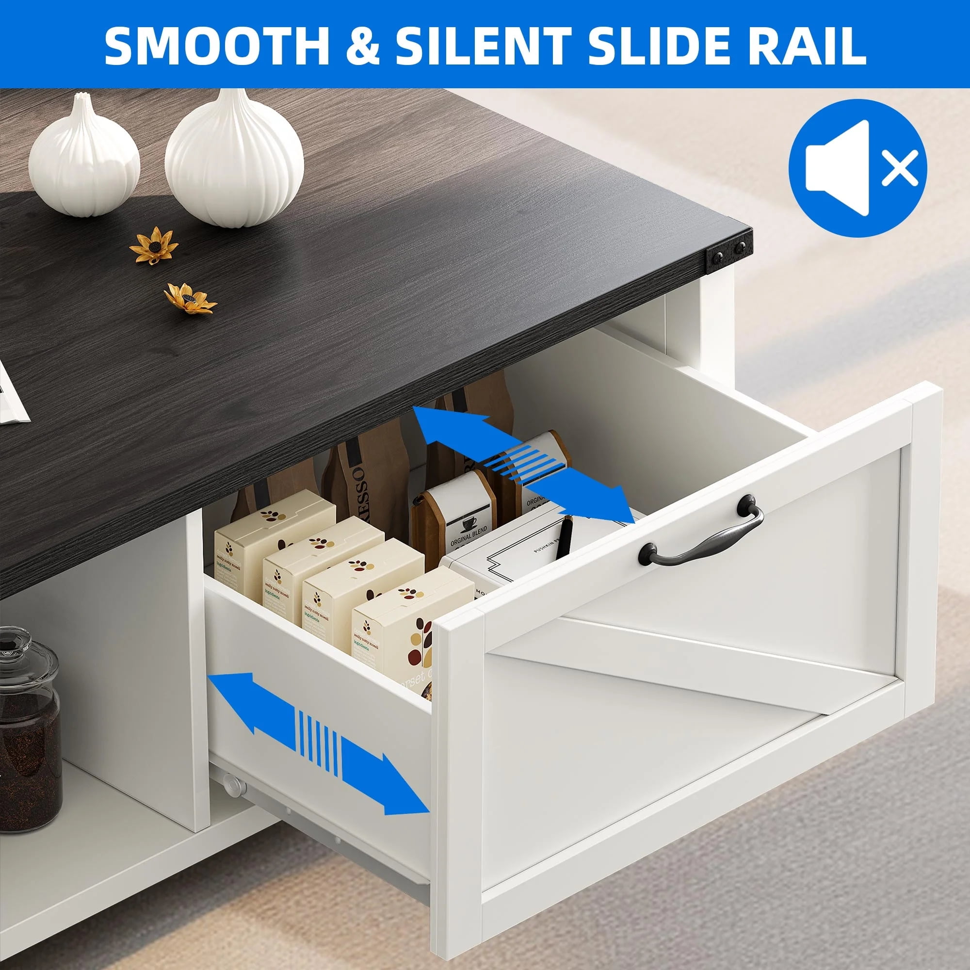 New Dextrus living room coffee table features a cabinet and open-storage shelf,not only that,the back open shelf can display your home decorations or frequently used items.Coffee Table combining modern and farmhouse styles,be the centerpiece of your living room decor.In addition, it is durable, scratch-resistant and waterproof, a good choice for home. The coffee table comes with an open storage space, a drawer and a back storage. Organize everyday items in an orderly manner to keep your rustic coffee table and living room looking neater and cleaner. The living room coffee table combines brown and white to create a modern farmhouse style that can be matched with the decor you want to make your living room more elegant and beautiful.The coffee table with storage material is scratch-resistant and waterproof, easy to install and easy to clean, making your life more convenient and comfortable.