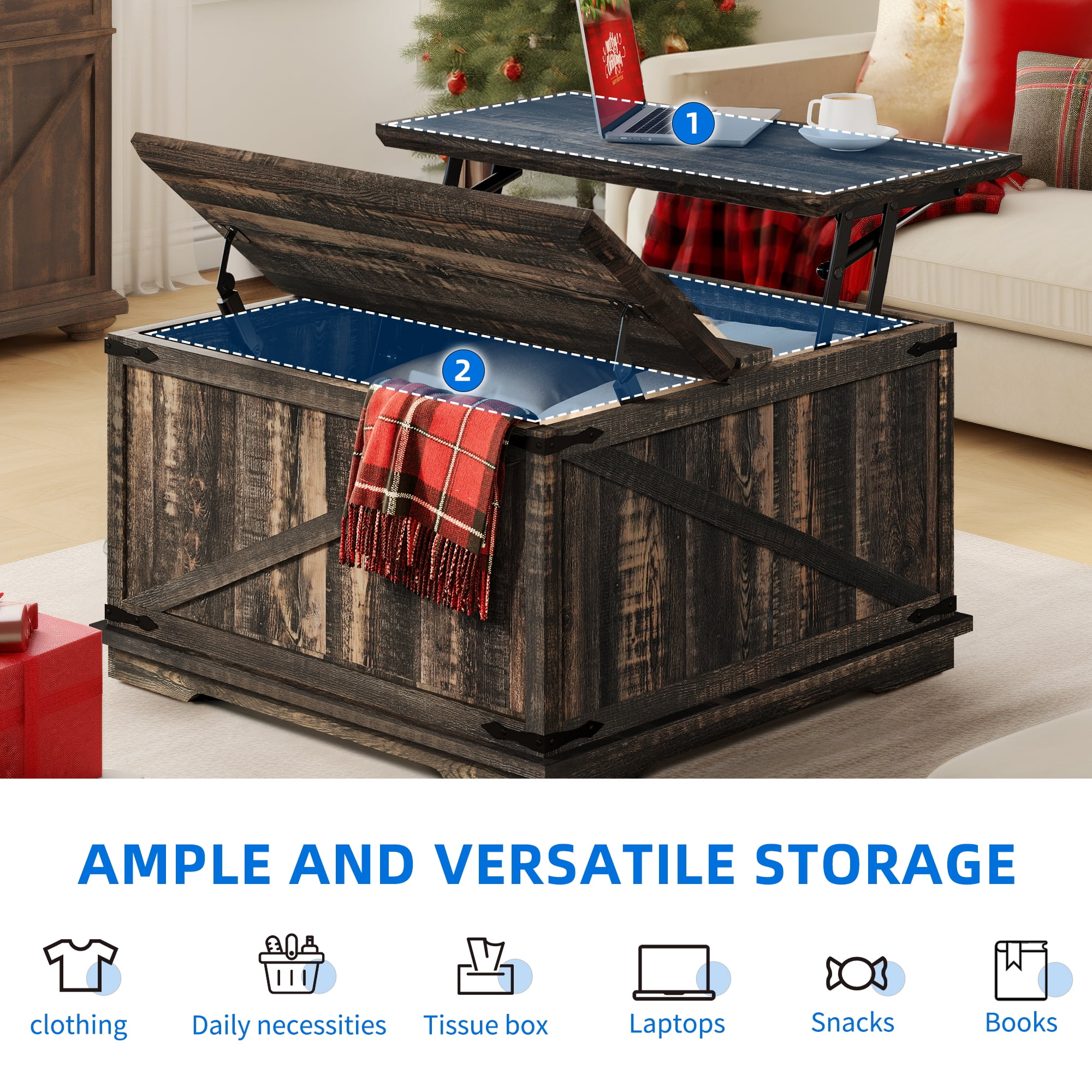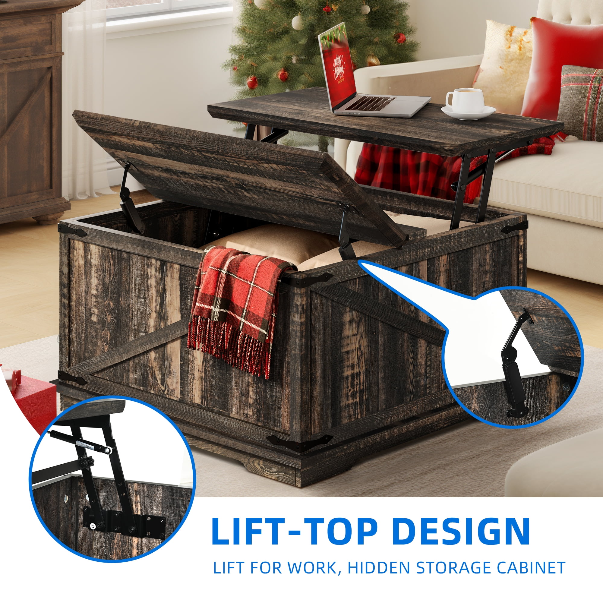 Dextrus Farmhouse Square Lift Top Coffee Table with Storage, Wood Center Table for Living Room, Rustic Oak
