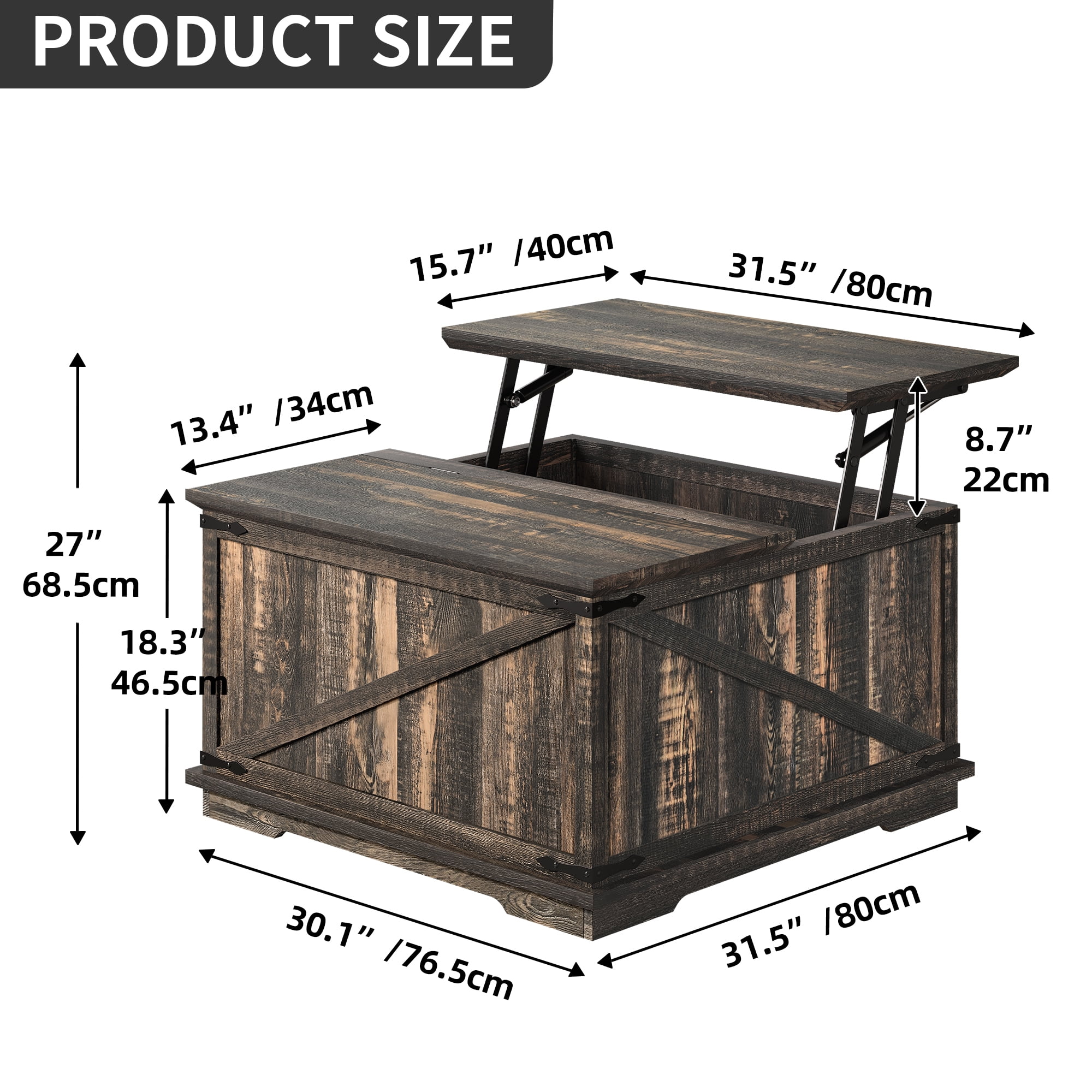 Versatile Design: Experience the convenience of our innovative design, featuring a height-adjustable tabletop. Easily transition from a coffee table to a functional work desk with a few simple adjustments. Organized and Clutter-Free: Stay organized with our coffee table’s dual-purpose design. The lift-open lid on one side reveals a spacious storage compartment, providing ample room to store belongings and keep your living space tidy. Enhanced Durability: Rest assured with the reinforced corners of our coffee table, offering extra stability and durability for years of reliable use. Stylish and Functional: Our coffee table combines sturdy construction with an easy-to-clean surface, offering both functionality and style. Its sleek and minimalist design seamlessly blends with any decorating style, making it a perfect addition to your home. Hassle-Free Installation: Enjoy a hassle-free installation process that gets you quickly set up and ready to enjoy the benefits of our versatile coffee table.