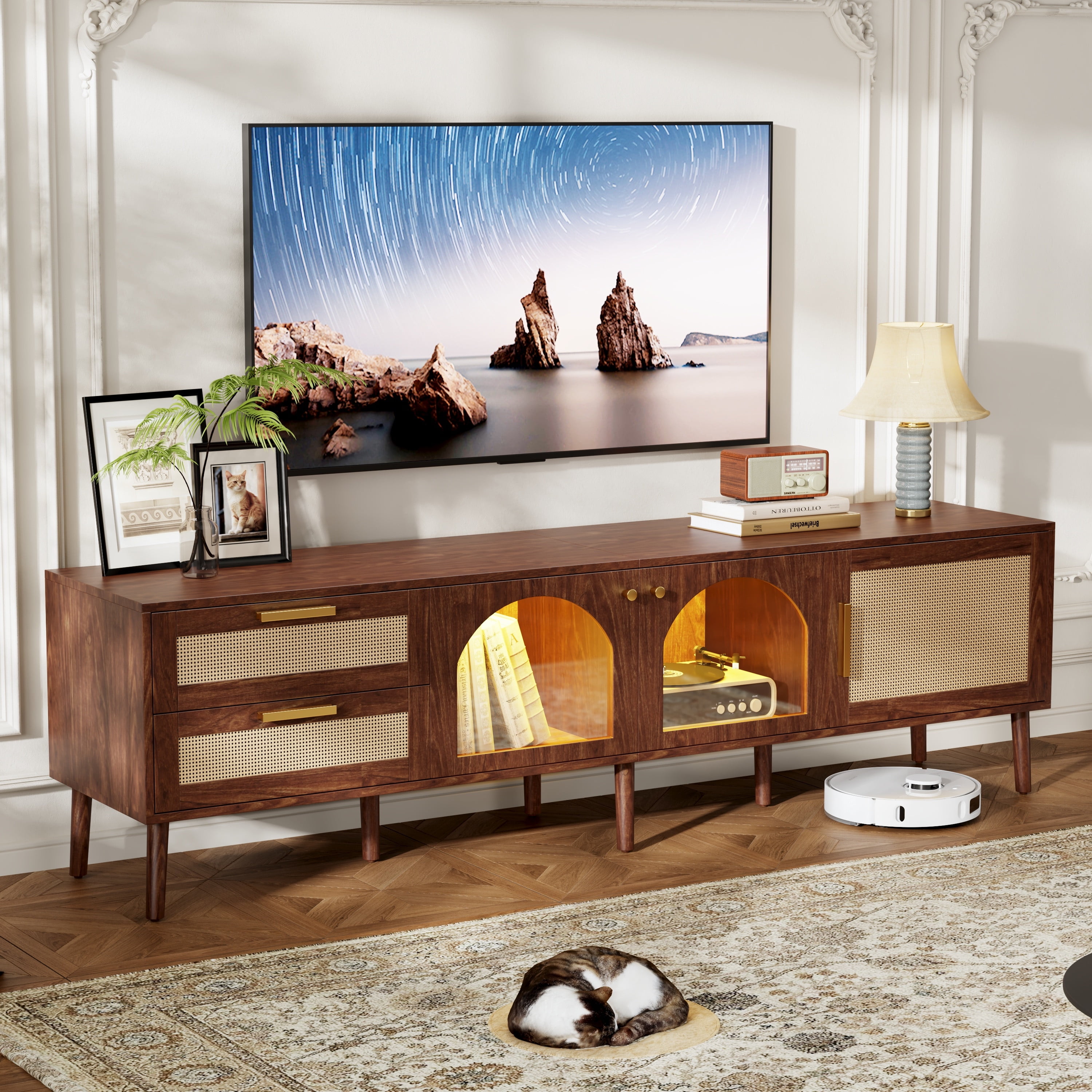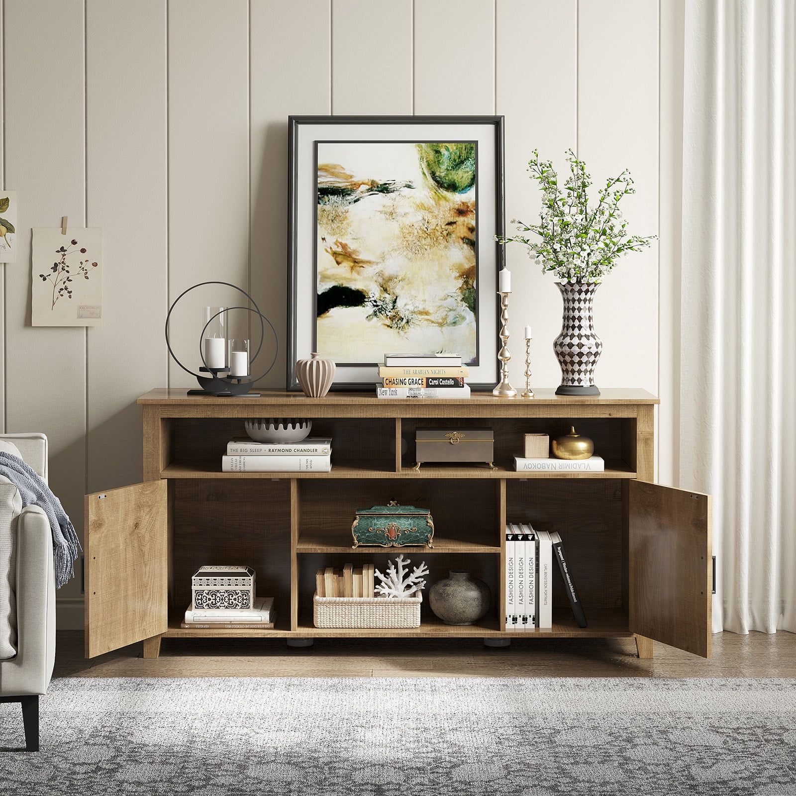 Dextrus Farmhouse TV Stand for 65-Inch TV, 4-Shelf Rustic Media Console, 2-Door Storage Cabinet, Brown