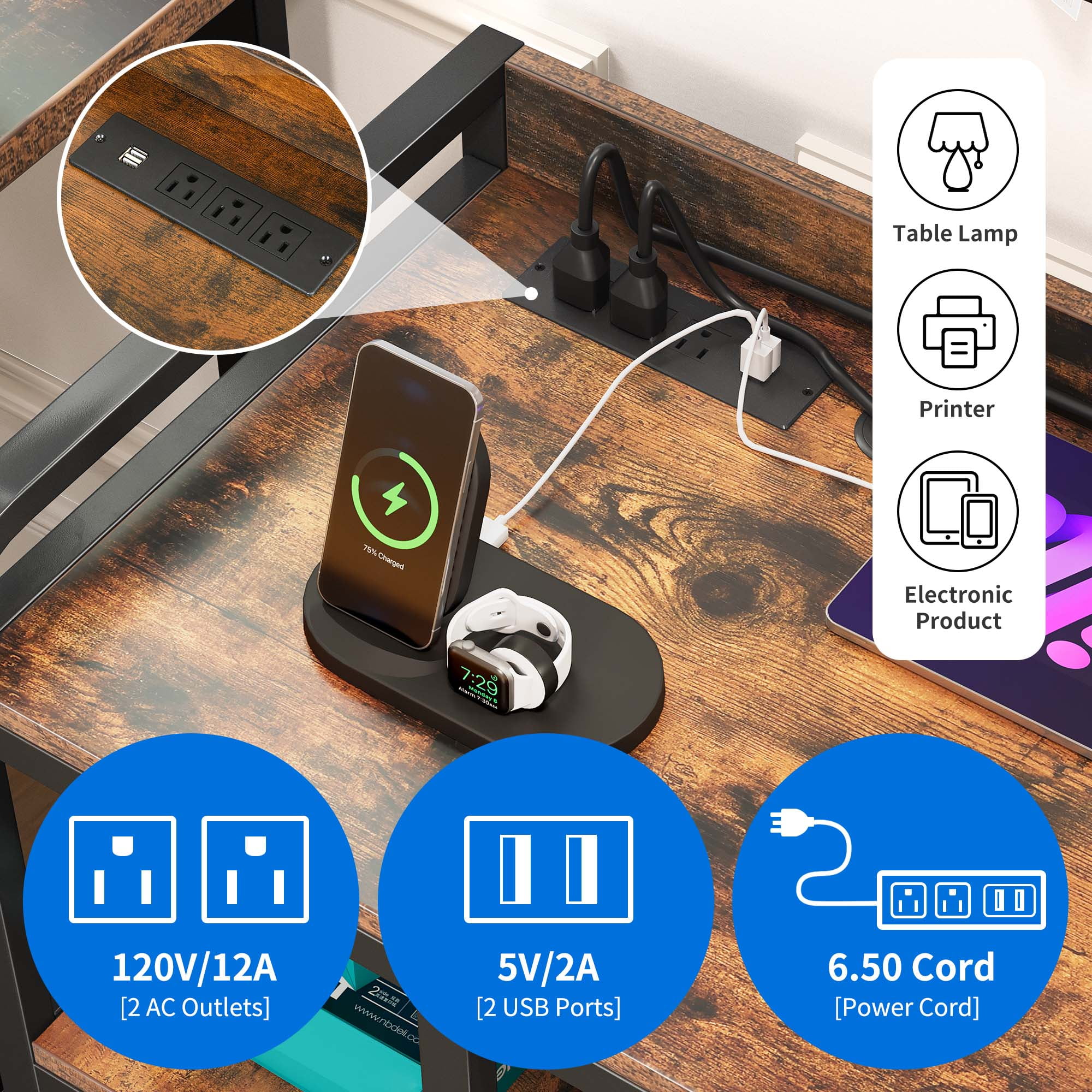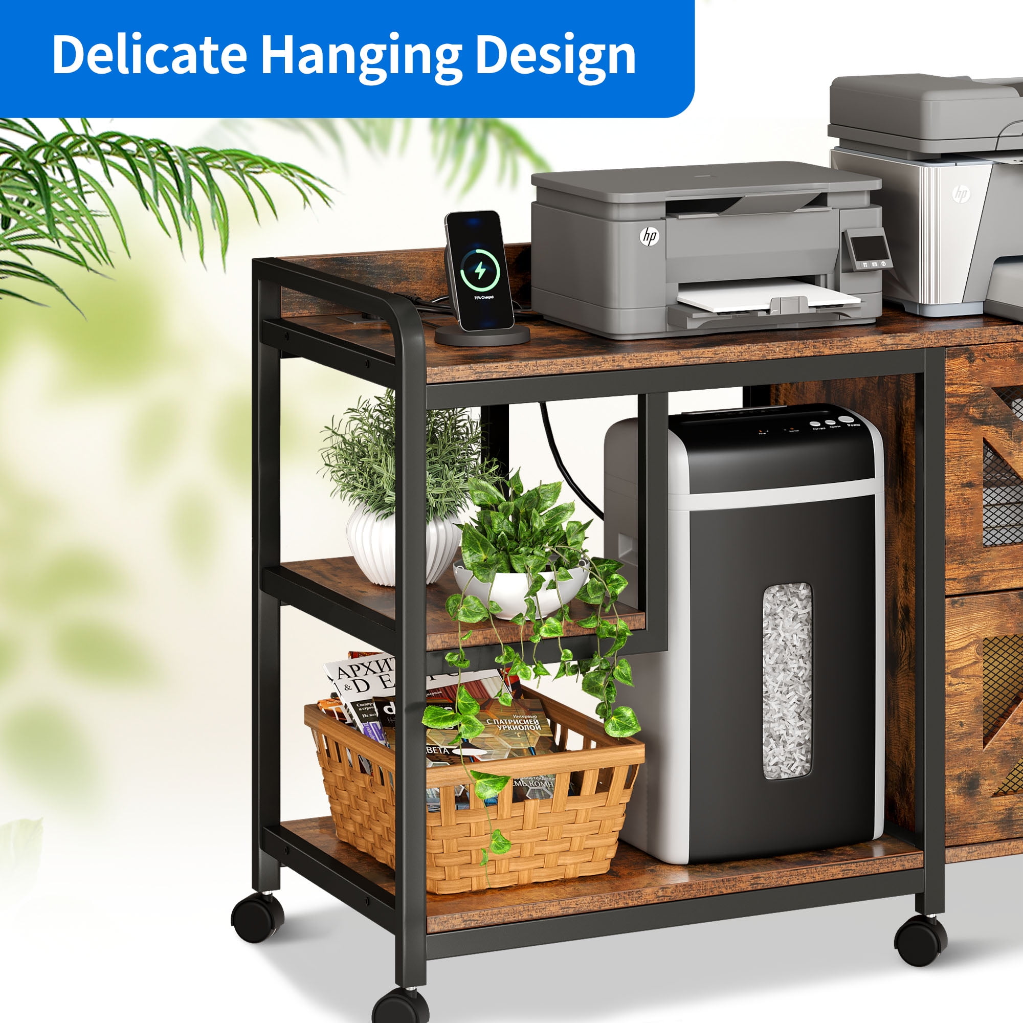 DEXTRUS File Cabinet with Charging Station , Printer Table Rolling File Cabinet , Black