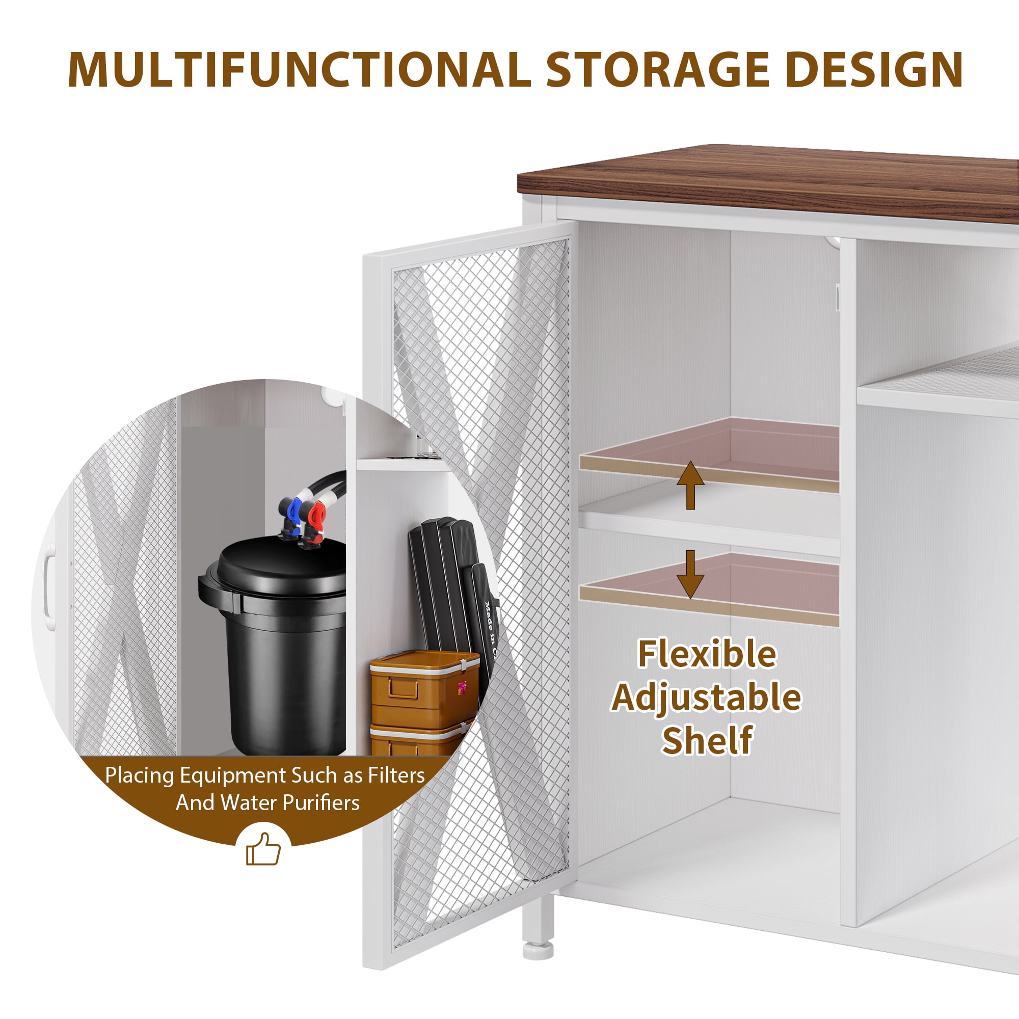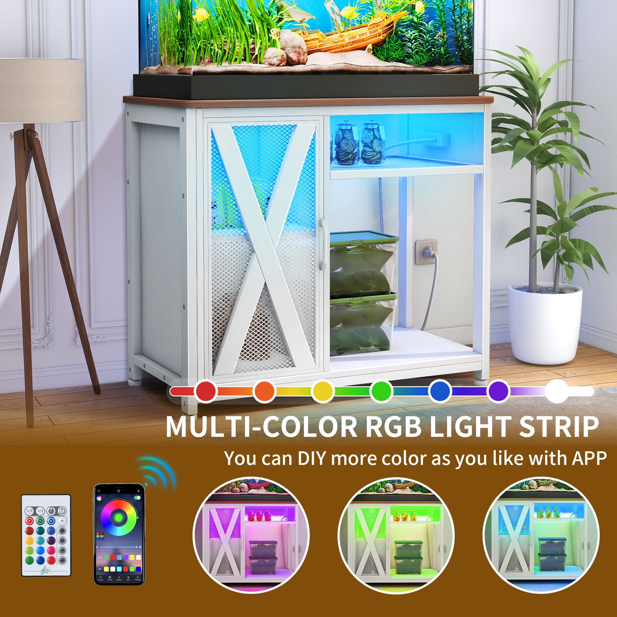 Dextrus Fish Tank Stand Metal Aquarium Stand with Power Outlets & LED Light and Cabinet, for 40-50 Gallon Aquarium Bearable 880LBS Capacity, White