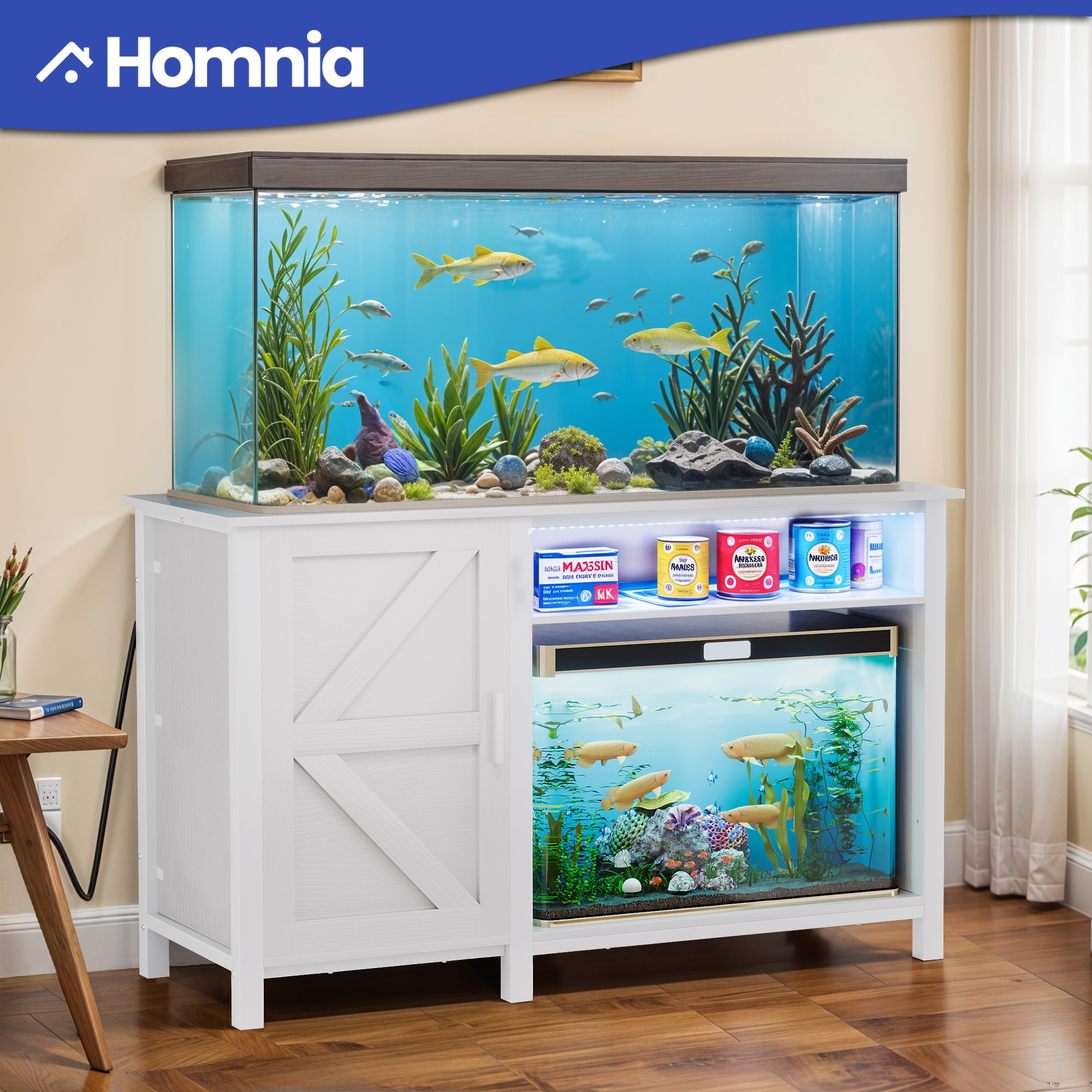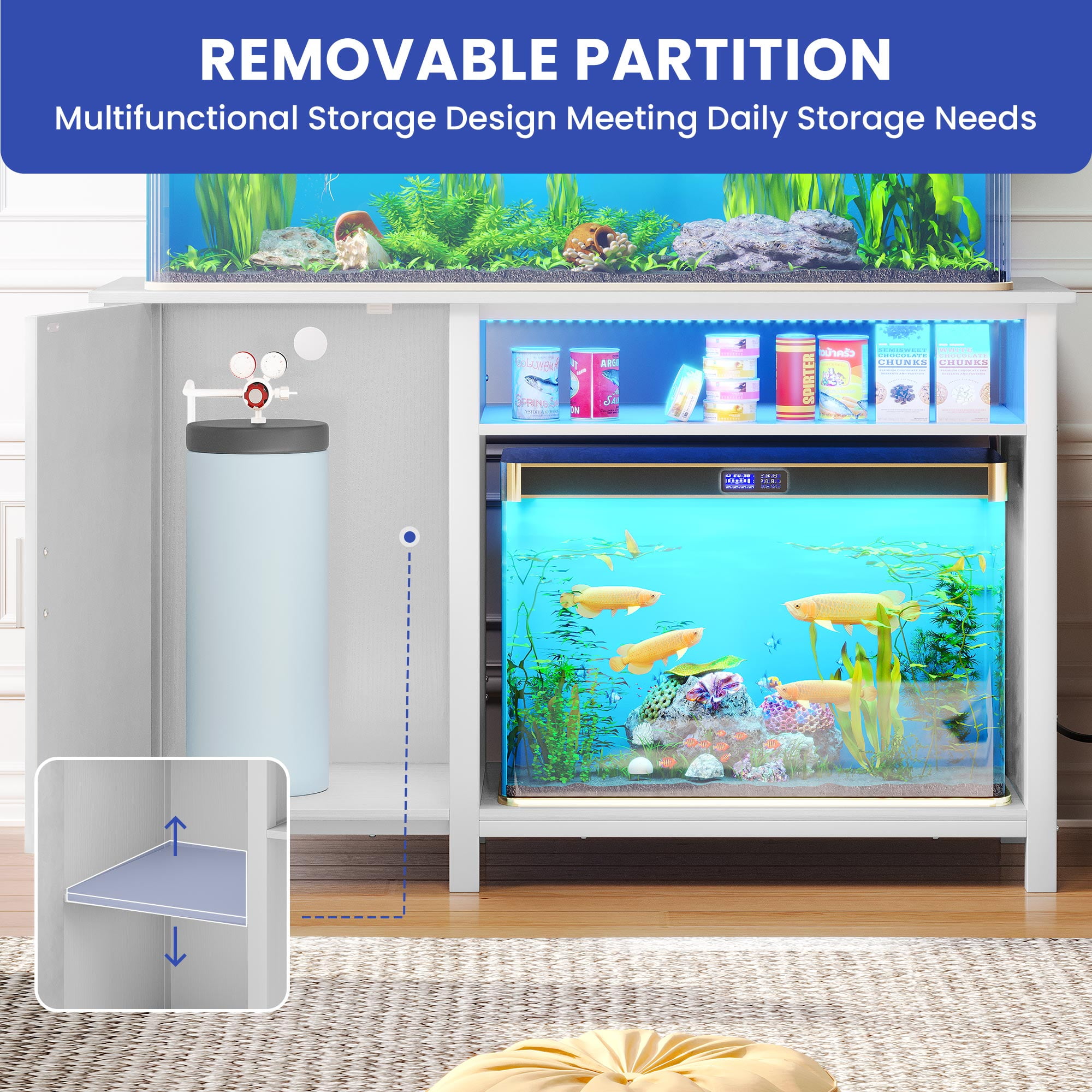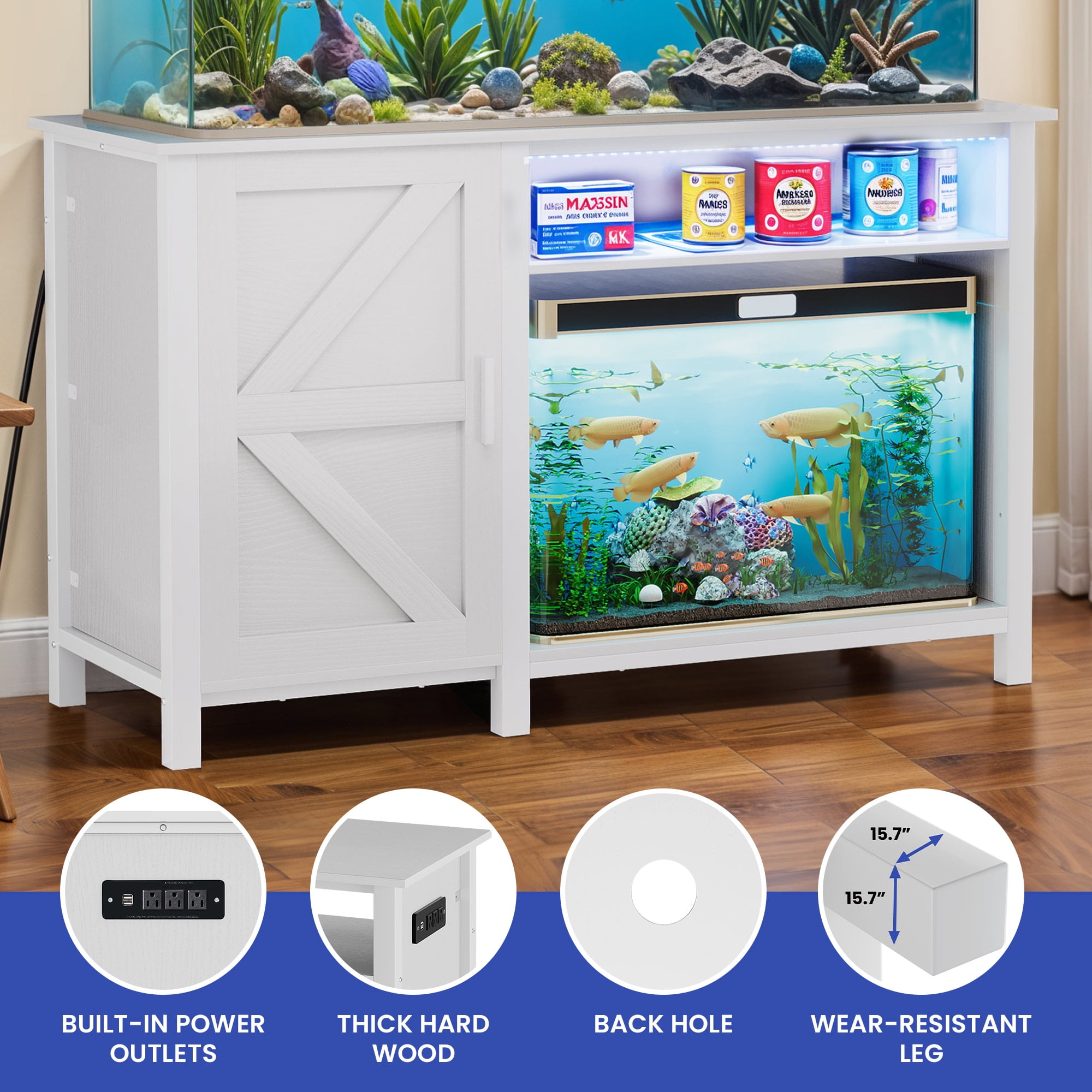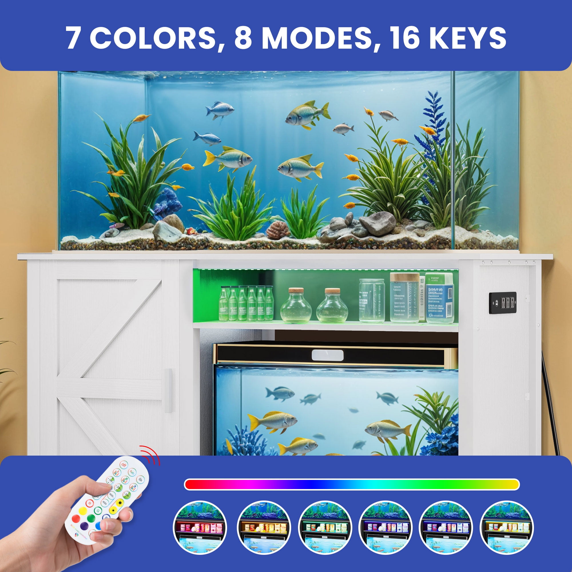 Dextrus Fish Tank Stand with Electrical Sockets, RGB Lighting, Cabinet for 55-75 Gallon Aquariums, Supports 900 lbs, White