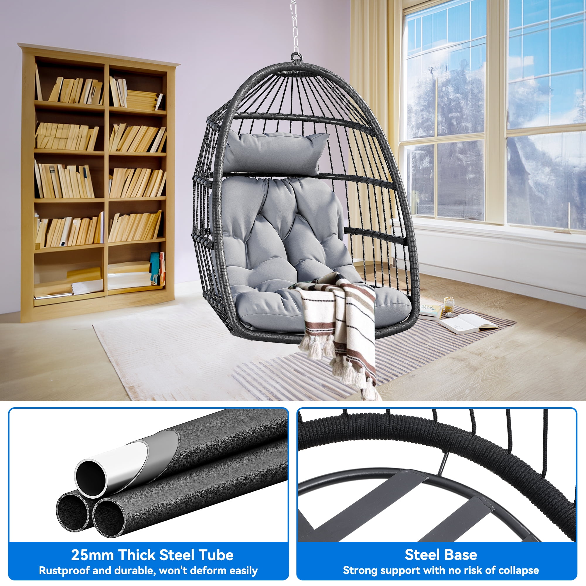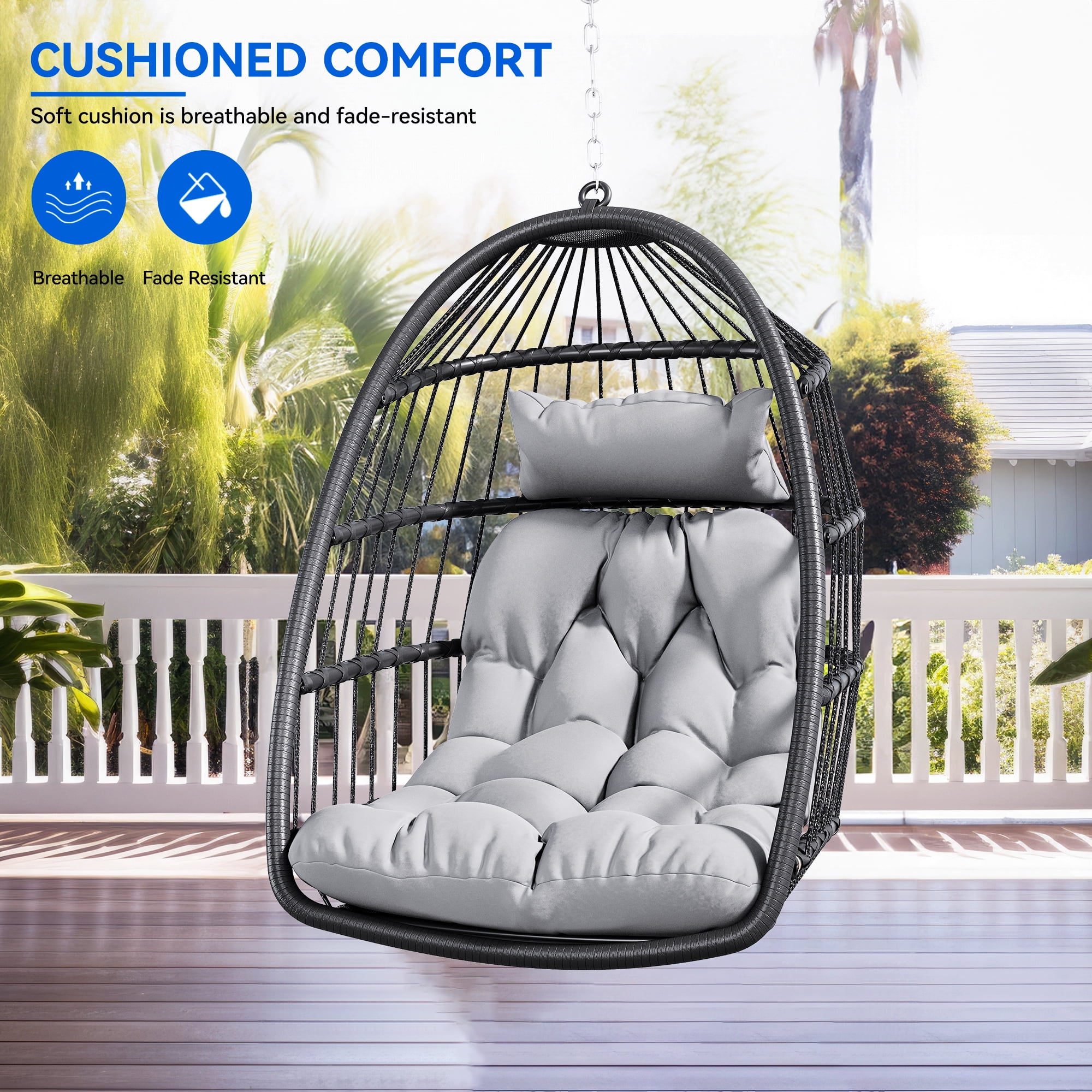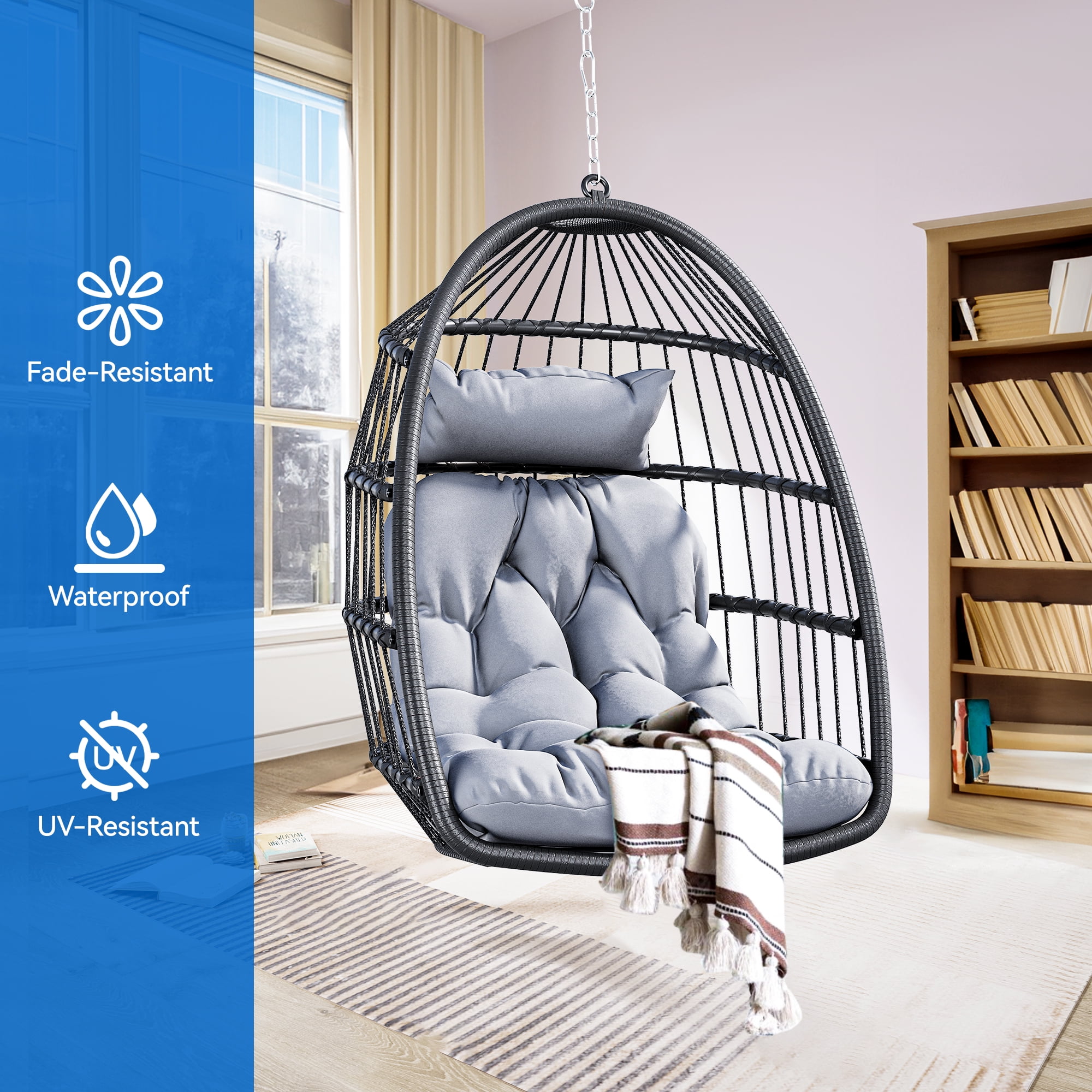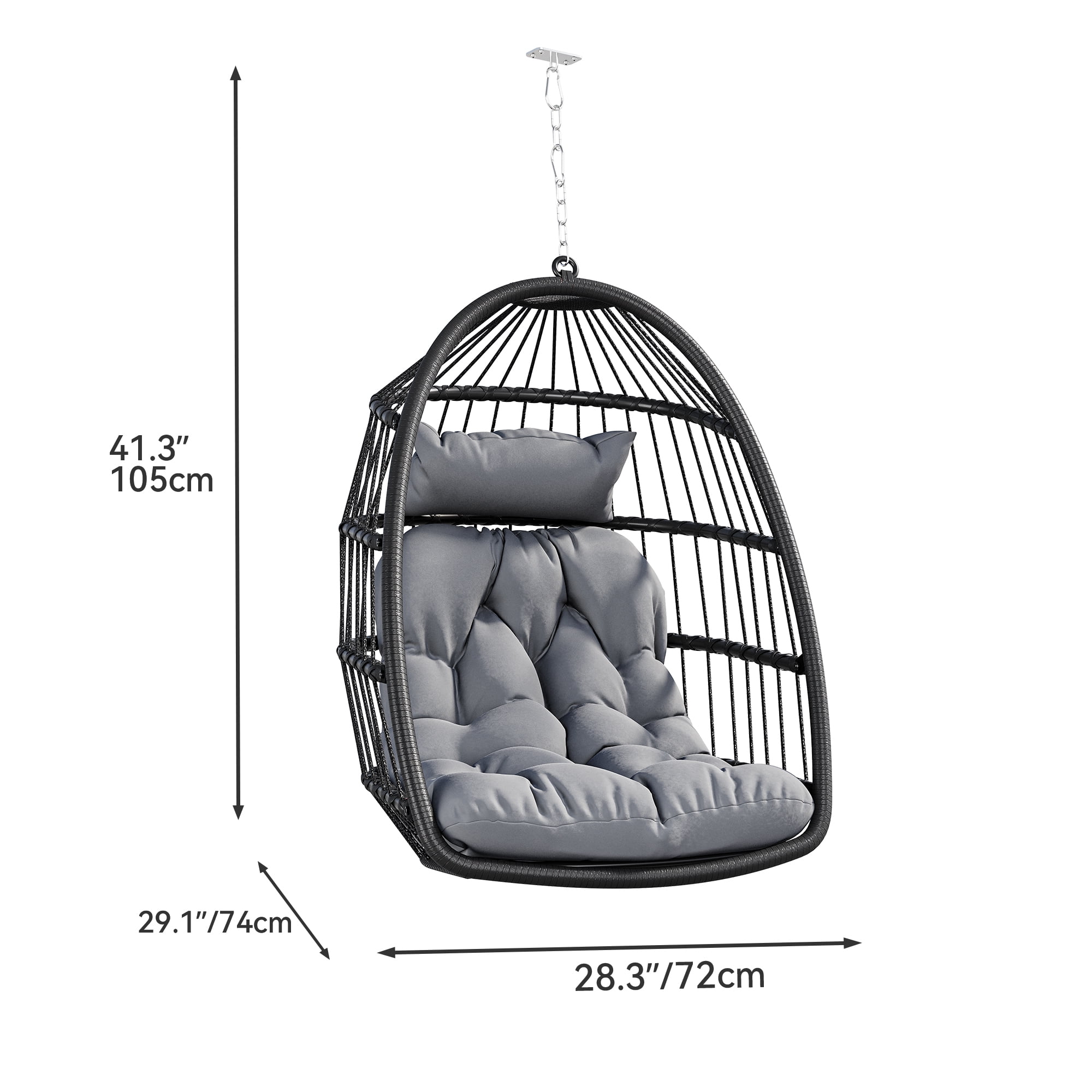 Dextrus Hanging Egg Chair Swing Chair Outdoor Patio Wicker Chair Swing Hammock Egg Chairs with Cushion 330lbs for Patio, Bedroom, Garden and Balcony, Dark Gray(Stand not Included)