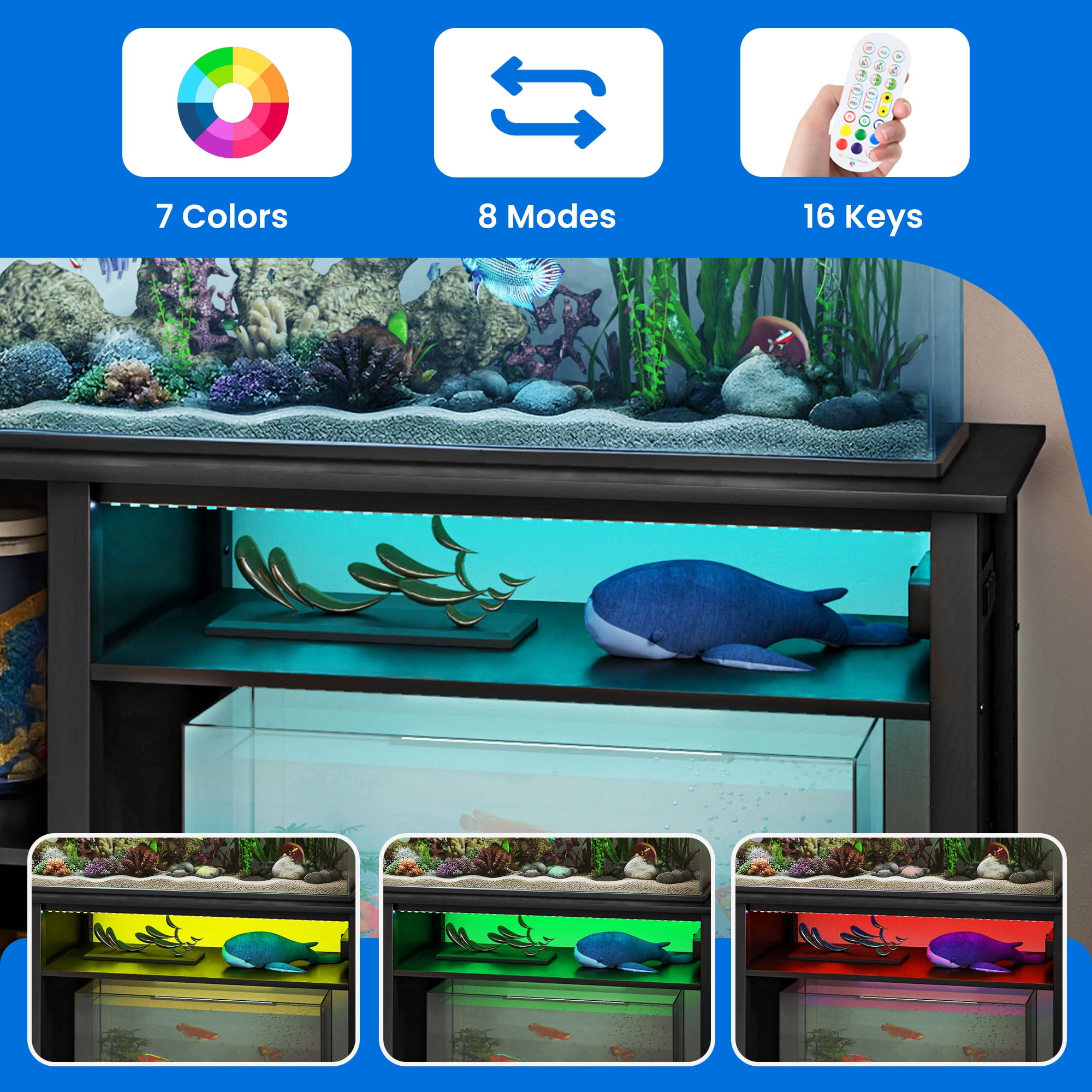 Dextrus Heavy Duty Aquarium Stand for 55-75 Gallon Fish Tanks, with Additional 20 Gallon Space and RGB Light Strip, Fish Tank Stand with 800 lbs Capacity, Adjustable Dividers