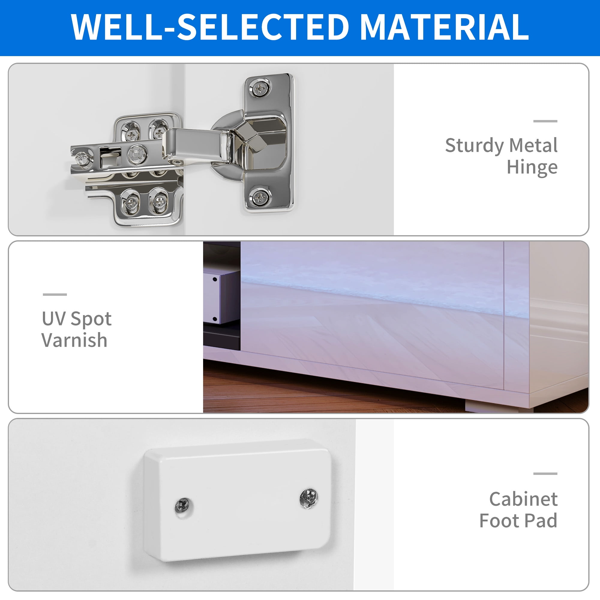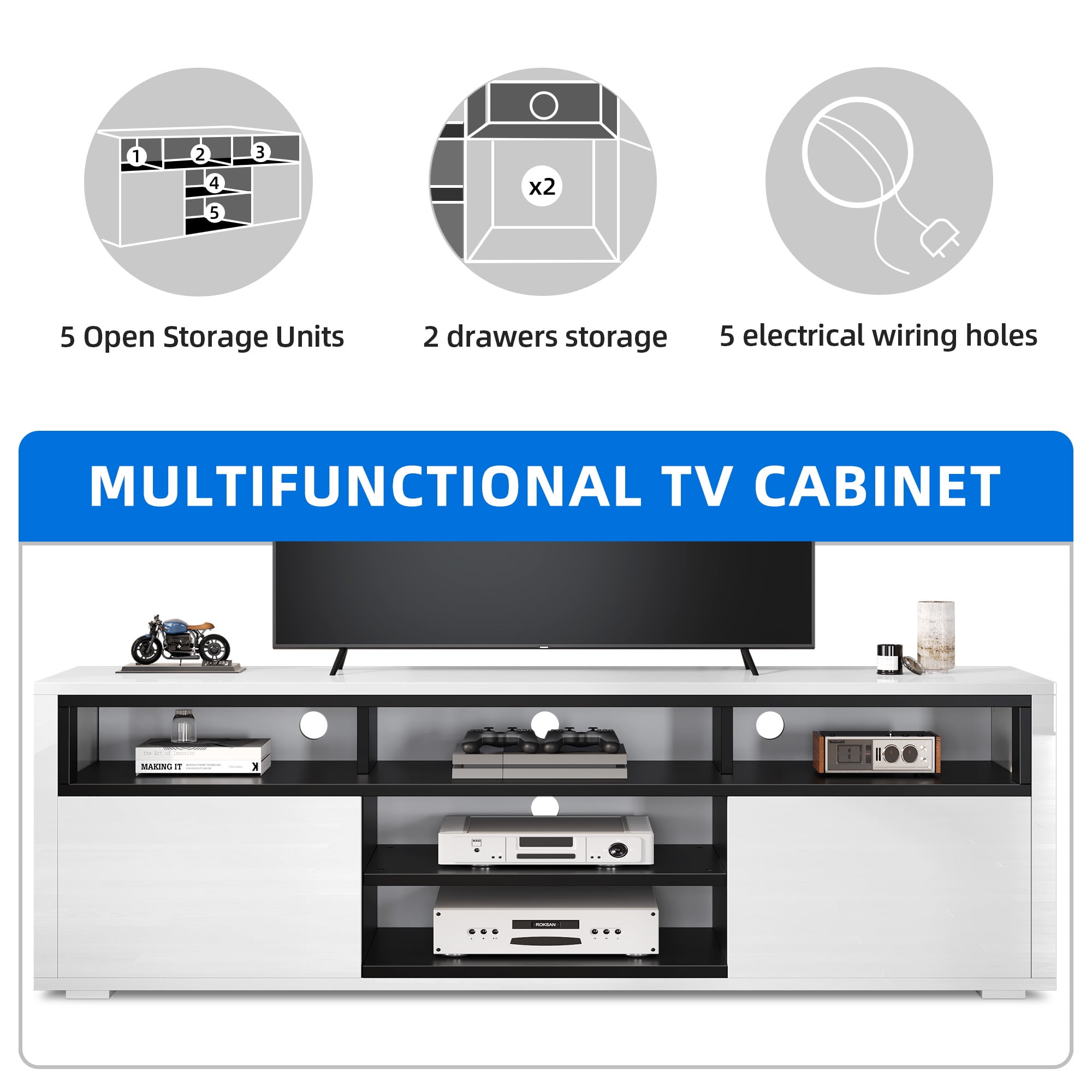 Dextrus High Gloss LED TV Stand for 75″ TV, White Entertainment Center with Storage for Living Room