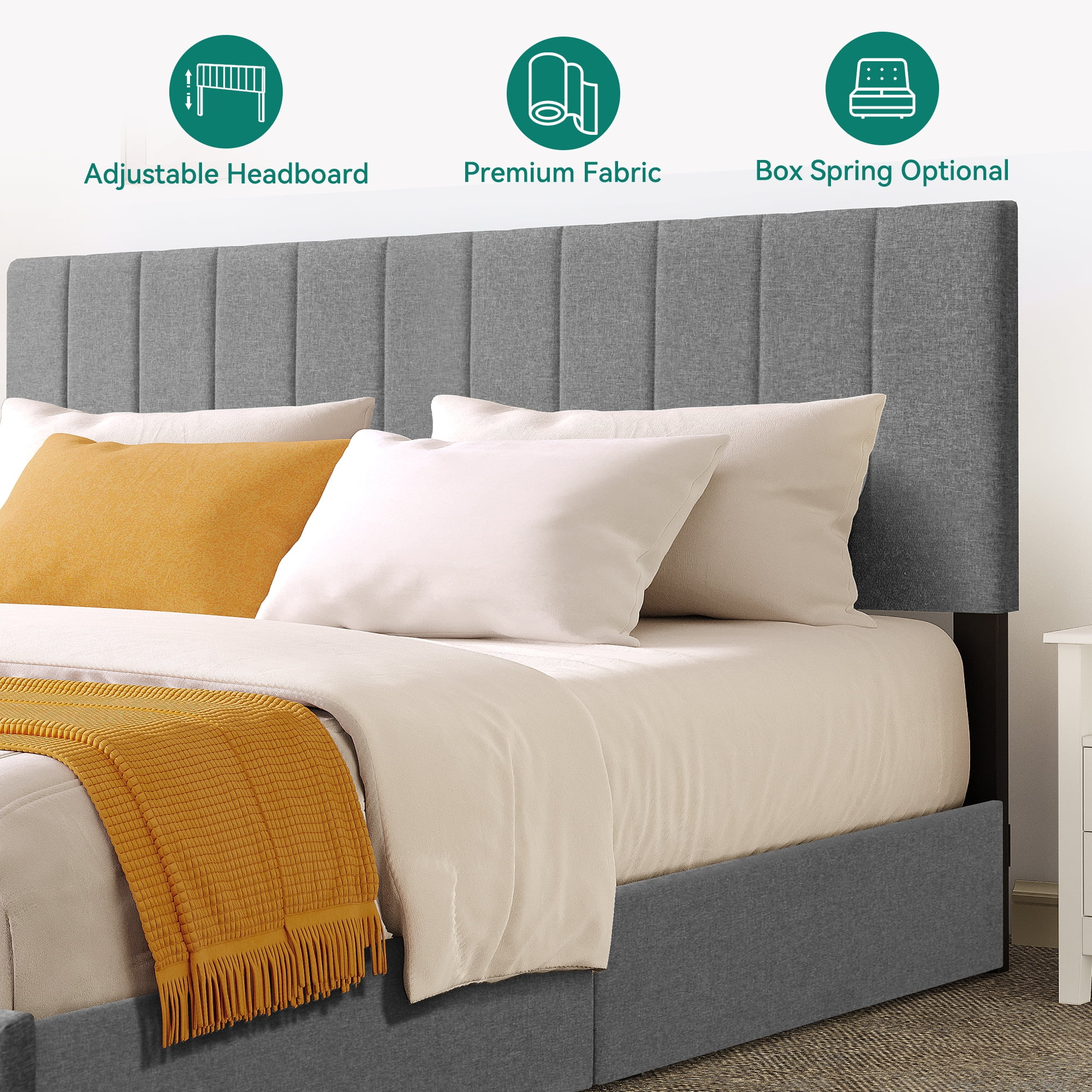 Dextrus King Size Bed Frame 4 Storage Drawers, Adjustable Headboard,No Box Spring Needed, Grey