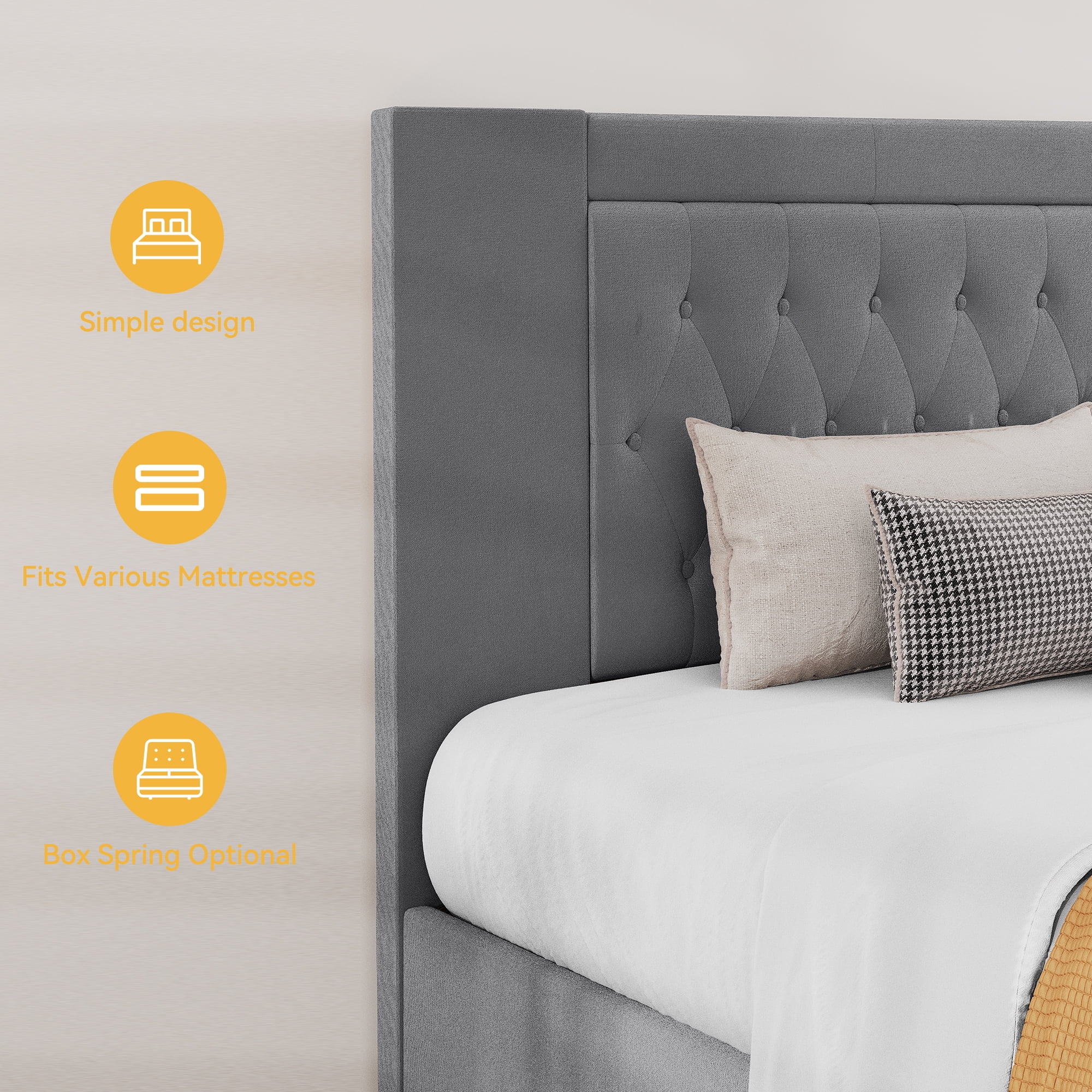 Dextrus King Size Storage Bed Frame with Button Tufted Headboard,No Box Spring Needed,Grey