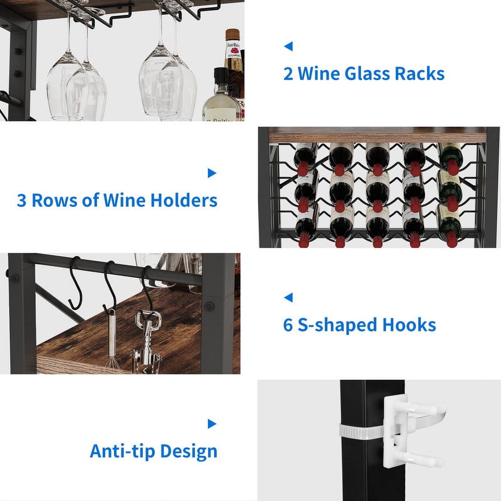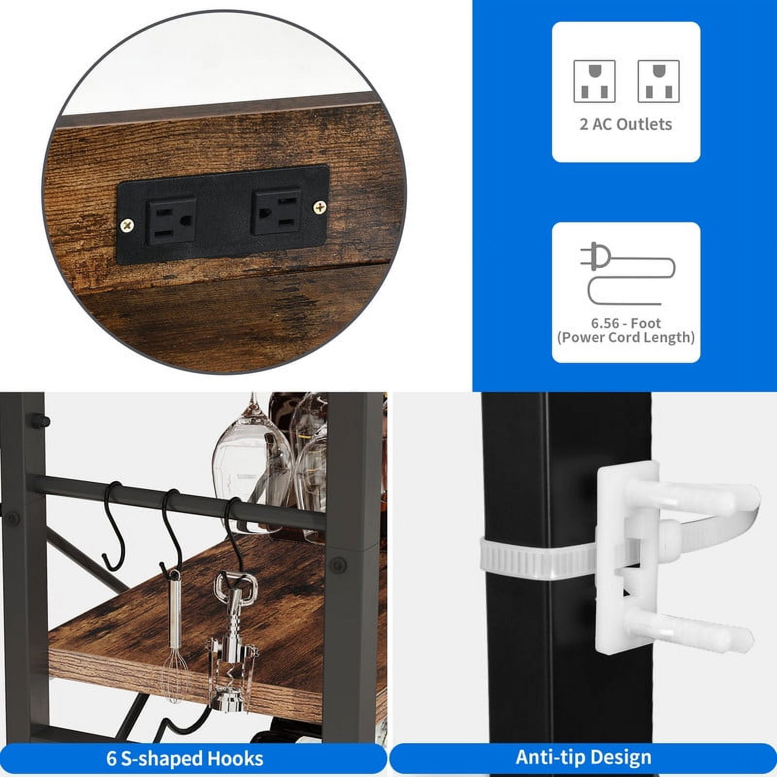 [Convenient Power Outlets] – Featuring 2 power outlets and a 6.56-foot power cord, allowing you to enjoy unparalleled convenience. You can easily charge kitchen appliances like ice makers, coffee makers, juicers, and toasters without having to rearrange them. Strategically placed side sockets also ensure your cords stay perfectly organized. [Spacious Storage Space] – Well-designed 3-tier wire rack can hold up to 15 wine bottles, while 2 shelves elegantly display your cherished glasses and mugs. Additionally, 3-tier open shelving provides ample space to store microwaves, utensils, spices, pots, and pans. the overall dimensions of 23.62″W x 13.77″ D x 50.2″H perfectly fit in your living room and kitchen. [Multi-Functional Cabinet] – Whether you are looking for a home bar cabinet with dedicated wine storage, a multi-functional kitchen bakers rack, a microwave stand, or a living room display Stand and storage organizer, this utility rack will be your perfect answer. [Exquisite craftsmanship and Stable Structure] – Our Dextrus kitchen bake rack is crafted from P2-grade environmentally friendly panels. Its sturdy black reinforced metal frame, coupled with 28mm thickened honeycomb panels, ensures undoubtedly stability and strong load-bearing capacity for your kitchen appliances. The 4 adjustable feet easily level the rack, ensuring a balanced experience, even on uneven floors. [Easy Installation] – The installation process is simple as each piece is carefully labeled with a letter or number. The step-by-step instructions provided are easy to follow, ensuring hassle-free assembly.