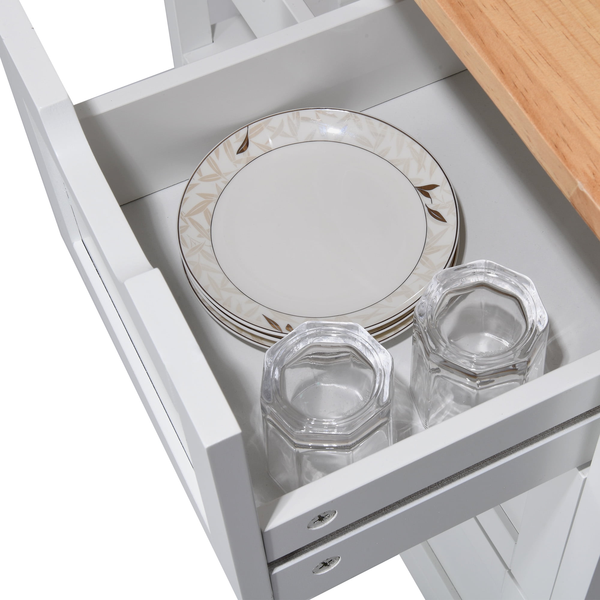 Dextrus Kitchen Storage Cart with Shelves and Drawers, Rolling Kitchen Island with Wheels, White