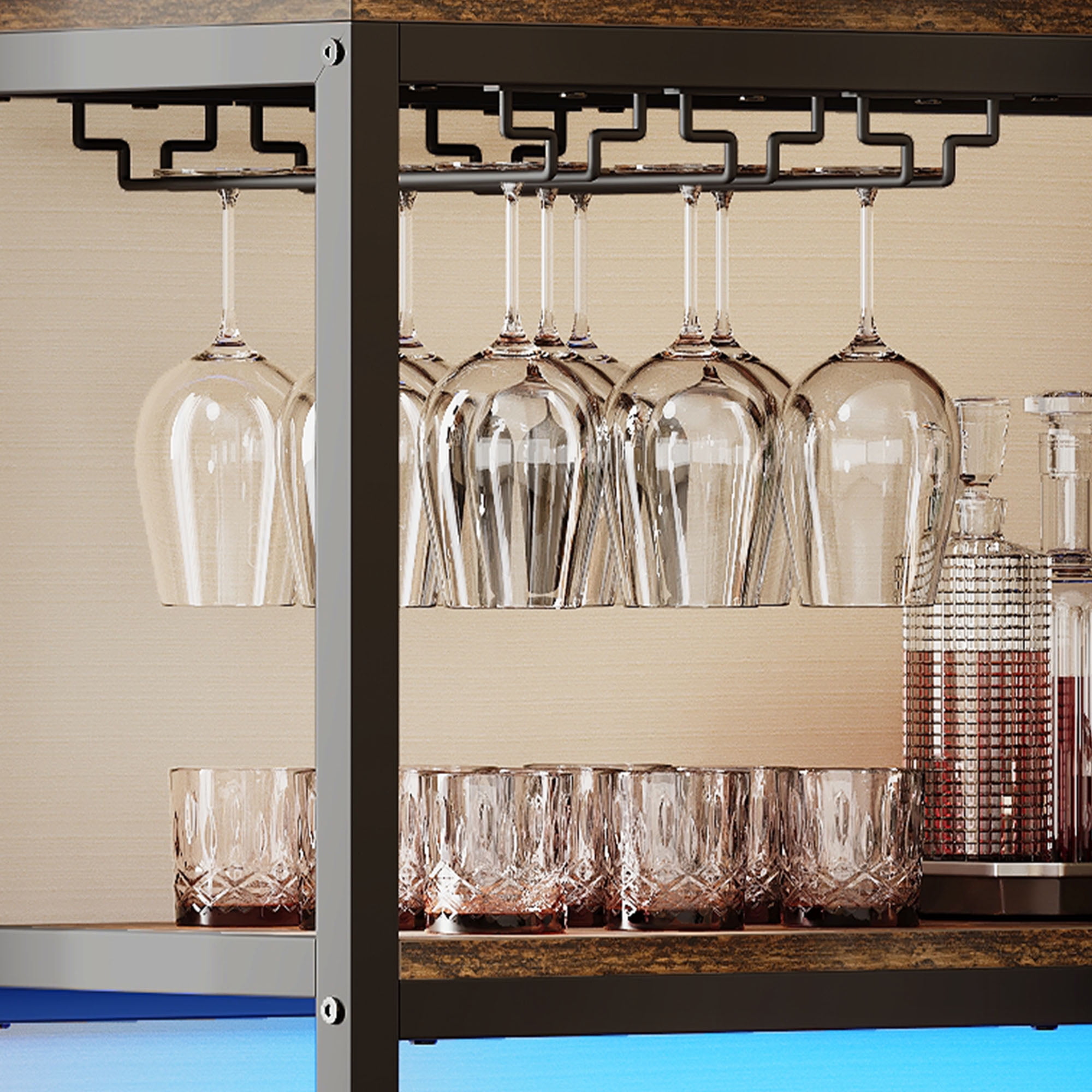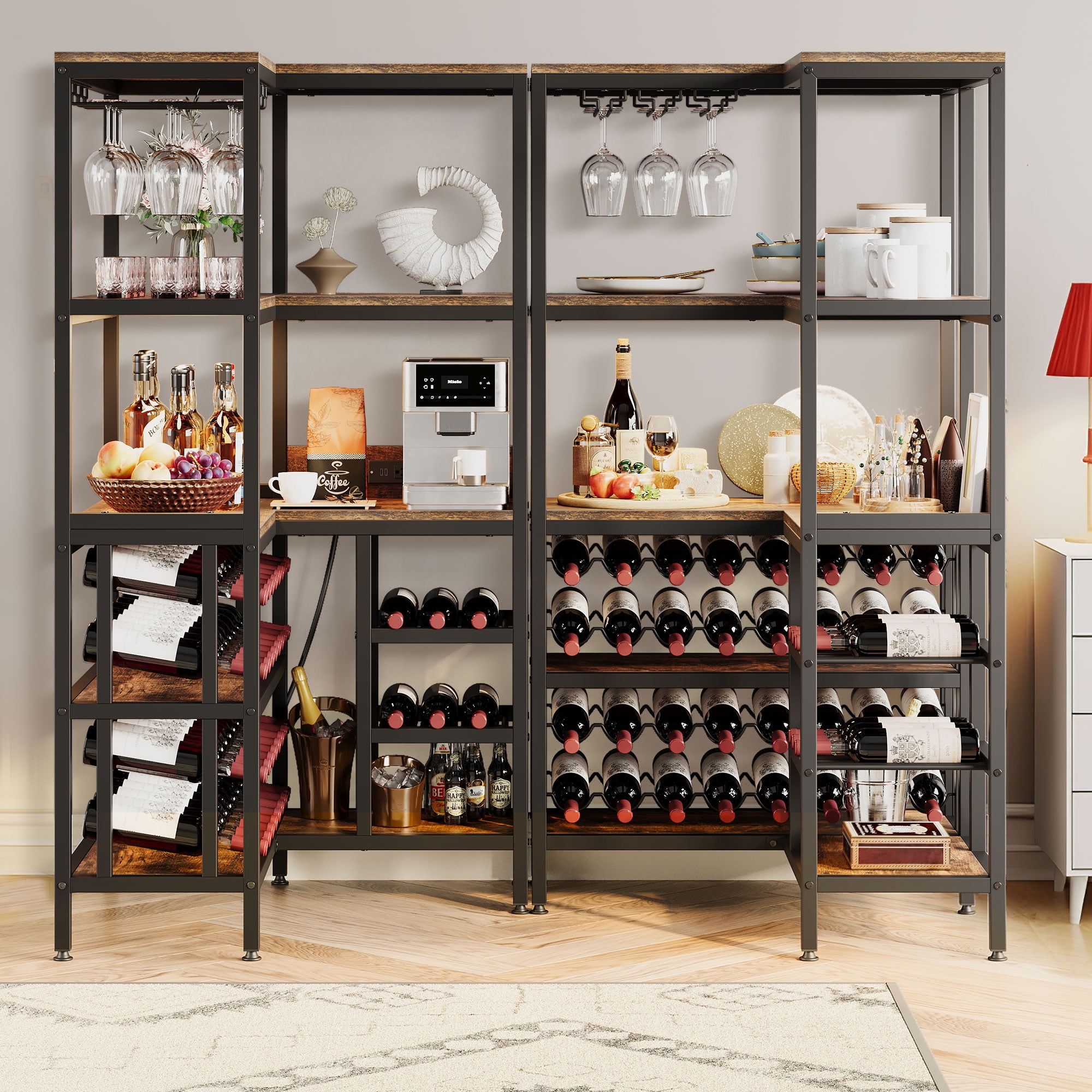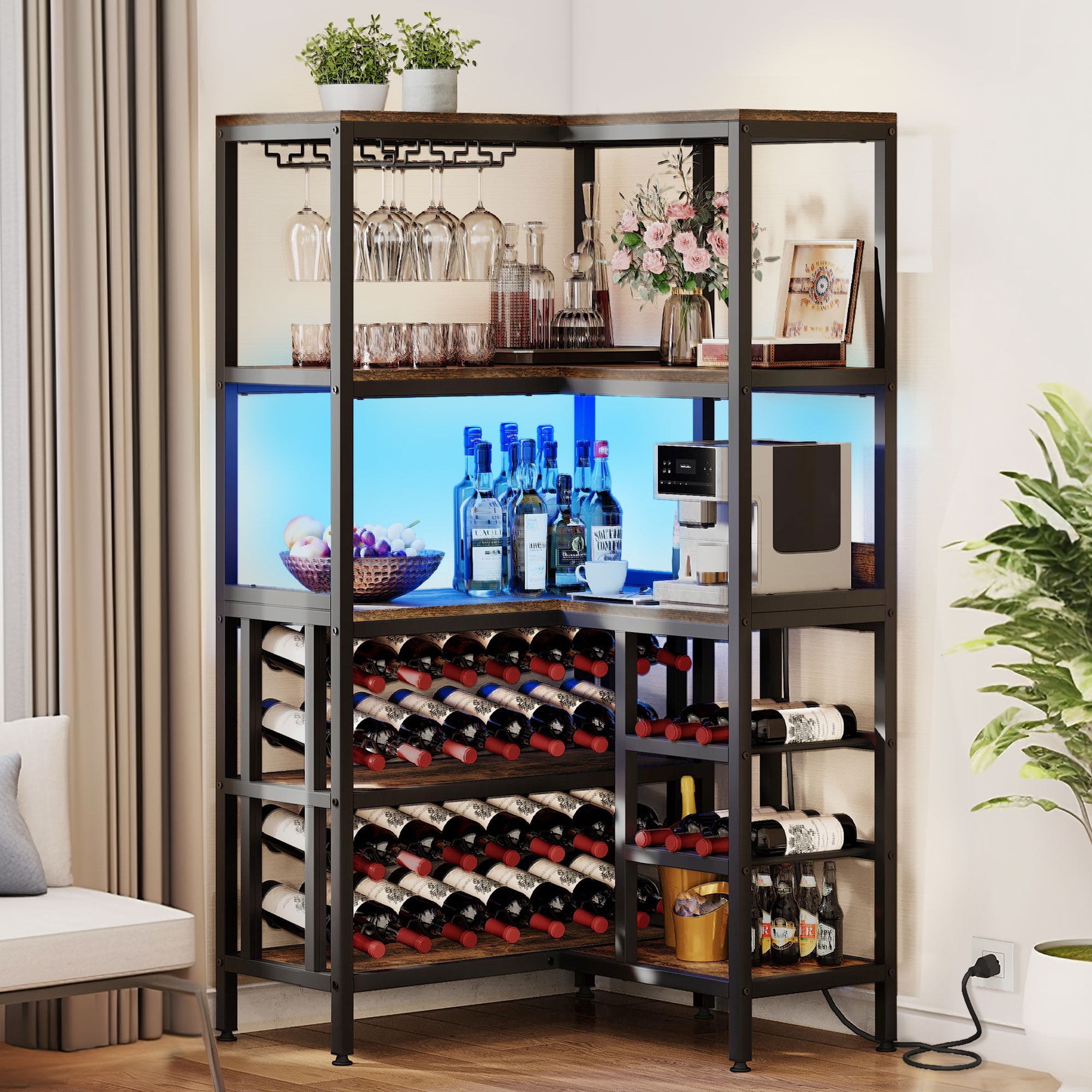 Dextrus Large Corner Wine Rack with Led Light & , 5-Tier L Shaped Industrial Bar Cabinets