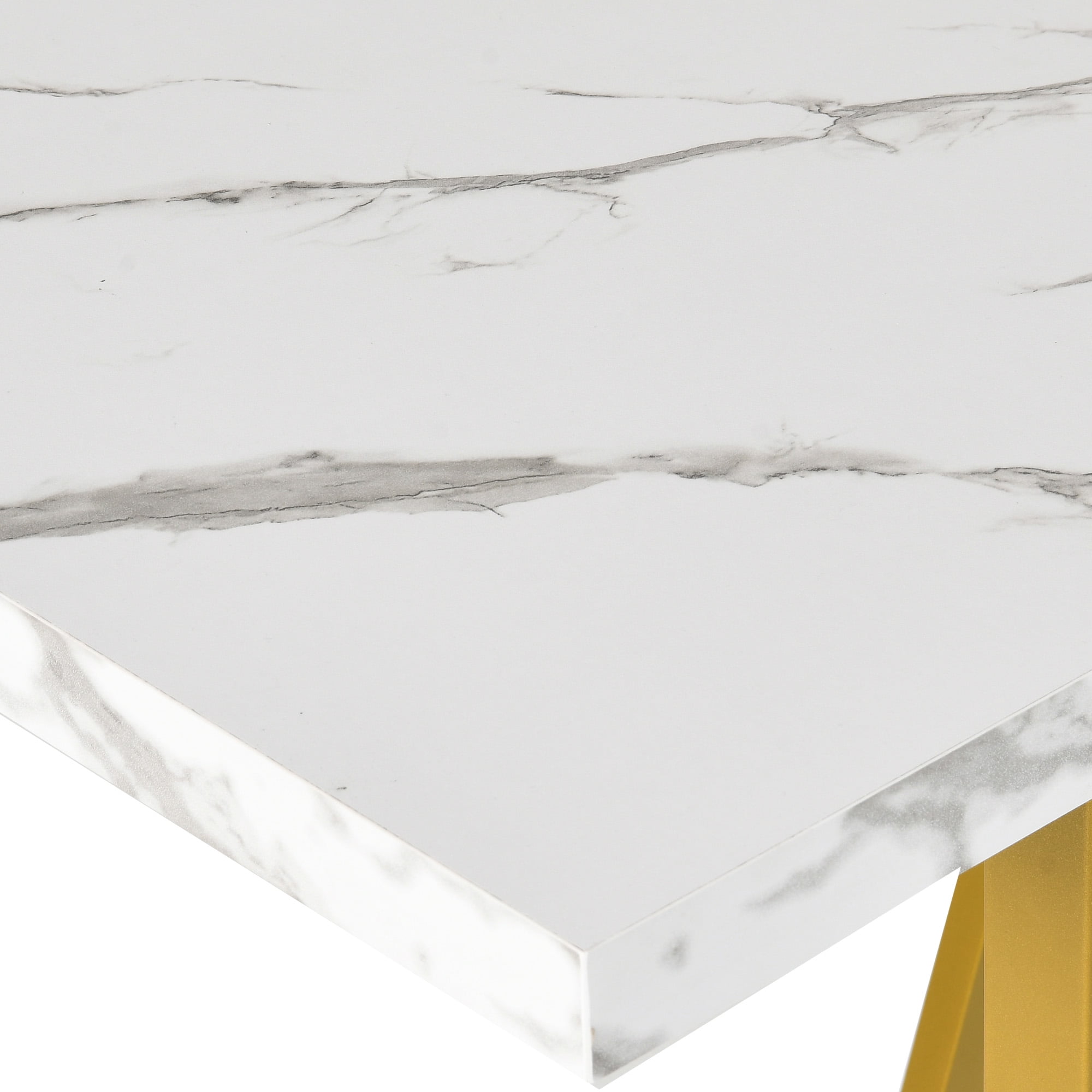 Dextrus Modern Dining Table, 82 inches Rectangle Dinner Table for 6-8 People, Faux Marble Large Kitchen Table with Gold Metal Legs for Dinner Room Kitchen, White