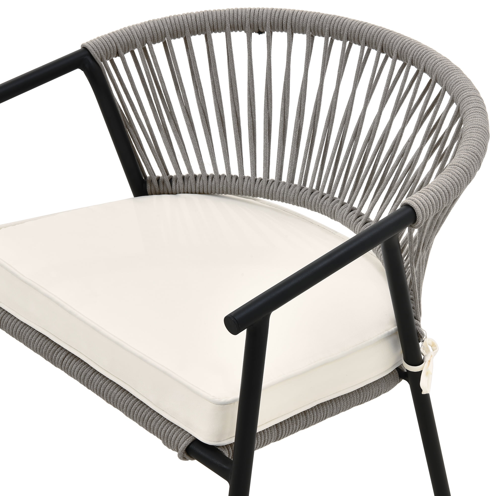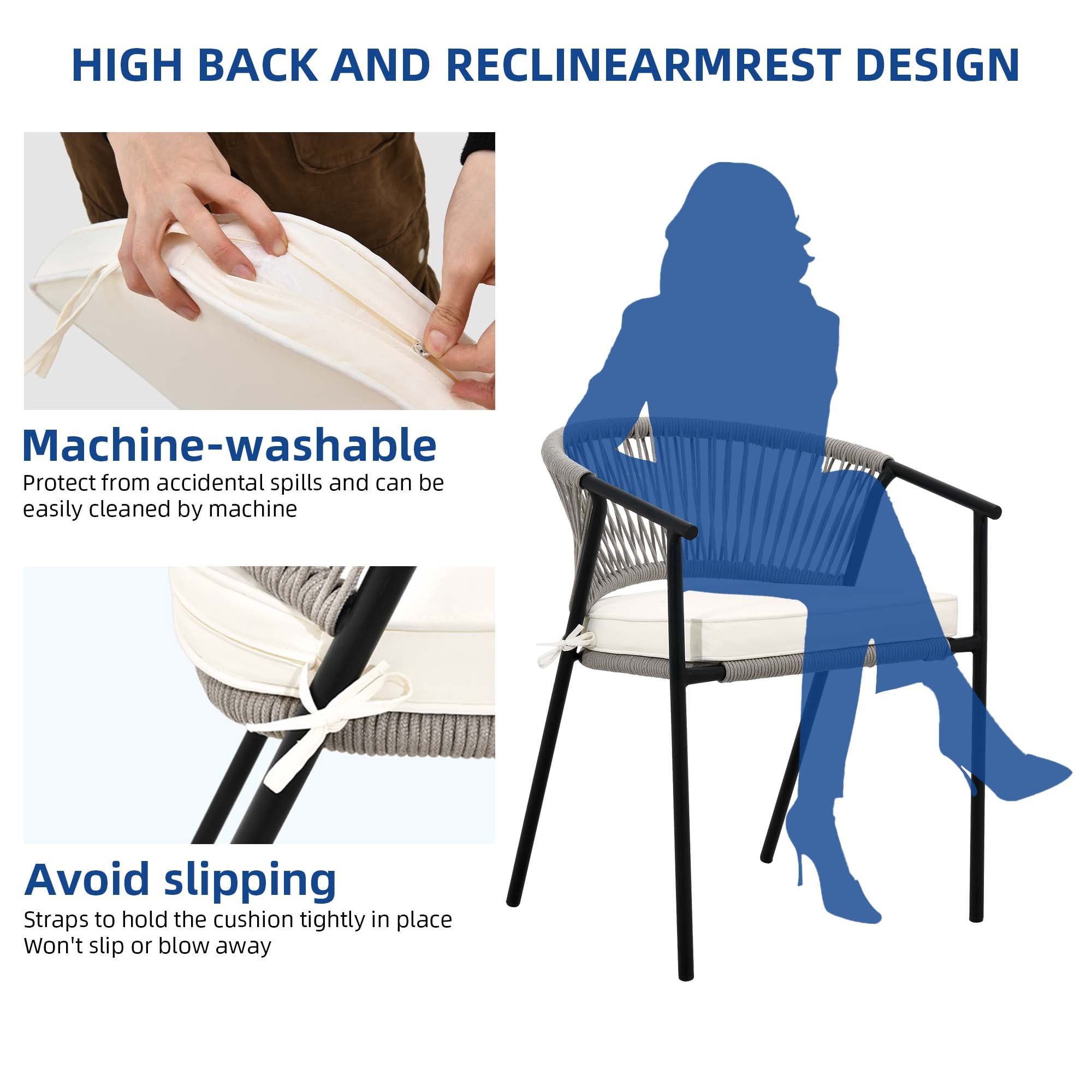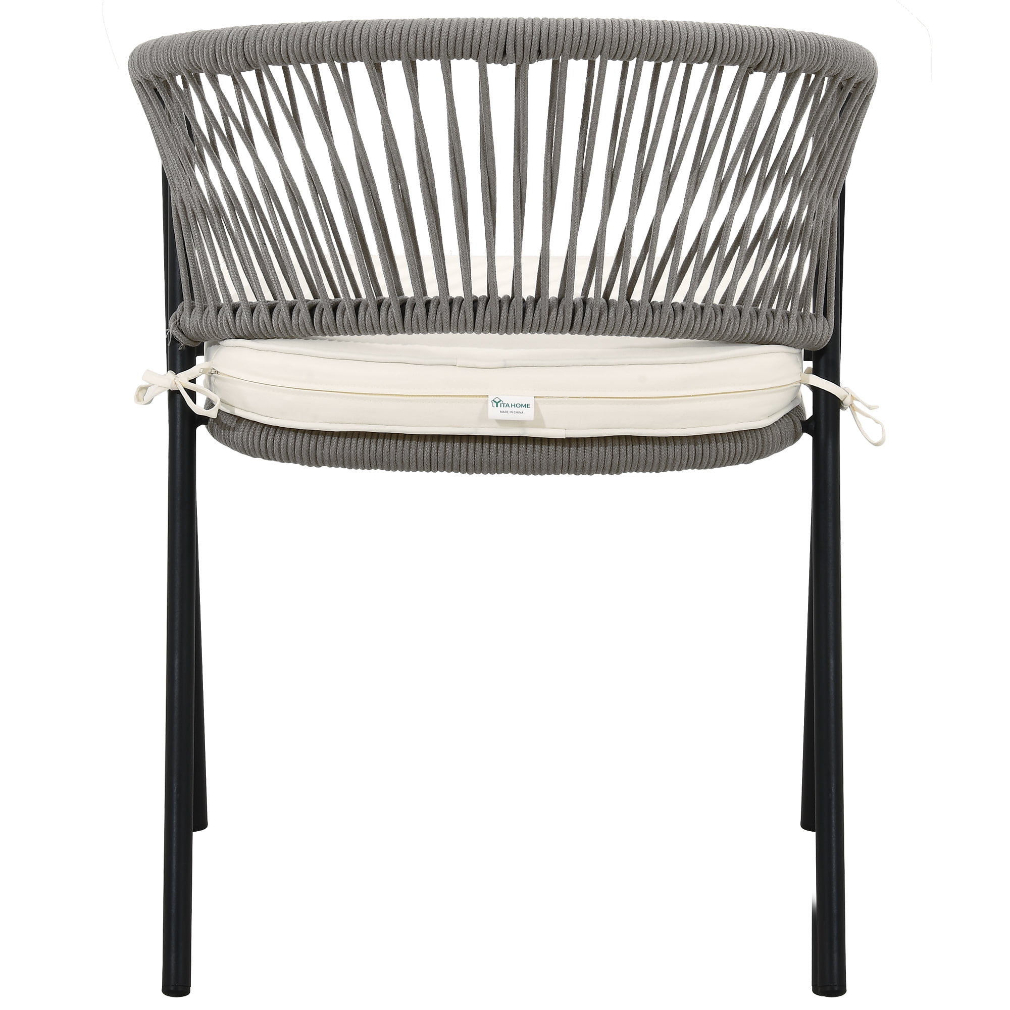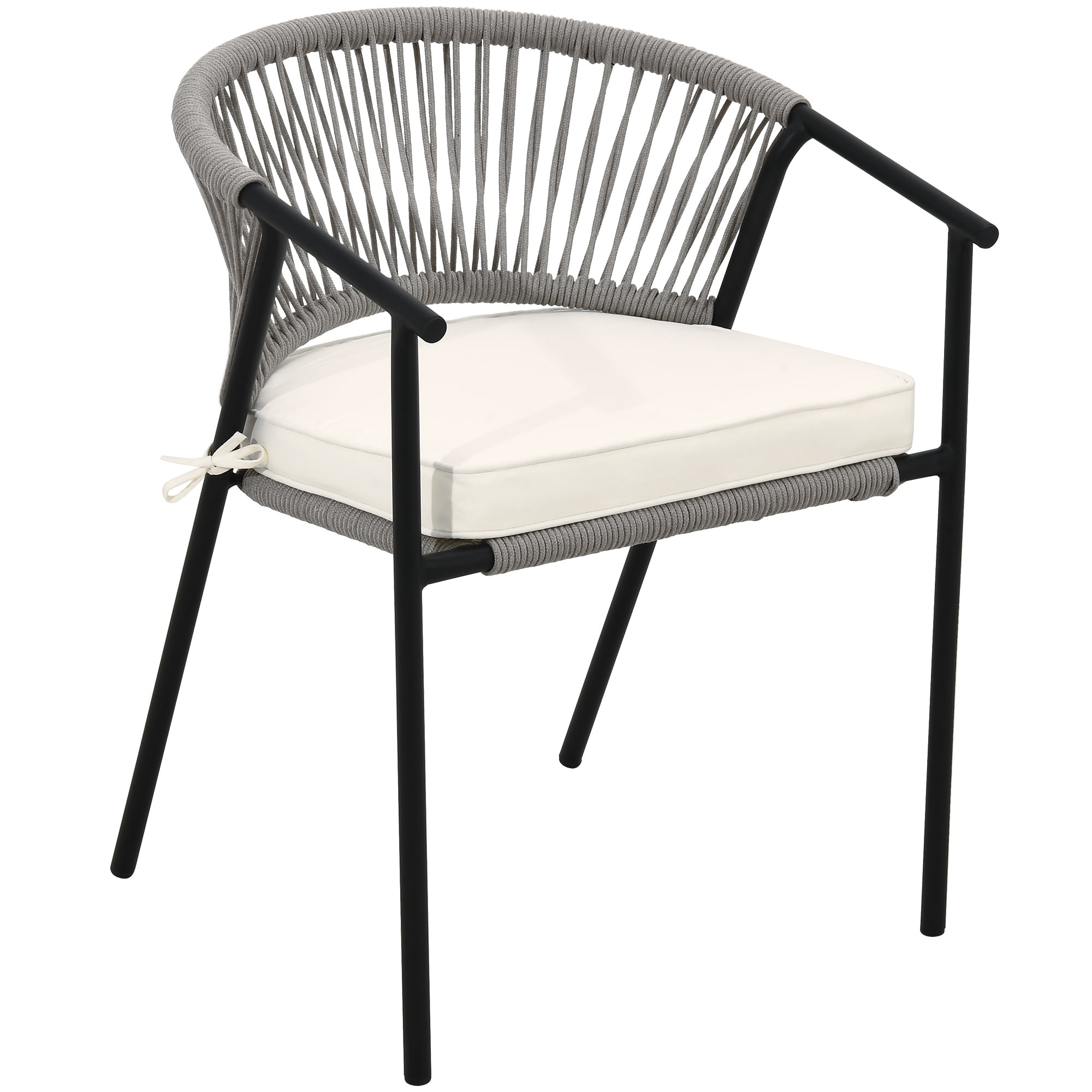 Woven Rope Chair: Our woven rope chair provides an elegant style and a sense of casualness, blending seamlessly into any décor from contemporary or coastal to preppy and ultra-chic. Upgrade the look of your outdoor space, soften it up, and make your outdoor space cozier and warmer with this chair. Premium Materials: The chair is made up of a powder-coated steel frame wrapped in hemp rope, promising durability and sturdiness enough to hold up to 265lbs. The weather-resistant polyester fabric safeguards the chair from the elements, ensuring protection from accidental drizzle or drink spills. Cloud-Like Comfort: Our outdoor dining chair is furnished with a soft cushion that provides you with ultimate comfort that makes you feel you are sitting on a cloud. Sink in or lean back, relax your heart, and rejuvenate your soul. Space-Saving: Our outdoor chairs are space-efficient, taking up minimal storage space. The chairs can be stored vertically, freeing up storage space; one can now store two chairs in the space it would take up to store one. Versatile Use: We provide modern additions to your outdoor space, such as gardens, porches, patios, pools, etc. However, our wicker chairs can contribute to a laid-back bohemian feel to your living or dining room as well. Our woven rope chair can be designed for both indoor and outdoor use.