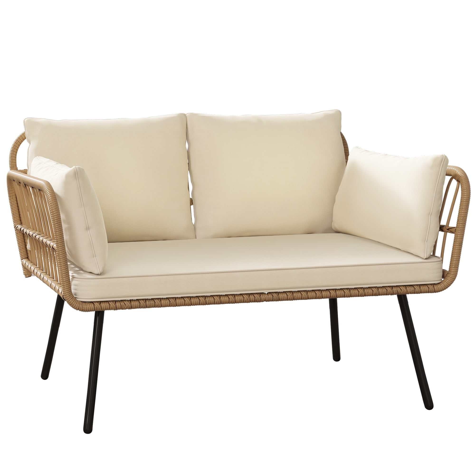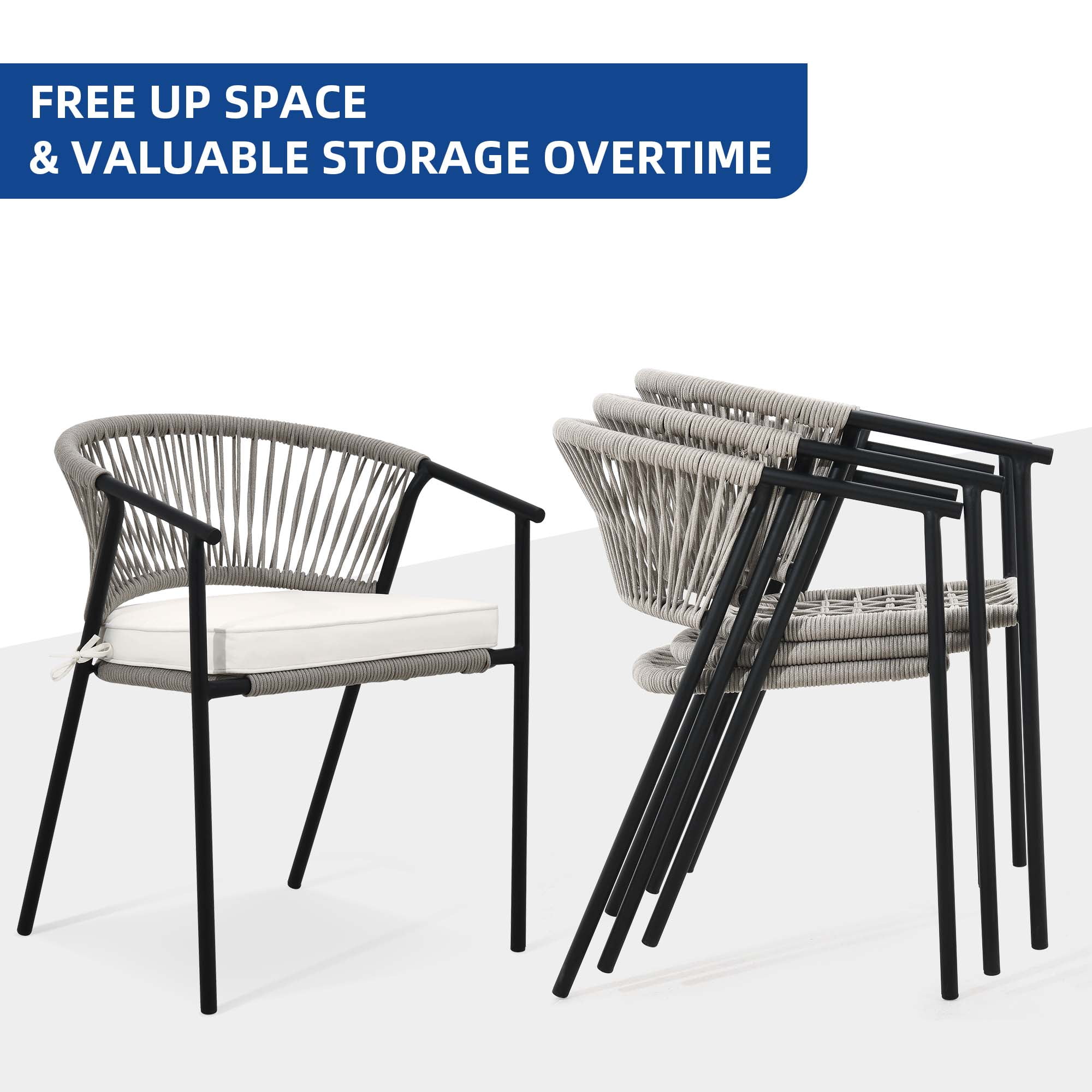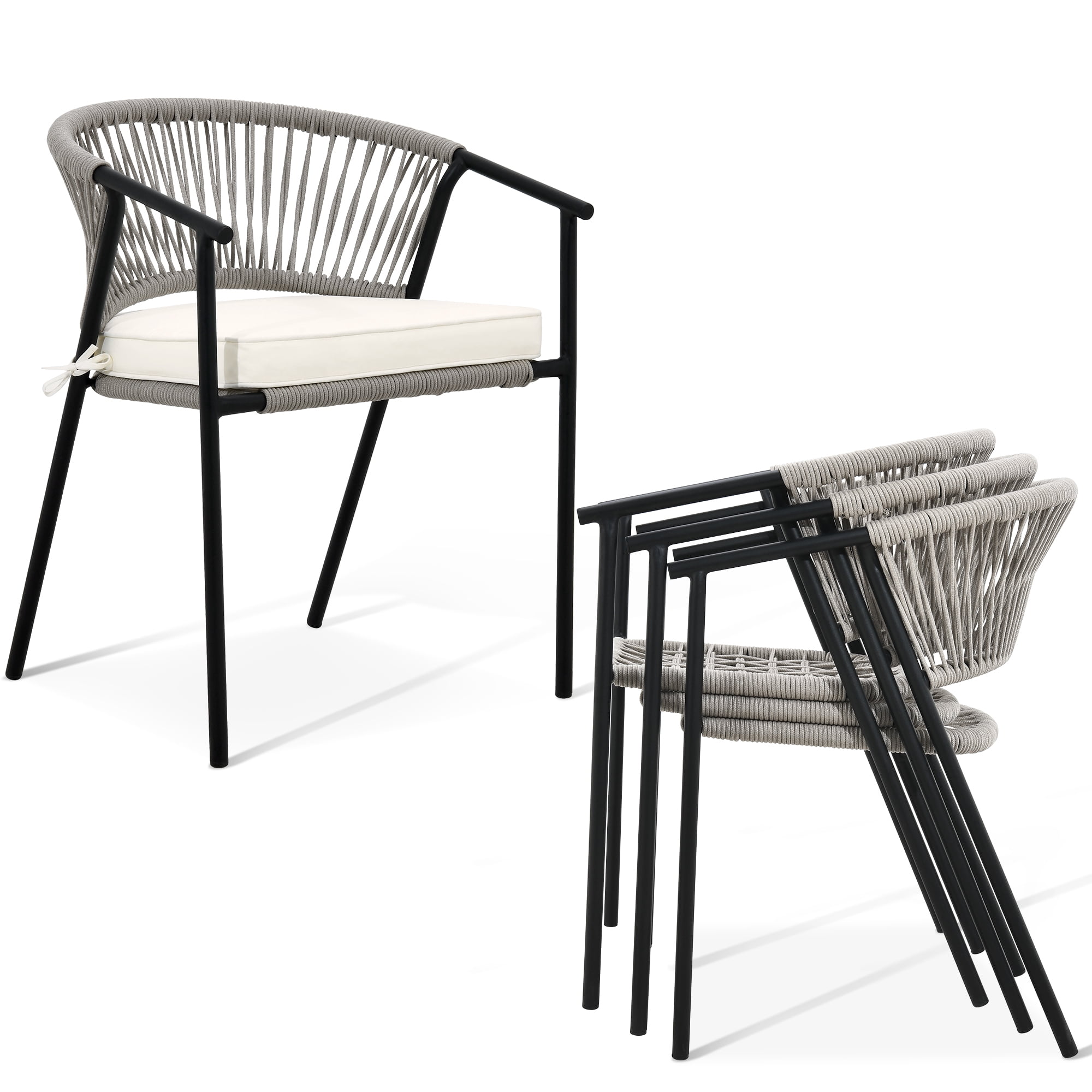 Dextrus Outdoor Dining Chair Set of 4, Rope Woven Stackable Patio Dining Armchair With Cushions – Beige