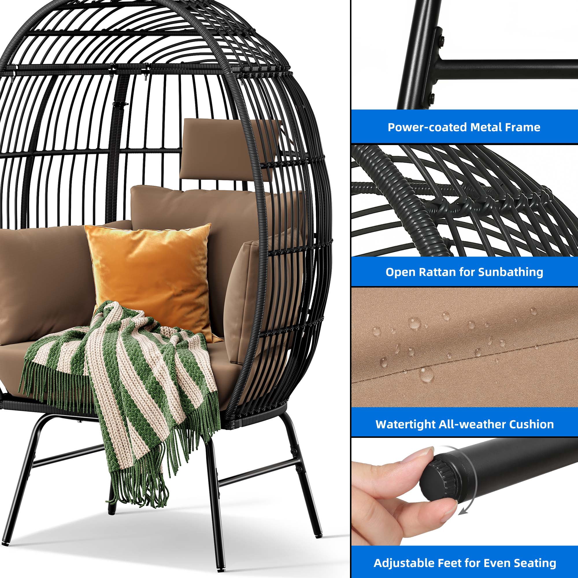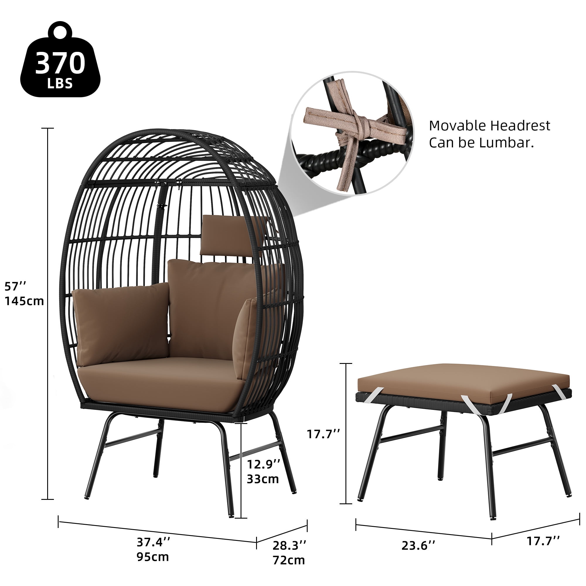 Dextrus Outdoor Egg Chair with Ottoman/Footrest, Patio Wicker Basket Chair with Stand and Cushion Cocoon Chair – Brown