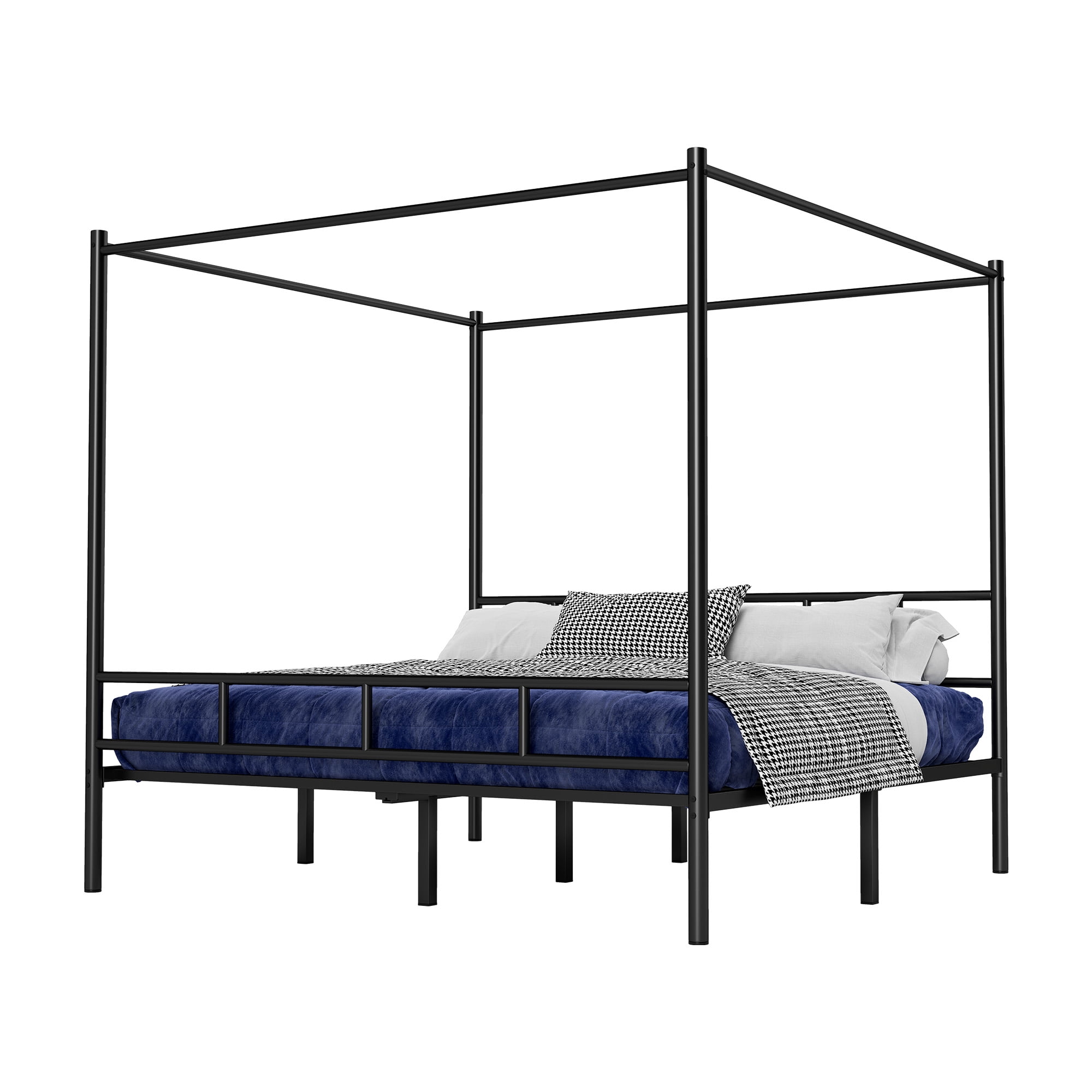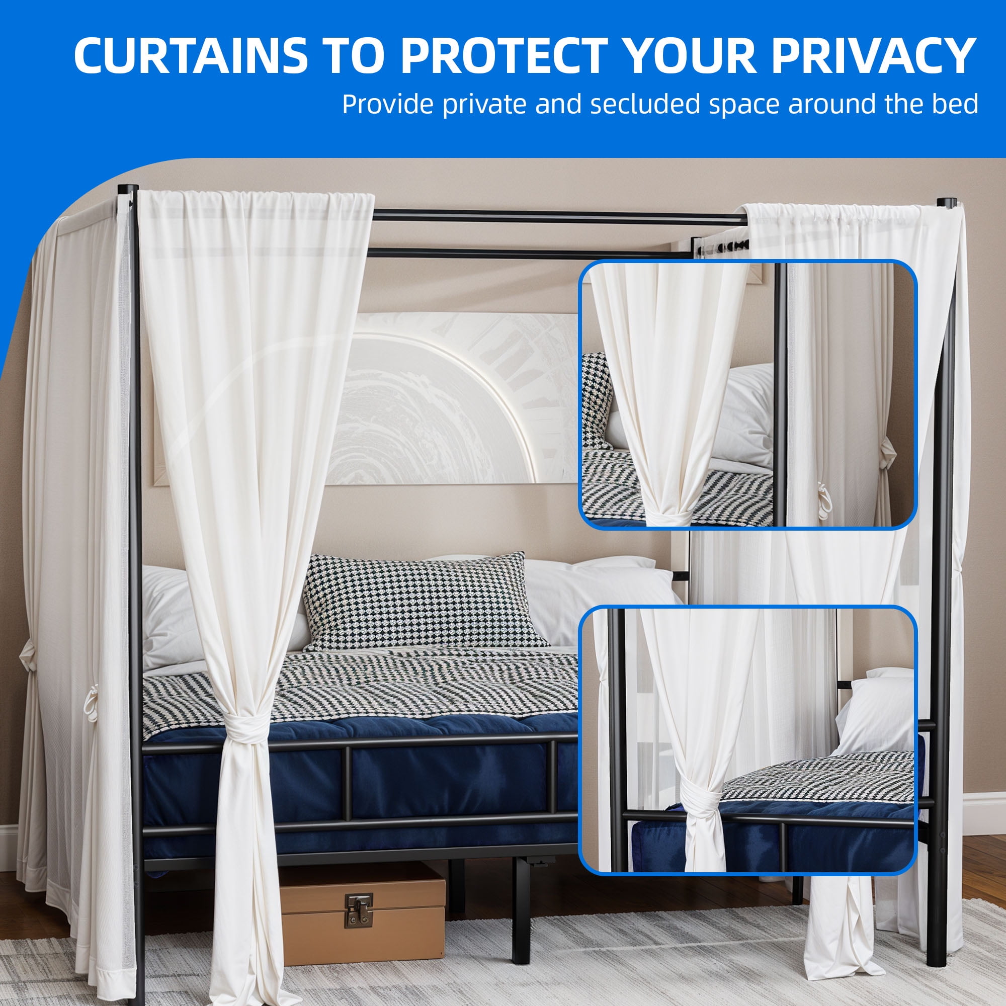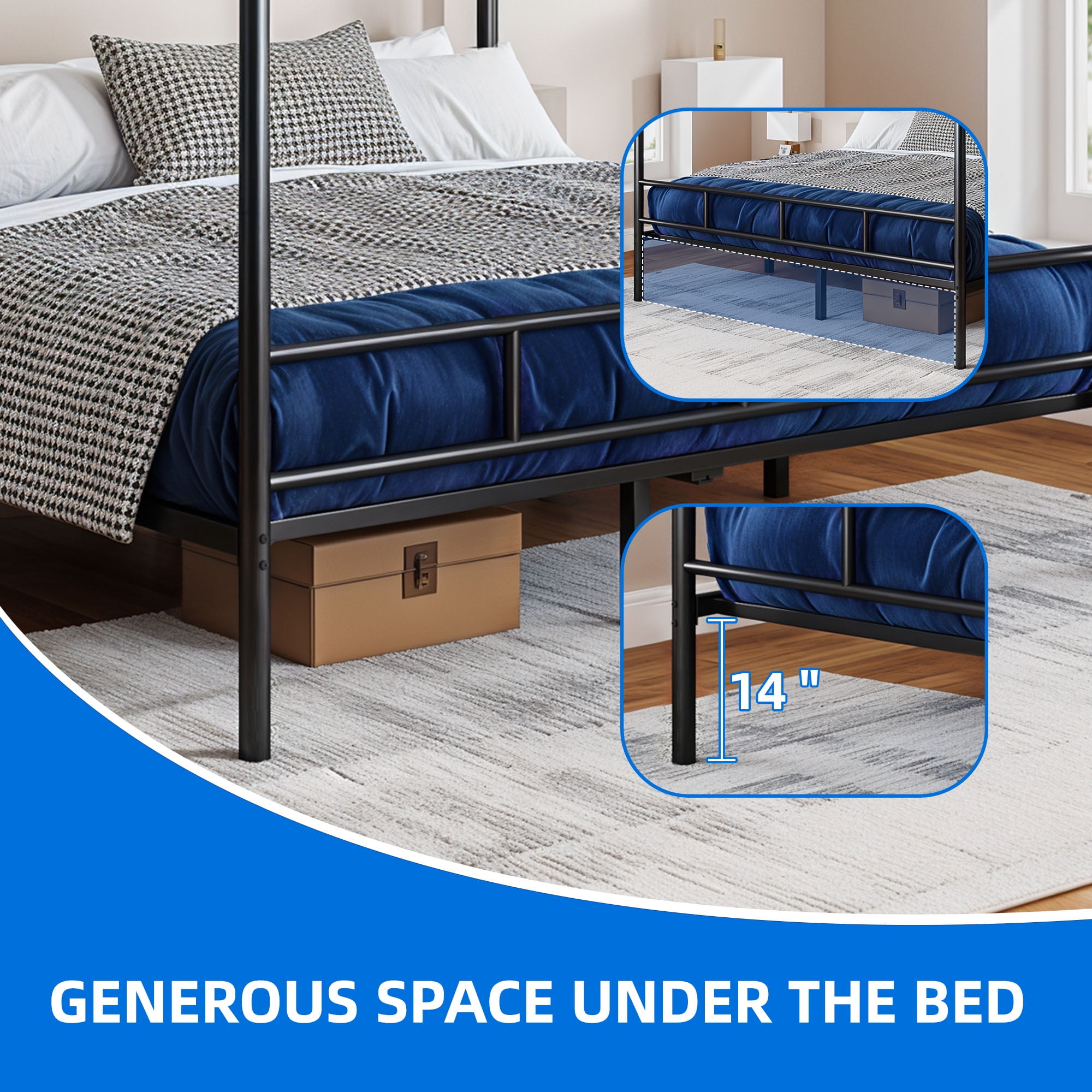 Dextrus Queen Size Bed Frame, Metal Canopy Four Poster Bed Frame,No Box Spring Needed, Black