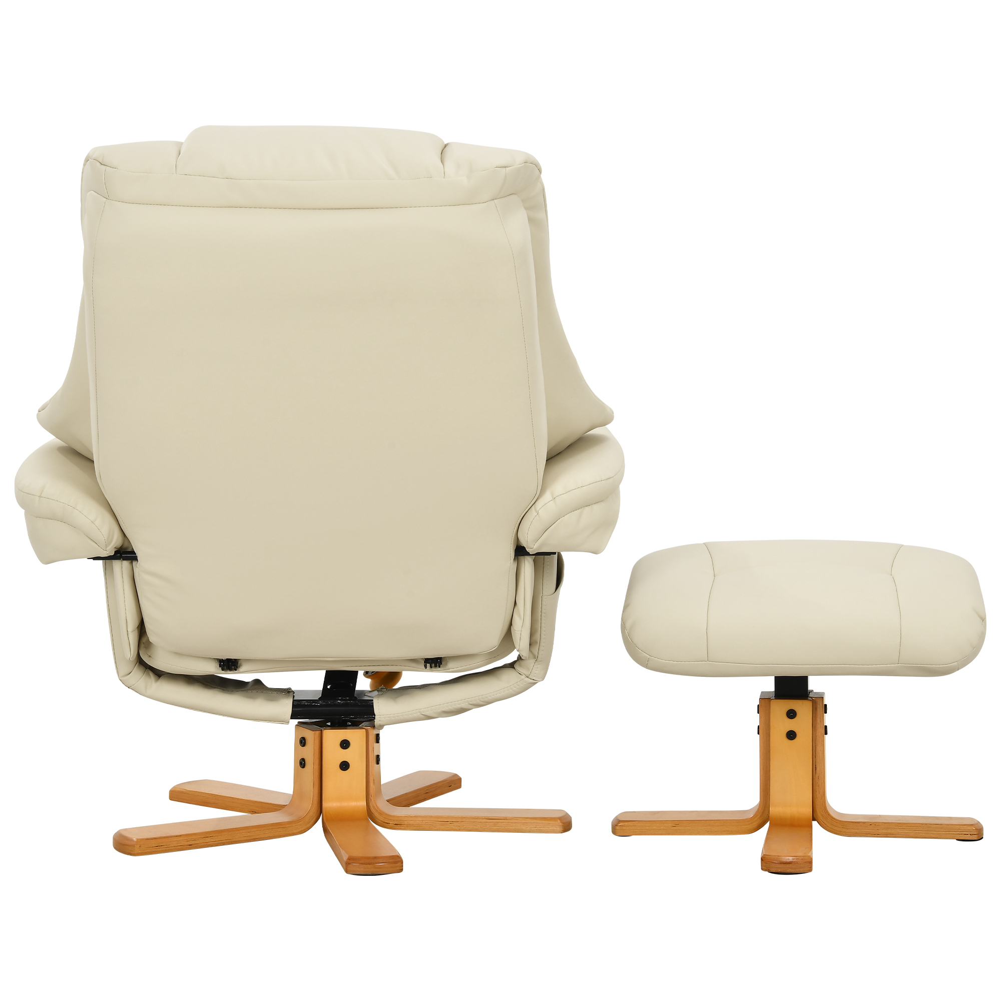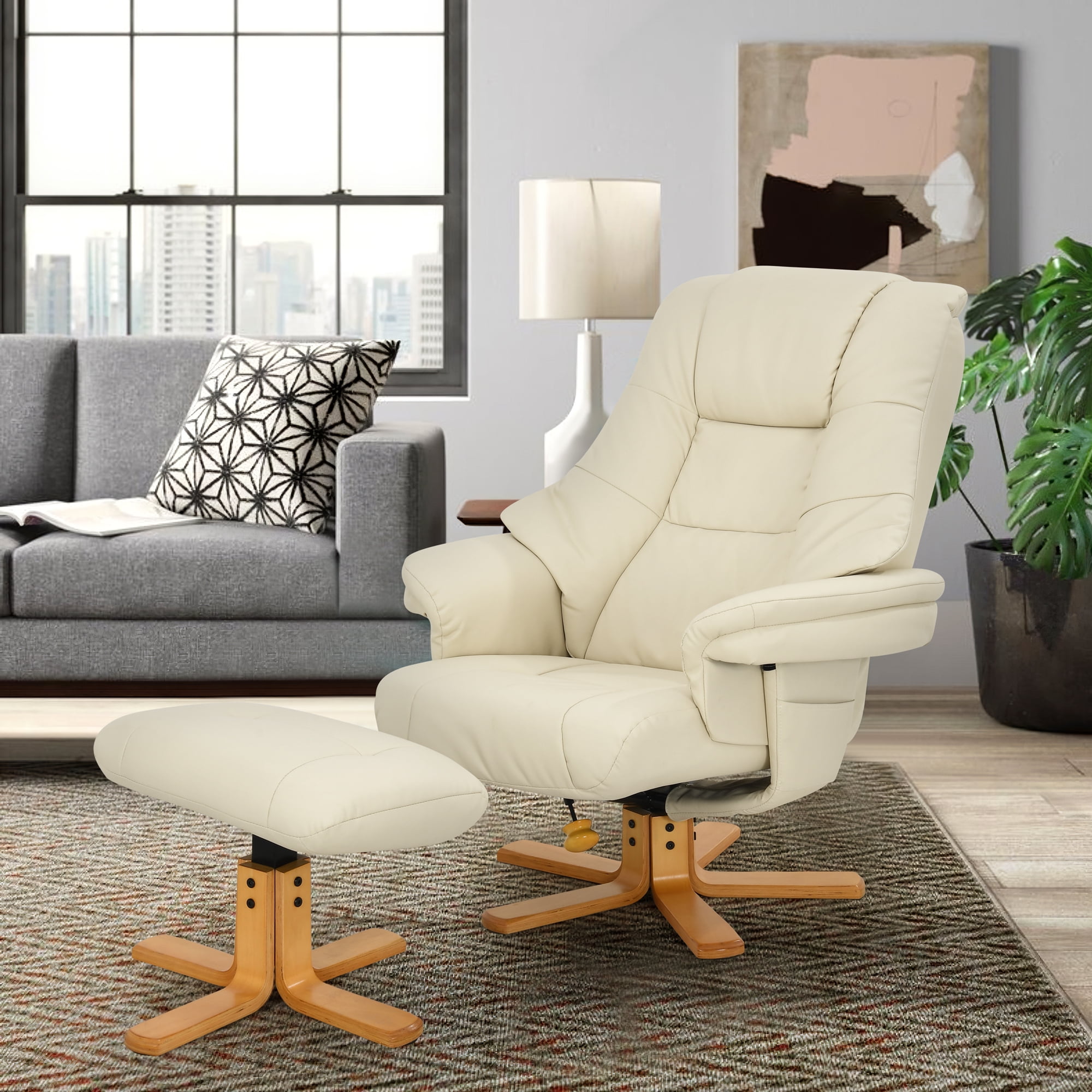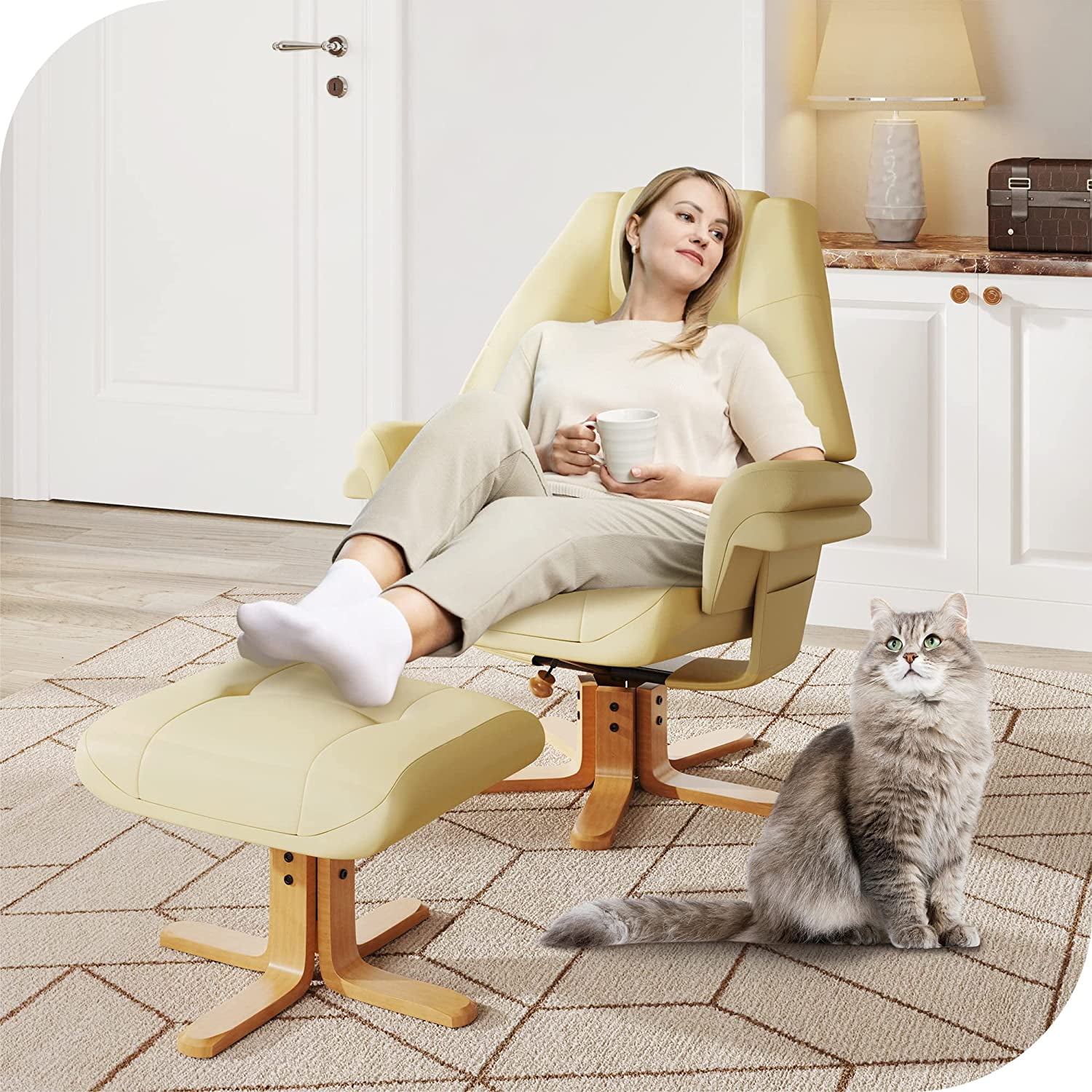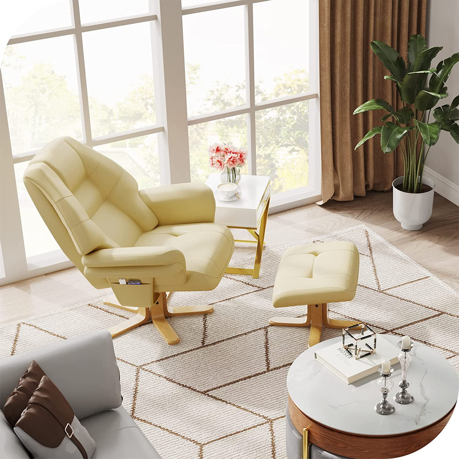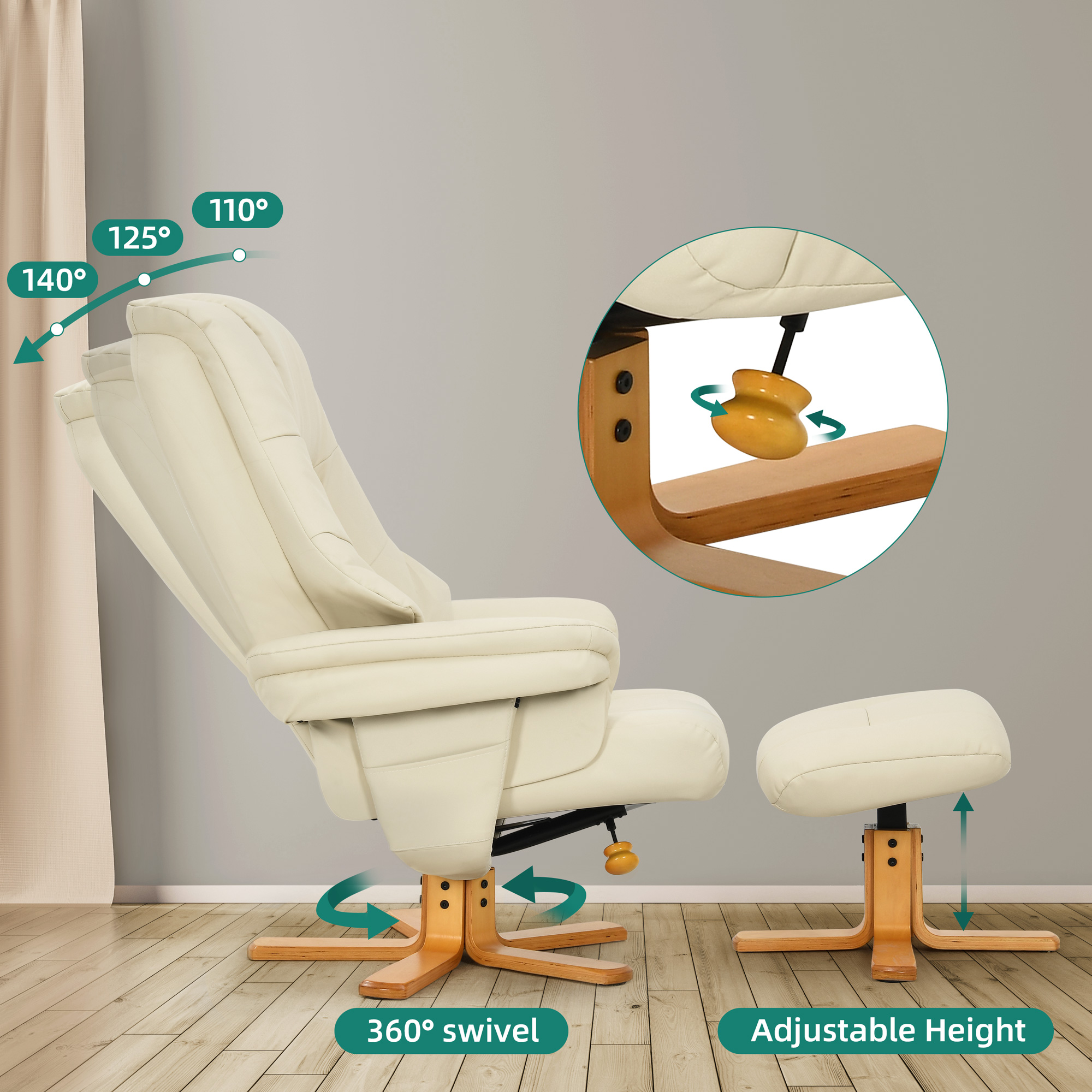 Dextrus Recliner Chair w/ Ottoman,Swivel PU Leather Lounge Accent Armchair with Wood Base for Living Room Bedroom Home Office