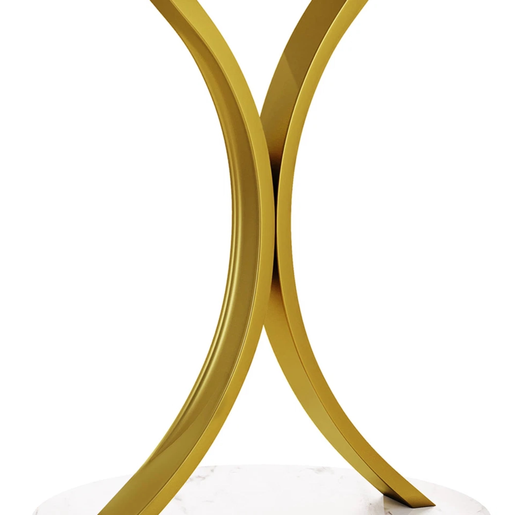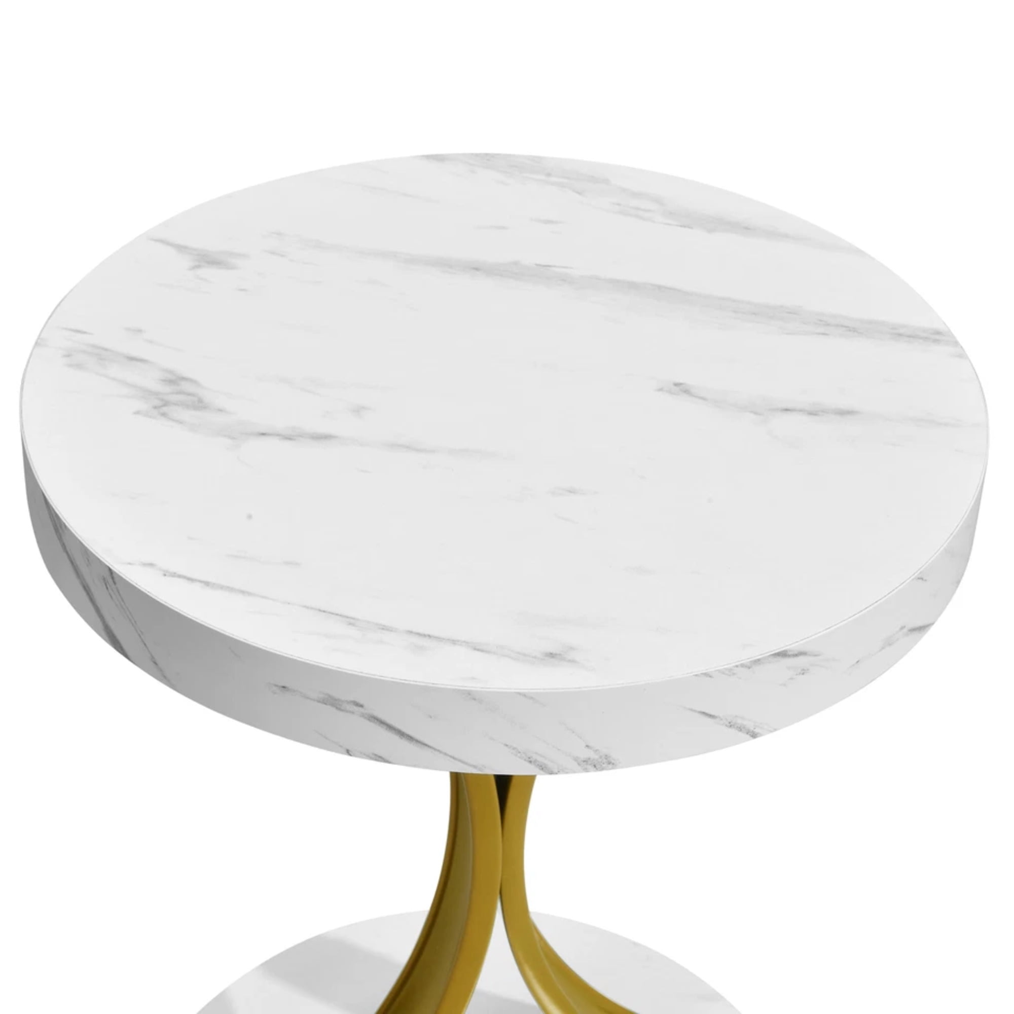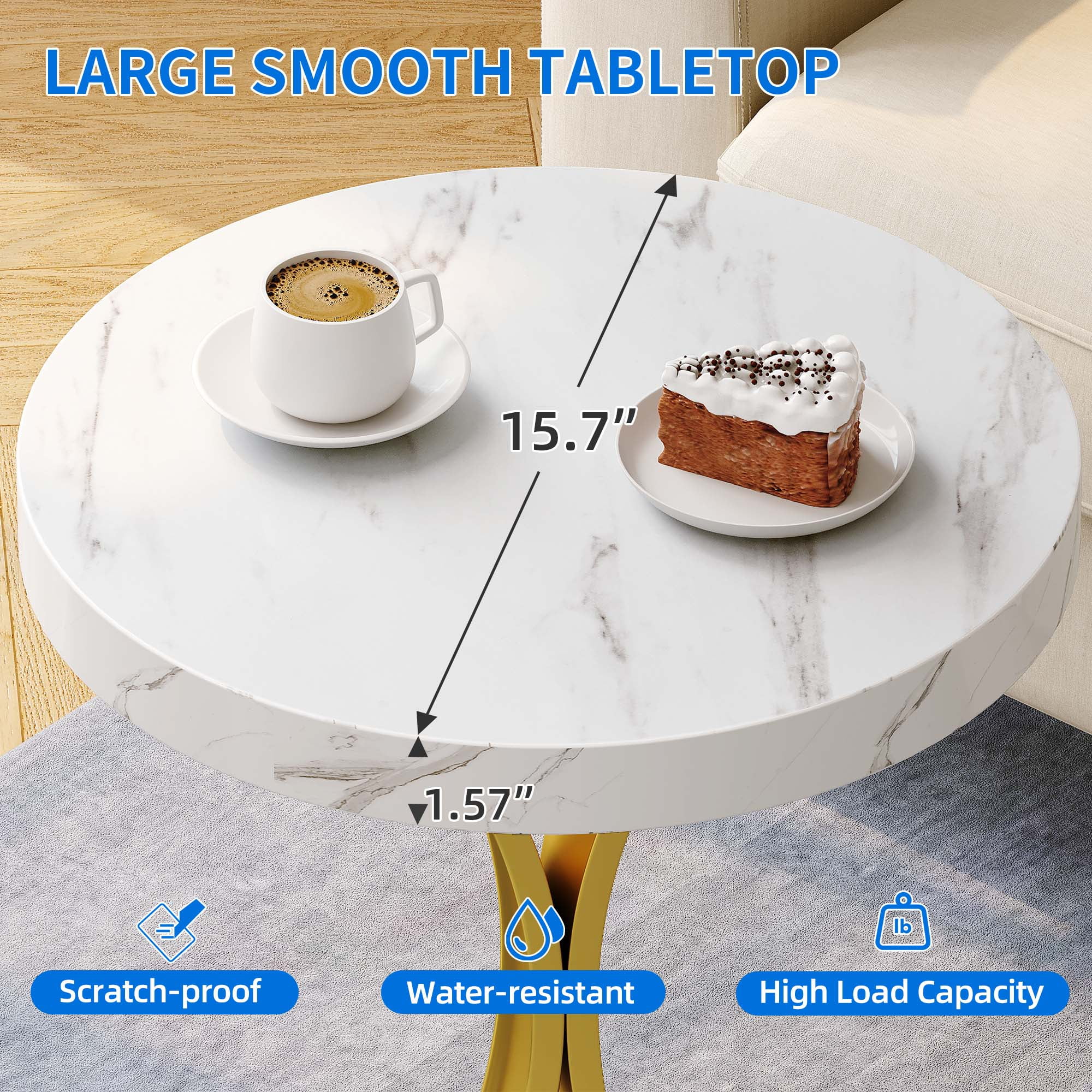 DEXTRUS Round End Tables, Modern Gold Round Side Table with Faux Marble Top and Gold Metal Frame, Faux Marble White