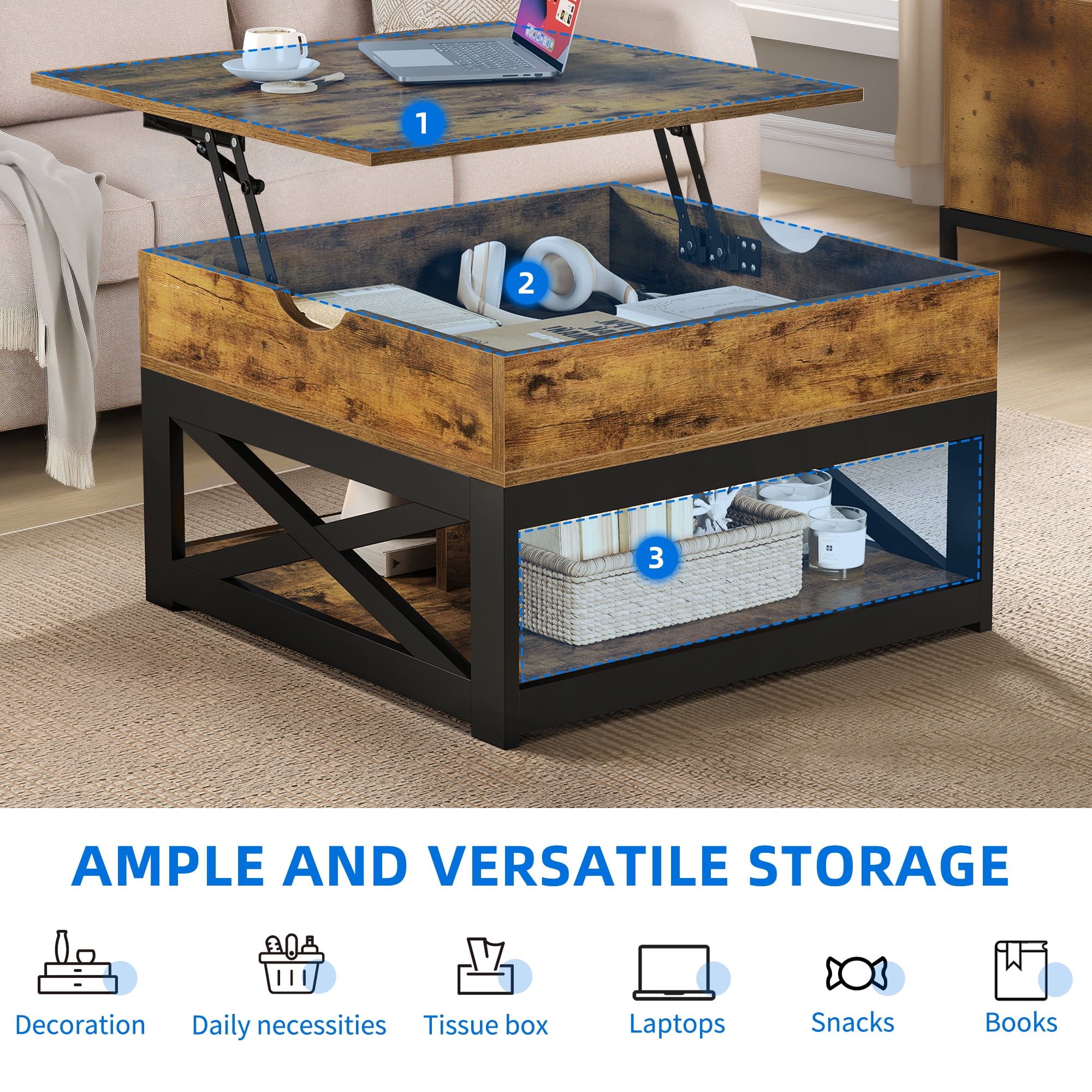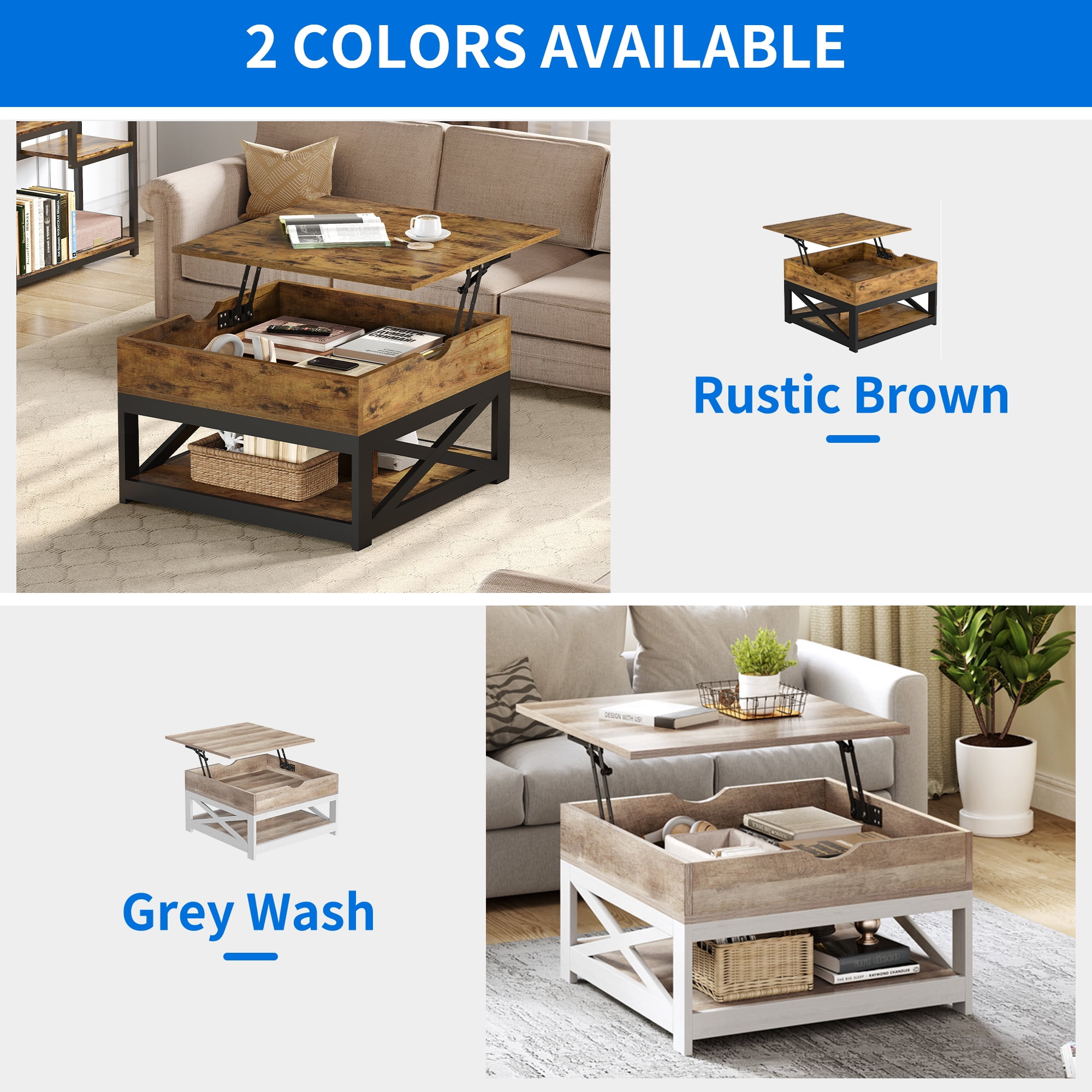 Dextrus Square Lift Top Coffee Table w/ Hidden Storage Farmhouse Center Cocktail Table for Living Room, Rustic Brown
