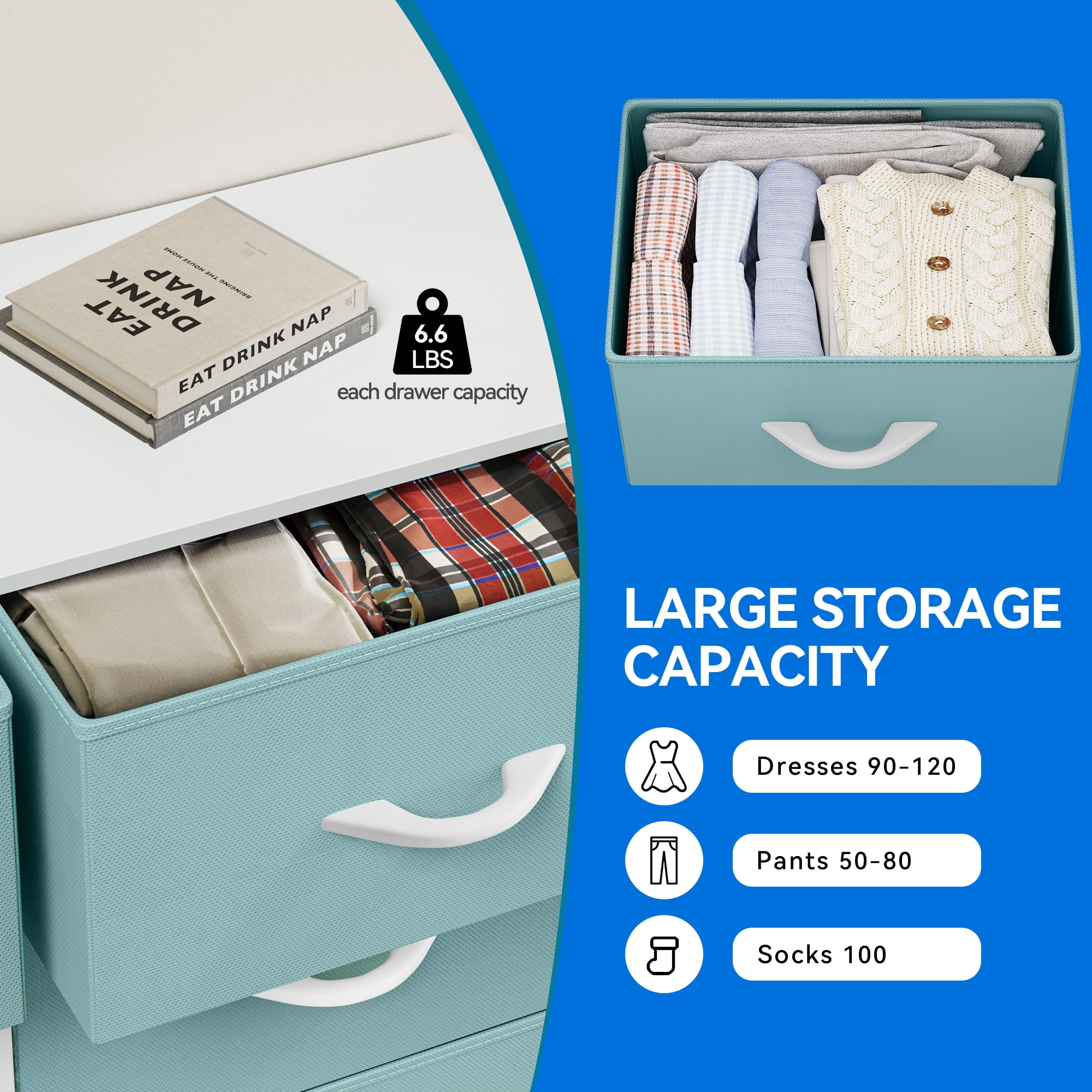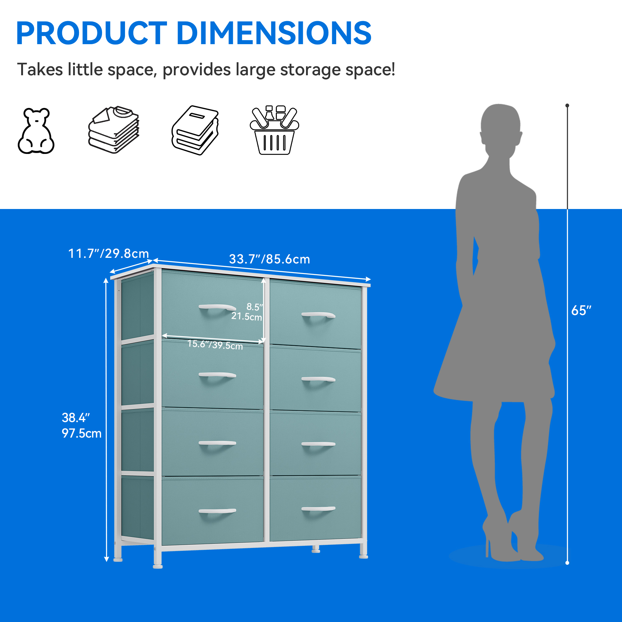 Dextrus Fabric Dresser for , Storage Dresser with 8 Drawers, Black Dresser & Chest of Drawers, Storage Drawer Organizer for Closet, , Living Room(Green)