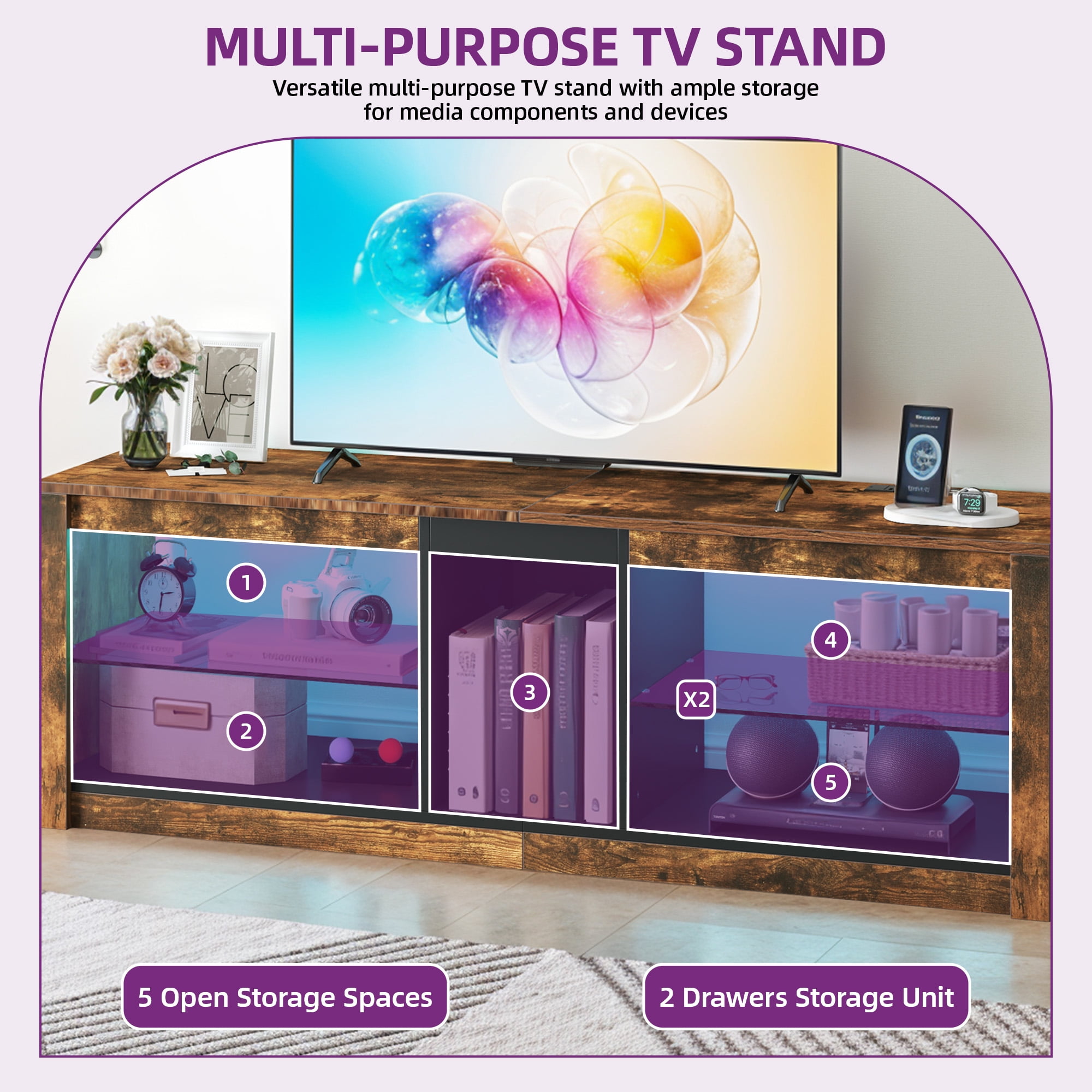 Dextrus TV Stand with LED Ambient Lights, Modern TV Stand with Open Shelf Storage Cabinet for 62 inch TV, Brown