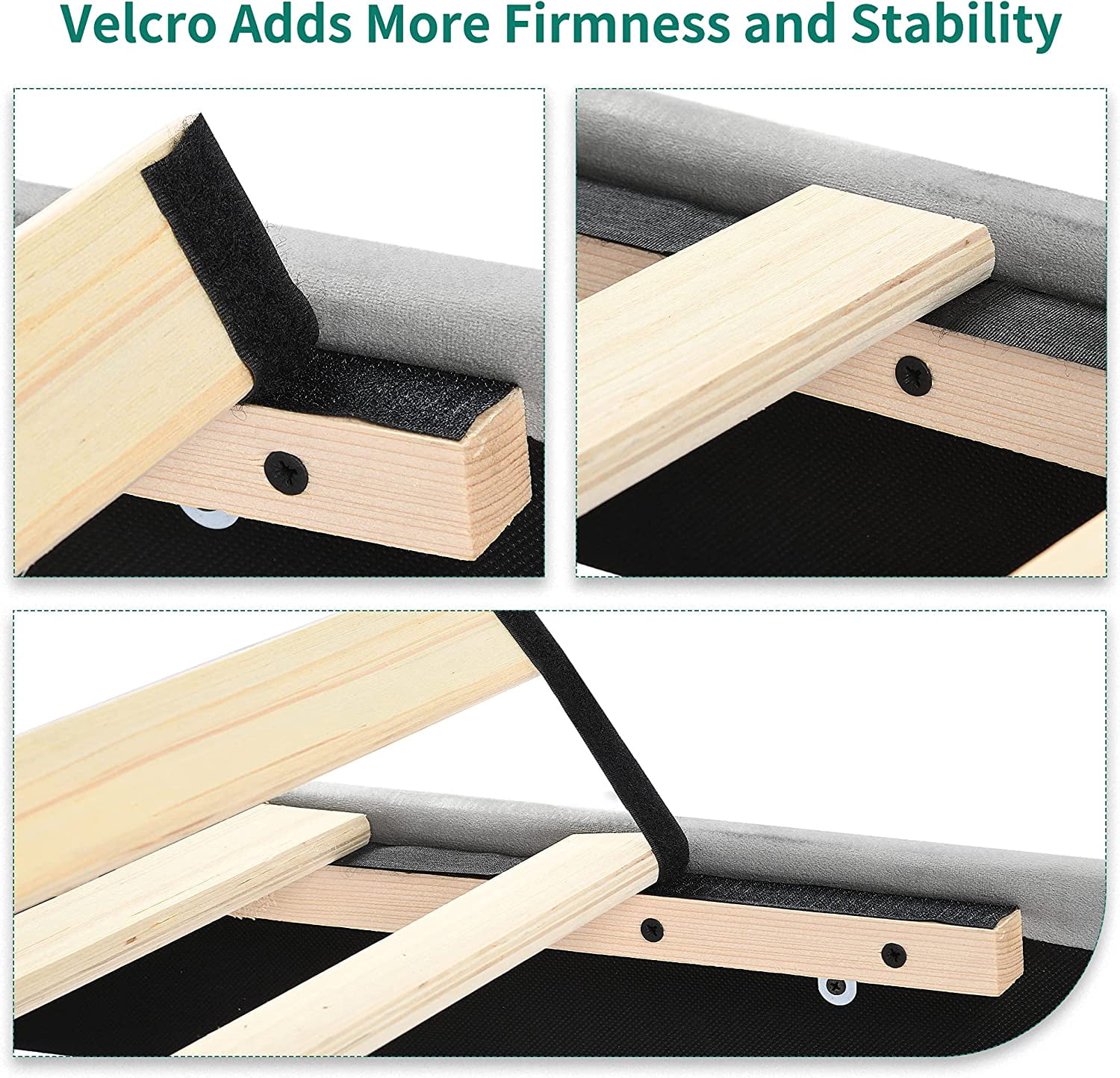 EASY ASSEMBLY- To avoid missing carton, it is smartly packaged in one carton for moving around easily. It may take you 30 mins to finish the whole assembling under the help of users’ manual. STURDY AND STABLE CONSTRUCTION- Features a thick & sturdy metal frame constructed from premium iron to provide product with a longer lifespan; The well-selected wood is sturdy and supports mattress stably. The bed frame can support up to 400 lbs(Full size)/ 500lbs(Queen Size). HUMANIZED DETAIL- The triangular structure near the headboard and the supportive legs in the center improve overall stability; Middle bed legs are upgraded, anti-scratch foot pads keep the floor or mats free from harm. Stickers on slats help to reduce noise. NO BOX SPRING NEEDED- Easy to assemble due to the minimalist design; Directly place a mattress pad on the frame, no box spring required. WINGBACK VELVET HEADBOARD- Has a lint-surfaced with rectangular tufting for a classy look. The wingback design conforms to human body and offers you more comfort when relax. Please follow the instructions, and professional installation recommended.