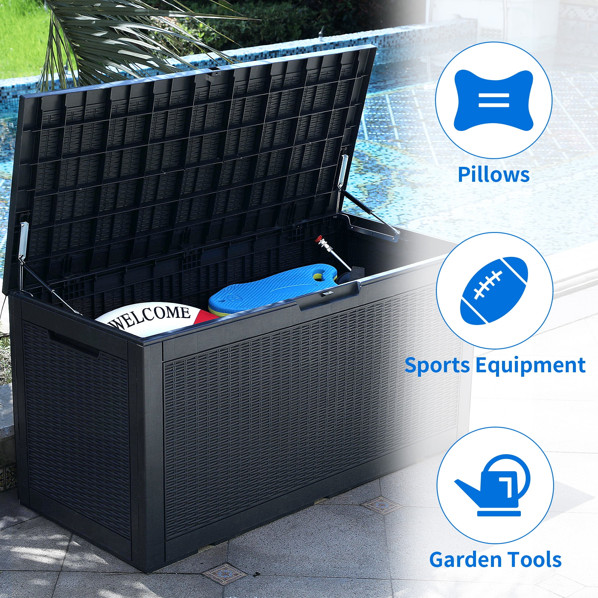 DEXTRUS Weatherproof Deck Box Patio Garden Pool Storage Organizer Large Outdoor Container, Black