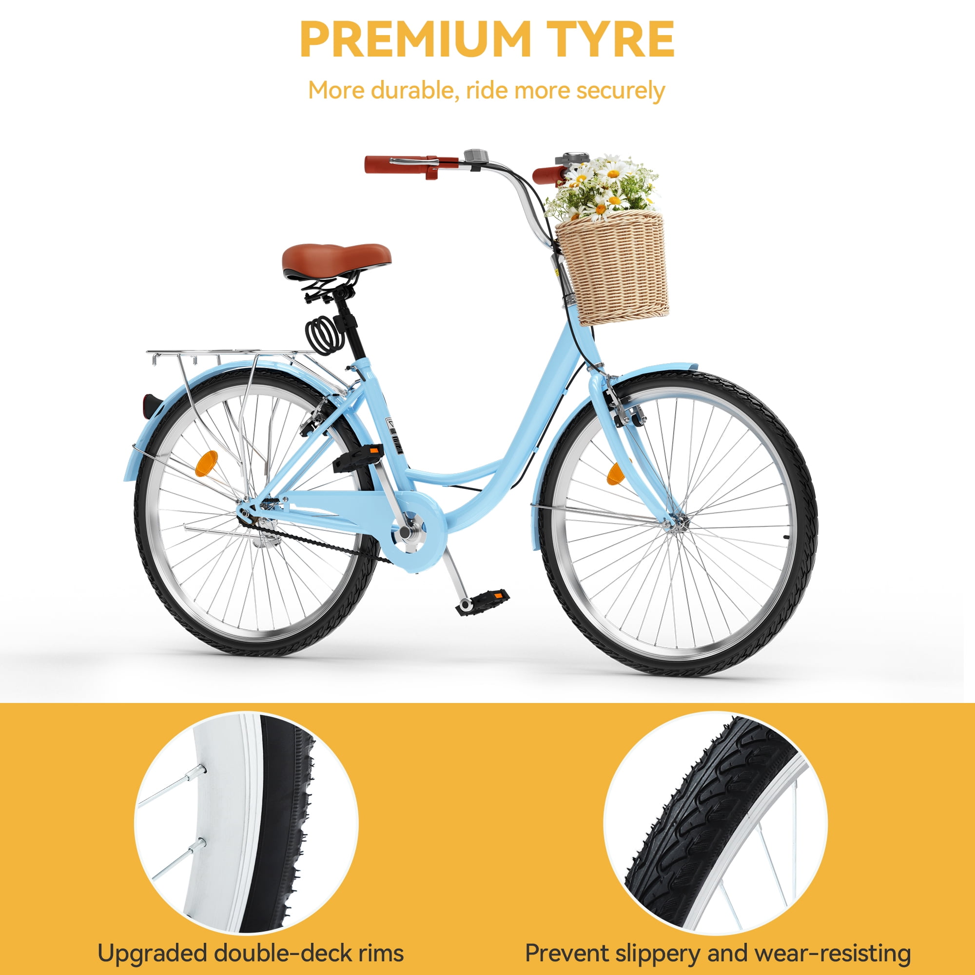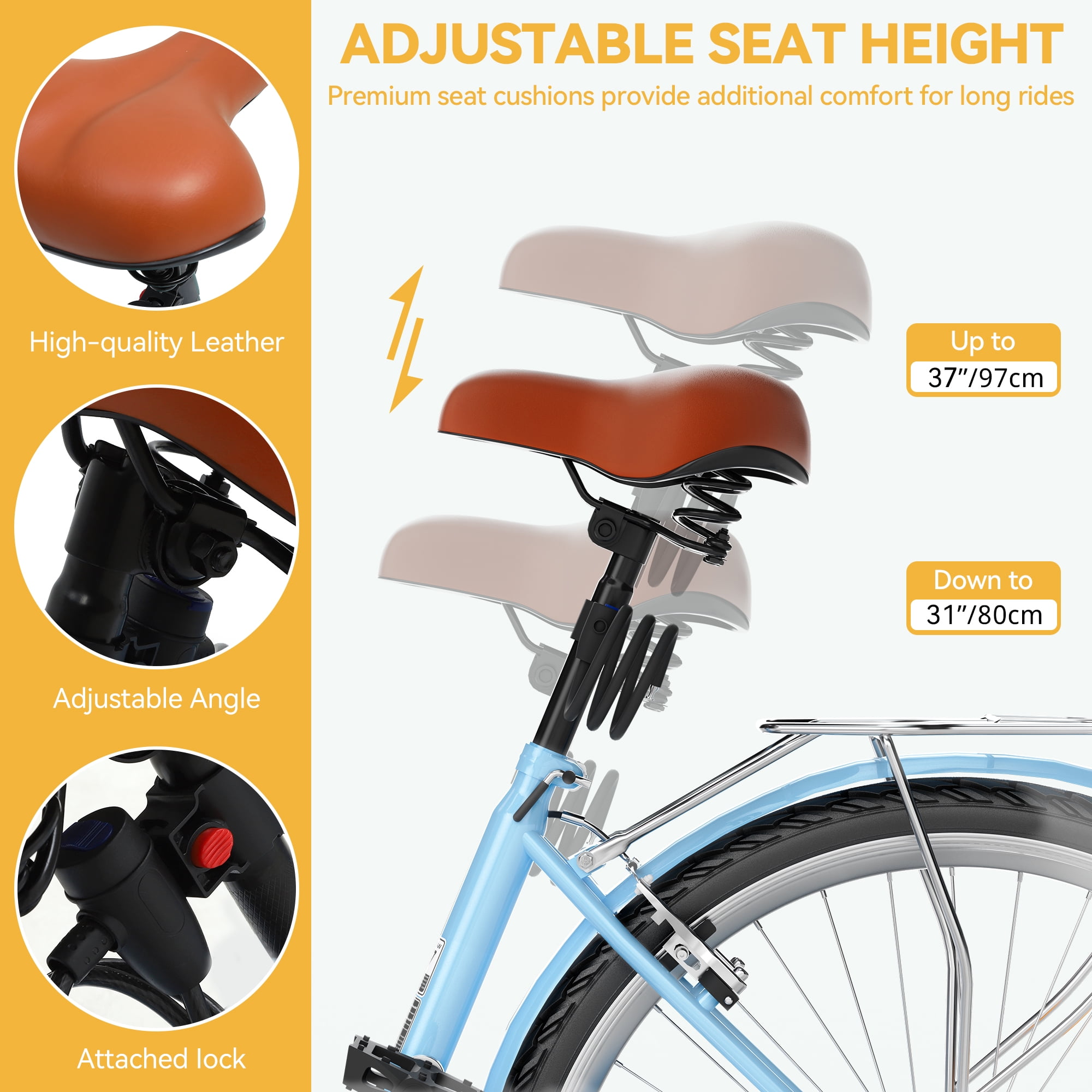 Dextrus Womens 24 Inch Adjustable Beach Cruiser Bikes Timeless Classic Beach Cruiser Bike Experience the perfect blend of style and simplicity with a sleek and curved frame design that exudes elegance Ultimate Comfort on the Road Enjoy a relaxed riding position and effortless cruising thanks to a design focused on rider comfort Personalized Riding Experience Tailor your ride with an adjustable seat height ensuring maximum comfort for riders of all levels Effortless Single Speed Riding Designed for casual rides on even terrain the single speed configuration offers a smooth and uncomplicated biking experience Enhanced Performance and Stability Equipped with premium tires and double layered rims the Beach Cruiser Bike delivers reliable performance and superior stability for a comfortable journey