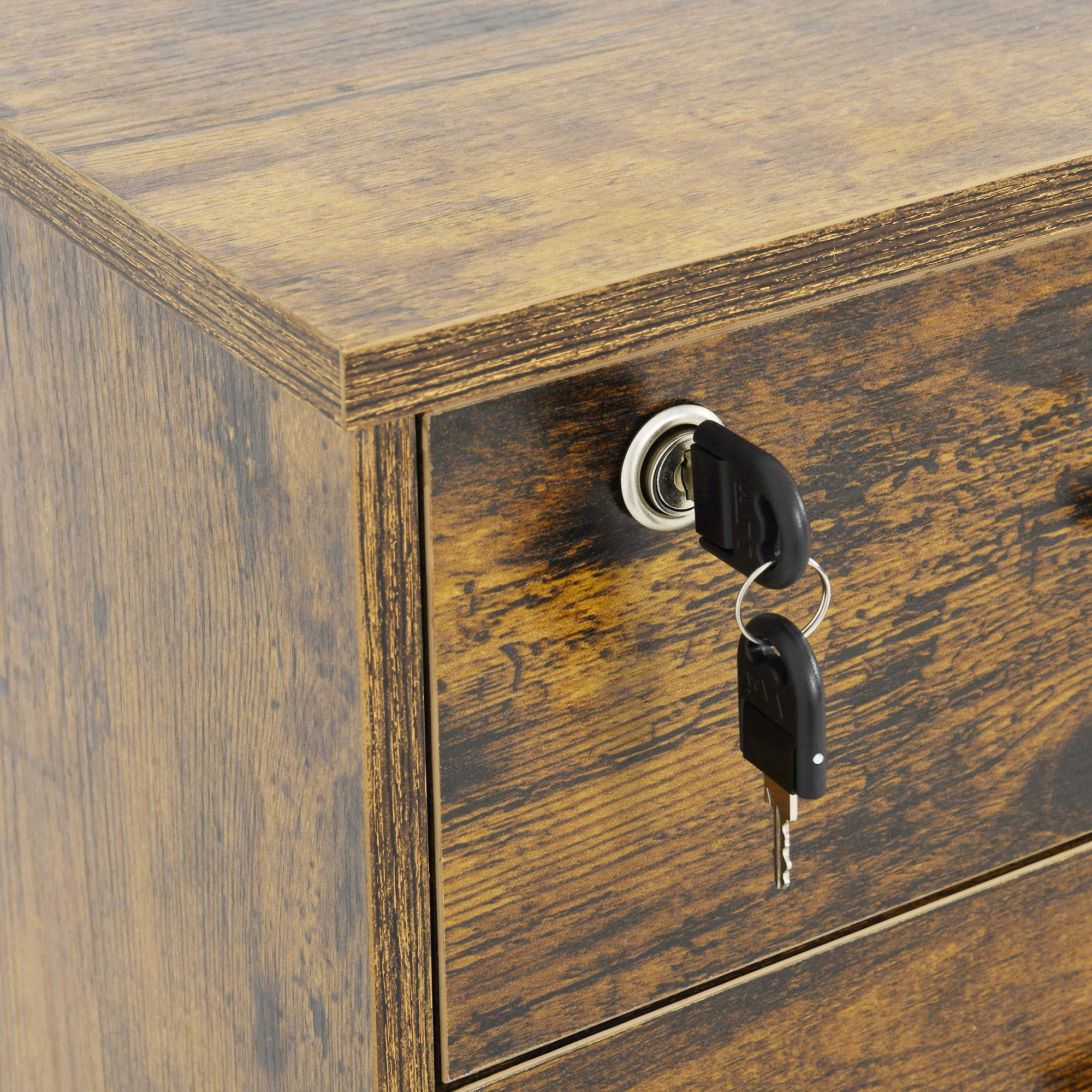 Dextrus Wood File Cabinet with Charging Station and Lock, Mobile Lateral Filing Cabinet Printer Stand for Home Office, Brown