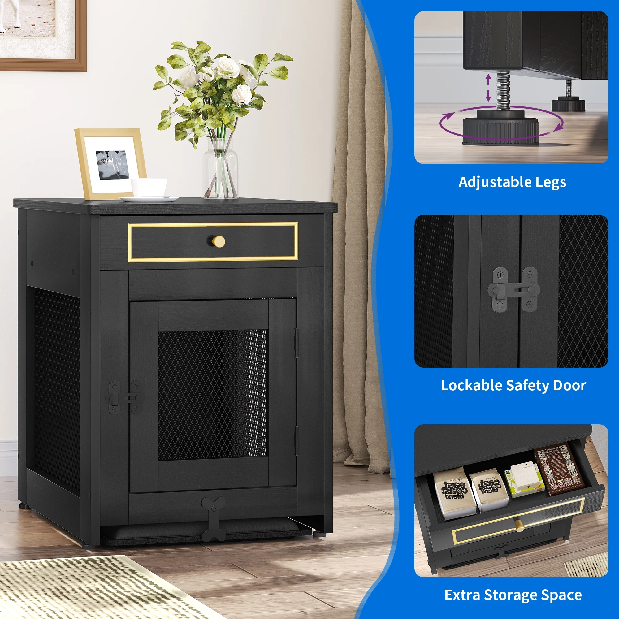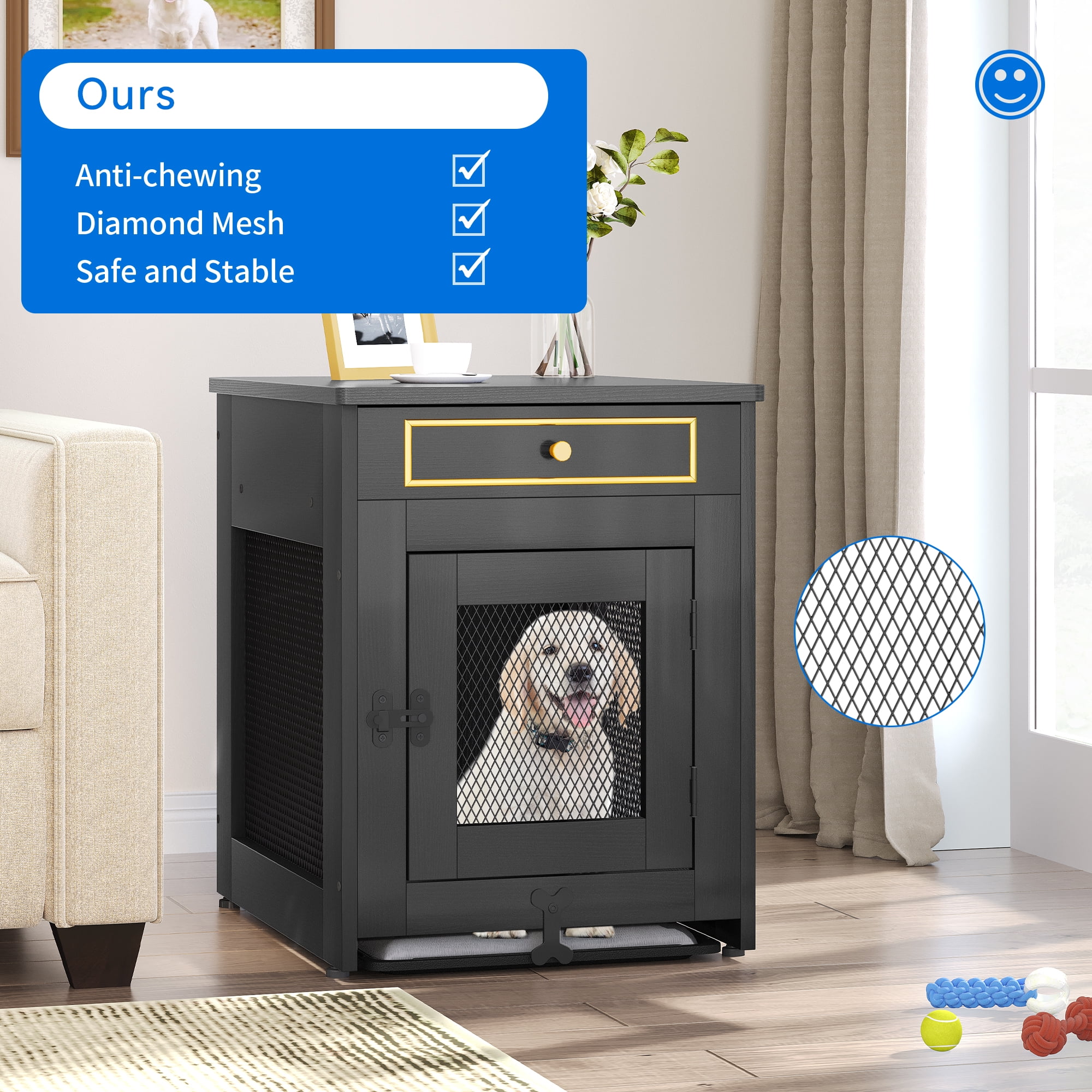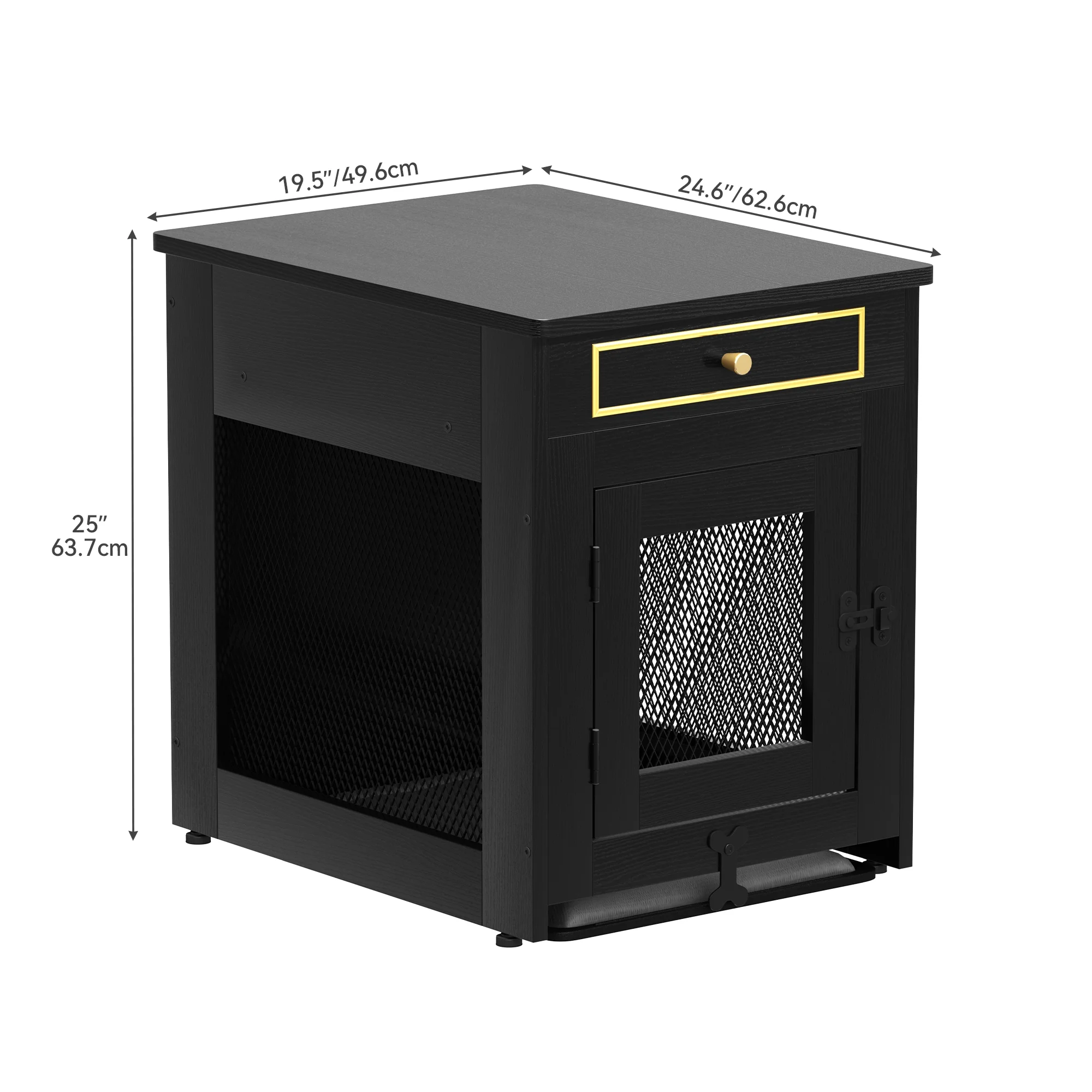 Dextrus Wooden Dog Kennel End Table , Dog Crate Furniture, Drawer for Small Dogs Under 25 lbs Indoor Use, Black