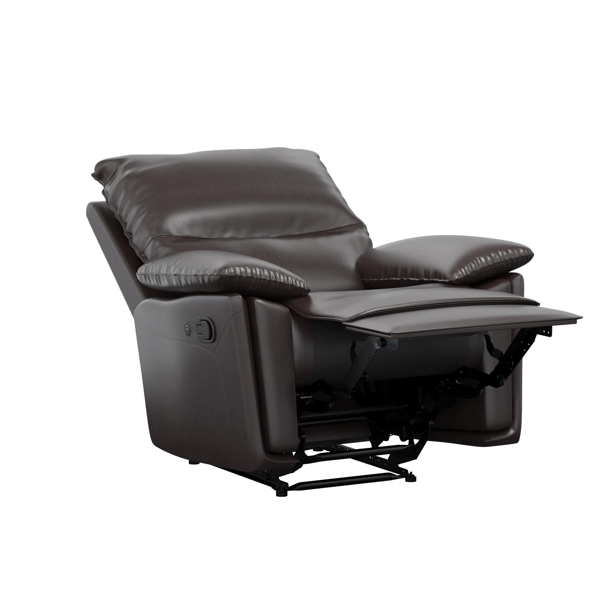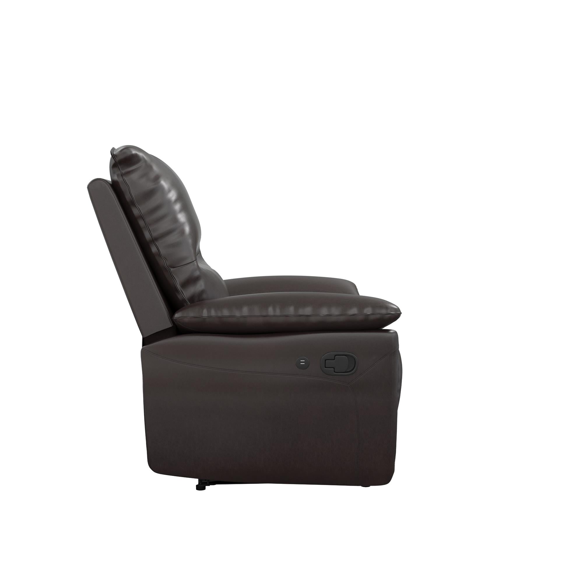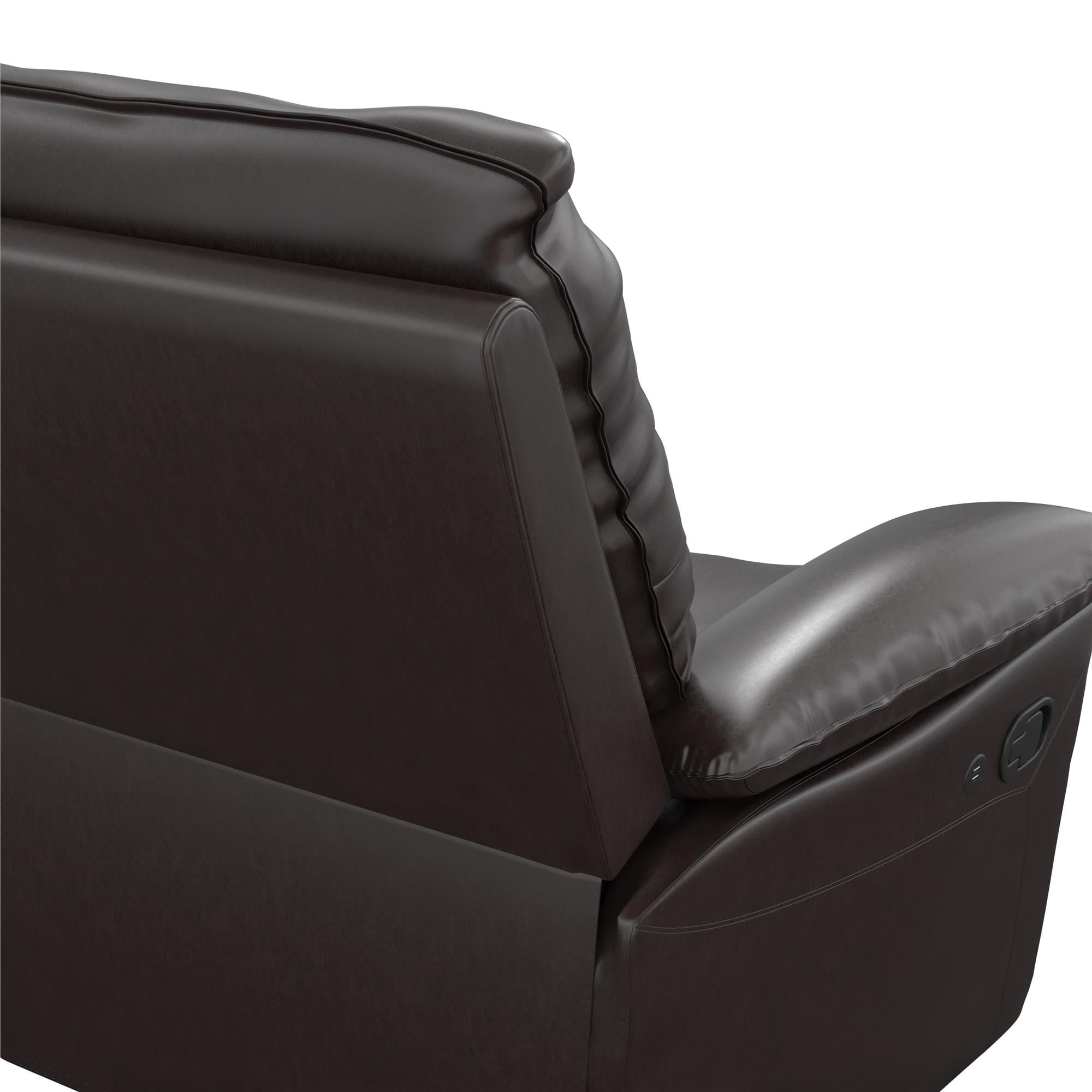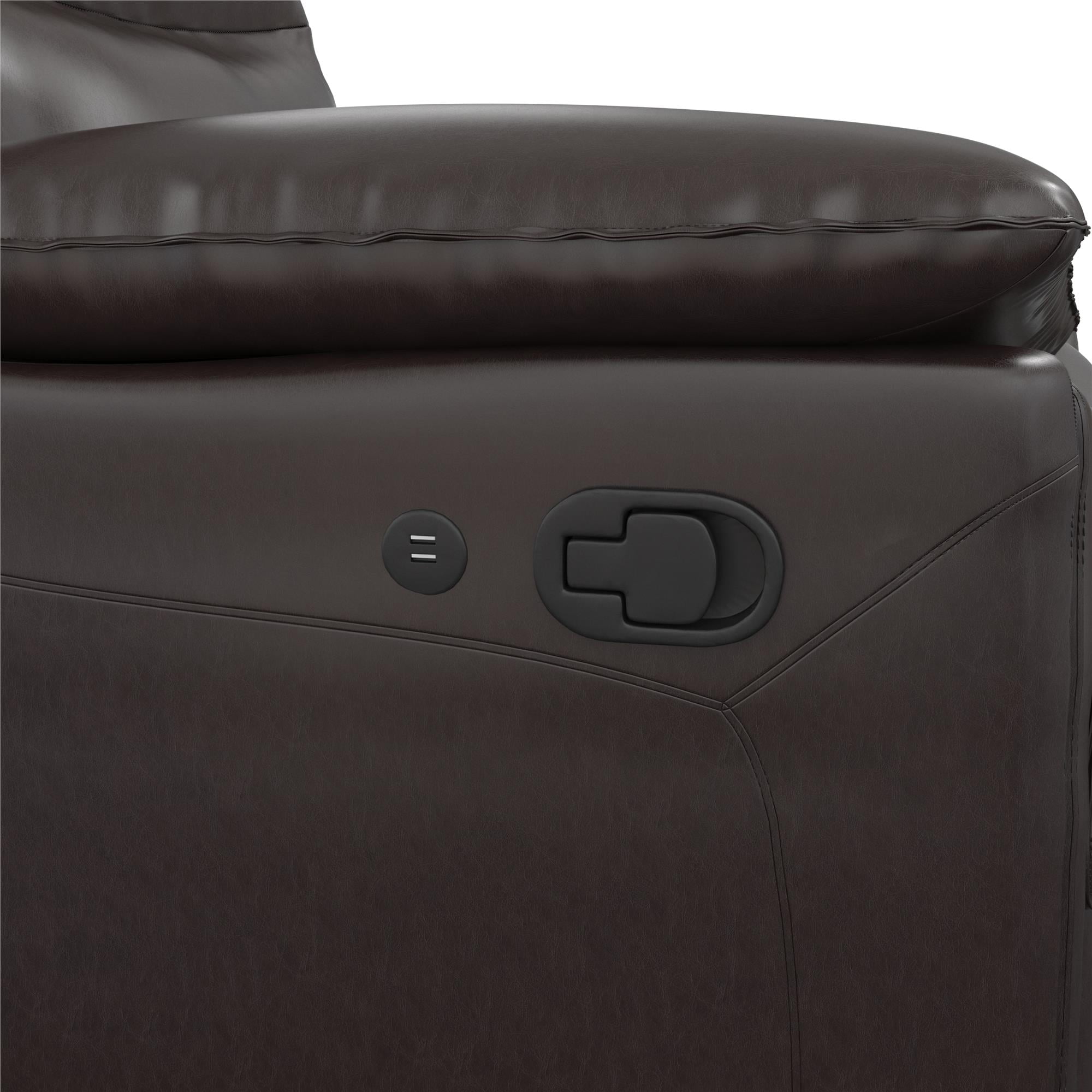 DHP Beau Recliner with Dual USB Port, Faux Leather, Dark Brown