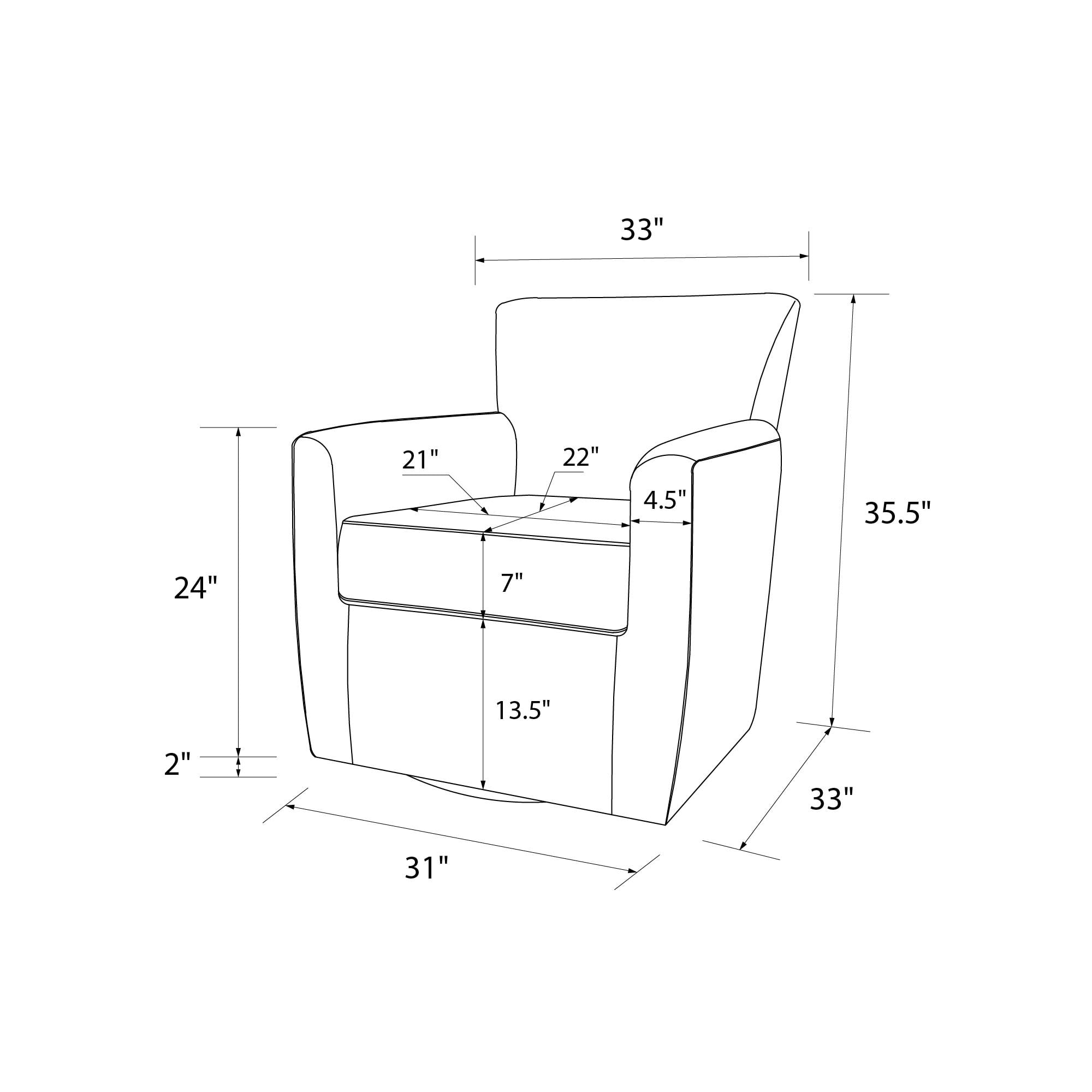 Contemporary Curves: Our swivel accent chair displays soft contours with a tastefully curved back, padded armrests, and piped trim edge, making it the perfect small accent chair for a living room, bedroom, and home office to boost your armchair style cred Super Comfortable Upholstery: Soft textured fabric material and a plush foam filled seat cushion provide a relaxing ergonomic seating experience, creating an upholstered swivel chair with arms that fits into a multitude of decors for modern chair comfort Versatile 360-Degree Swivel: The barrel chair swivels 360 degrees to let you easily shift from front to back and side to side, delivering a clean, compact, and cozy sitting solution that is great for small spaces and apartments without ever looking petite Low Maintenance: Equipped with a removable seat cushion and spot cleanable fabric for easy tidying, and made with a sturdy metal base, a wood frame body, and a steel spring suspension system for sag-free support, our leisure and lounge chair offers ease