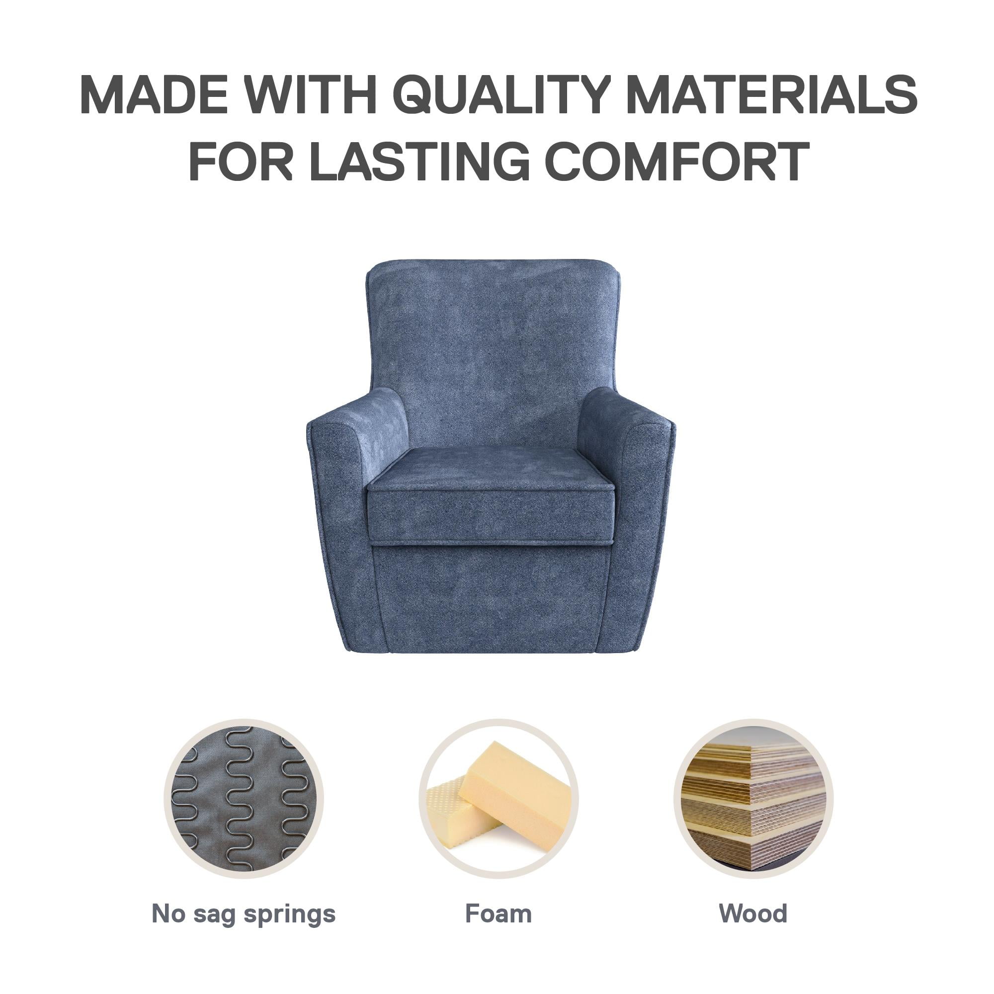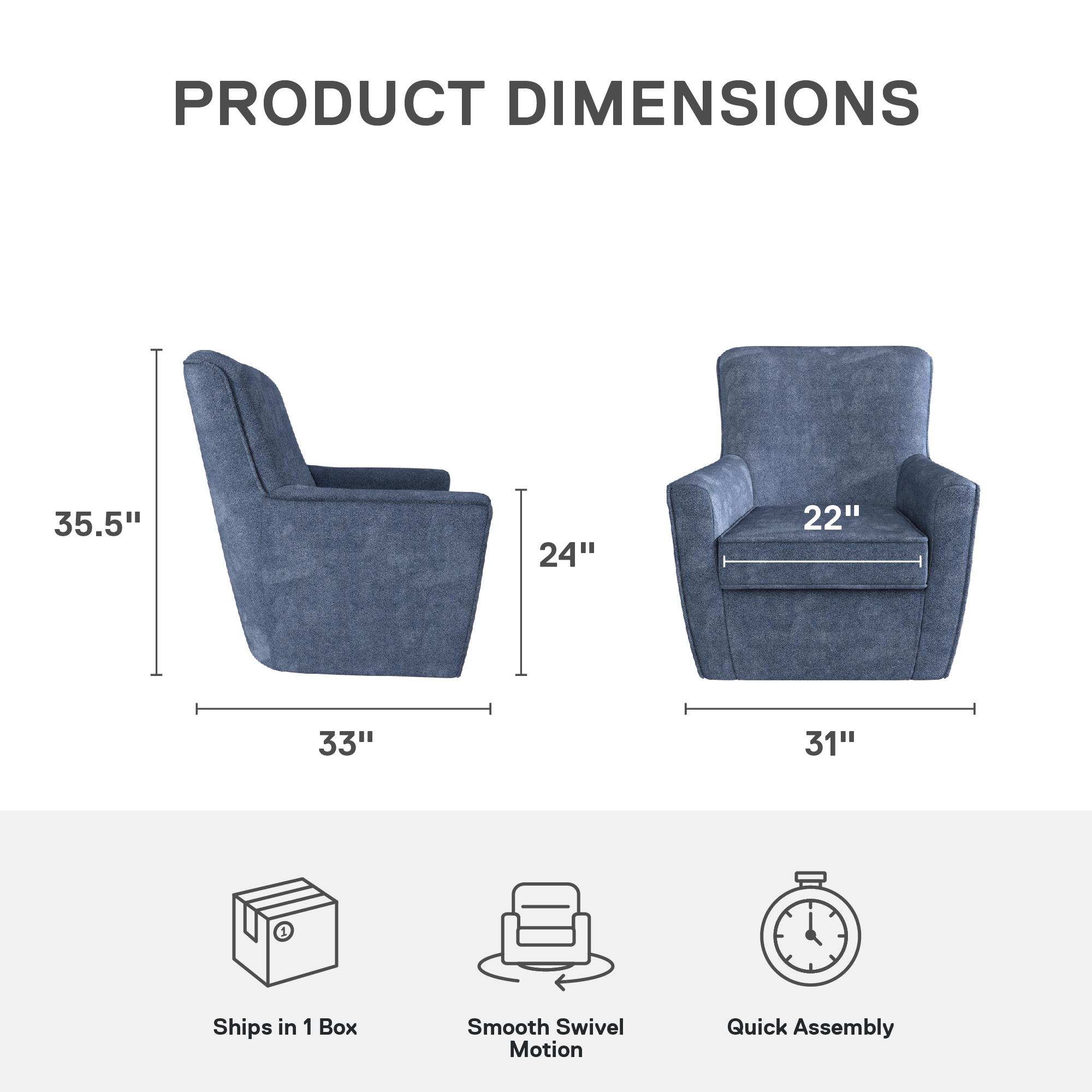 It is time to check off the 4 Cs of style: curvy, casual, contemporary, and comfortable. Our classic DHP Binx Swivel Accent Chair does just that and fills your home with modern chair design, brimming with decor-boosting details like a beautifully curved back and soft silhouette covered in smooth textured fabric. The perfect small accent chair for living room comfort, our upholstered swivel chair with arms is a small space wonder that looks great in the bedroom or office. The compact armchair has a 360-degree swivel function for seamless side-to-side and front-to-back movement, offering you versatile space-saving seating. The high-density foam-padded armrests and removable seat cushion deliver ergonomic relief just as the barrel chair’s strong metal base, wood frame, and steel spring foundation offer reliable stability. Needing only 15 minutes to put together, the lounge chair’s easy-to-spot clean material also ensures low maintenance, giving you the convenience that you deserve.