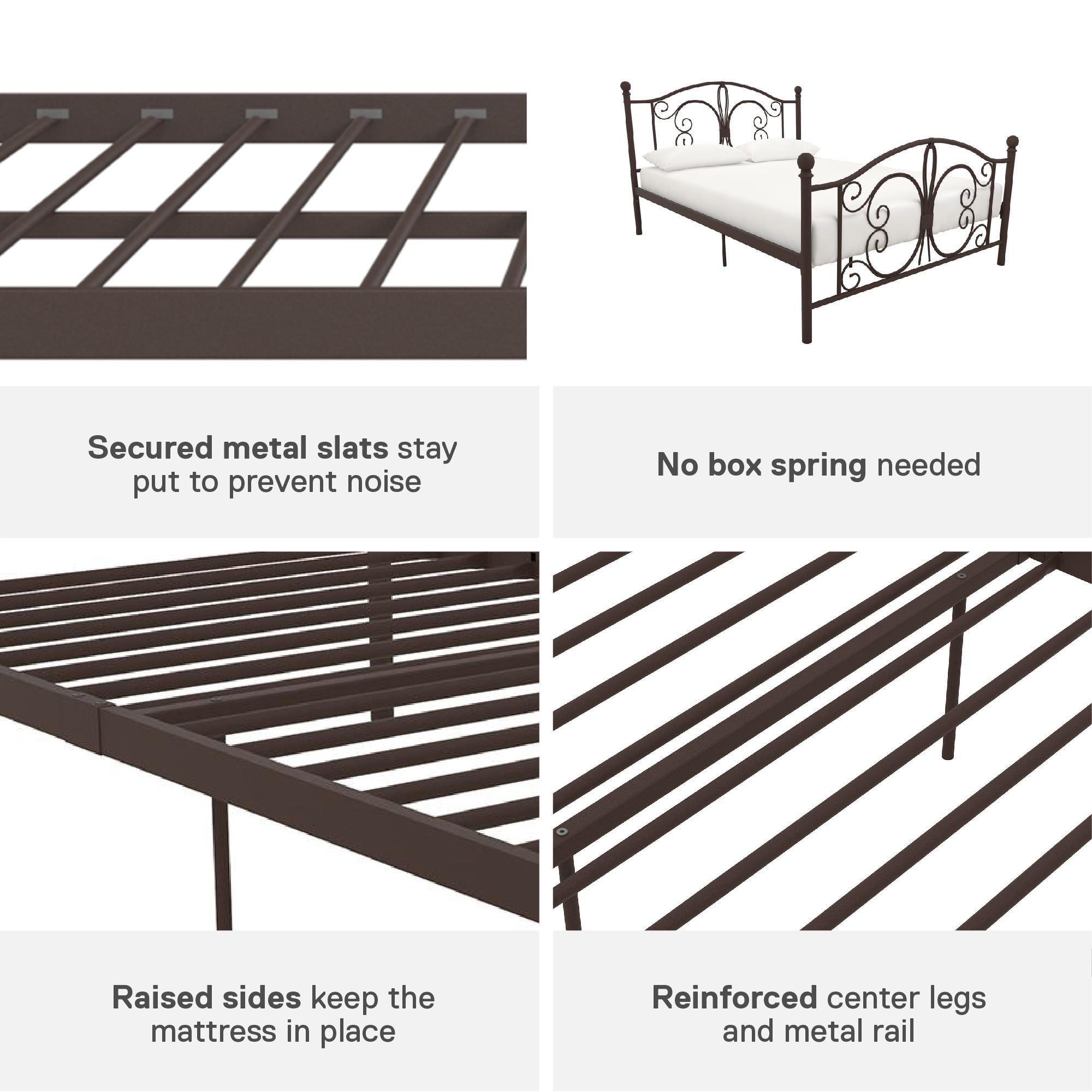 DHP Bombay Metal Platform Bed Frame with Headboard, Queen, Bronze