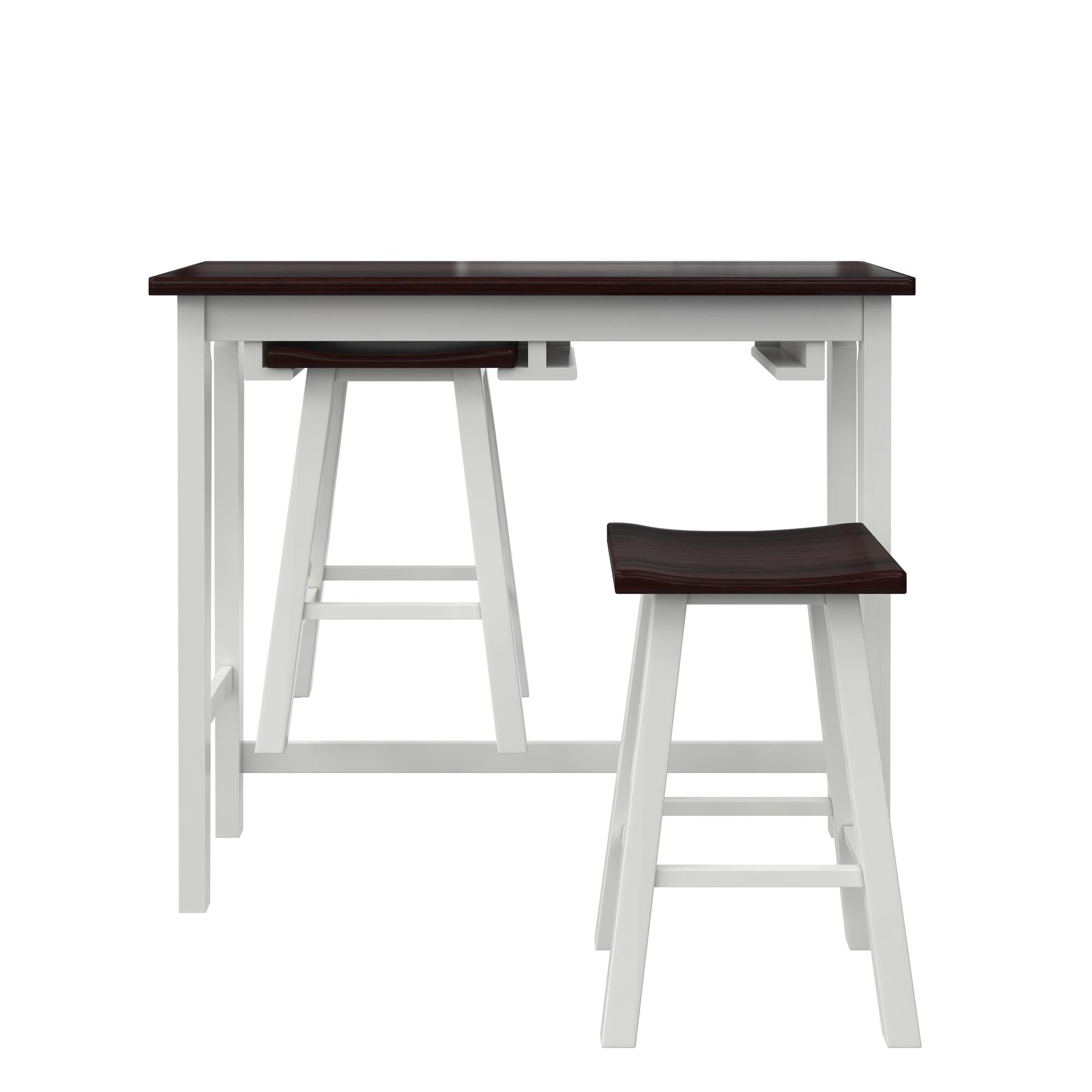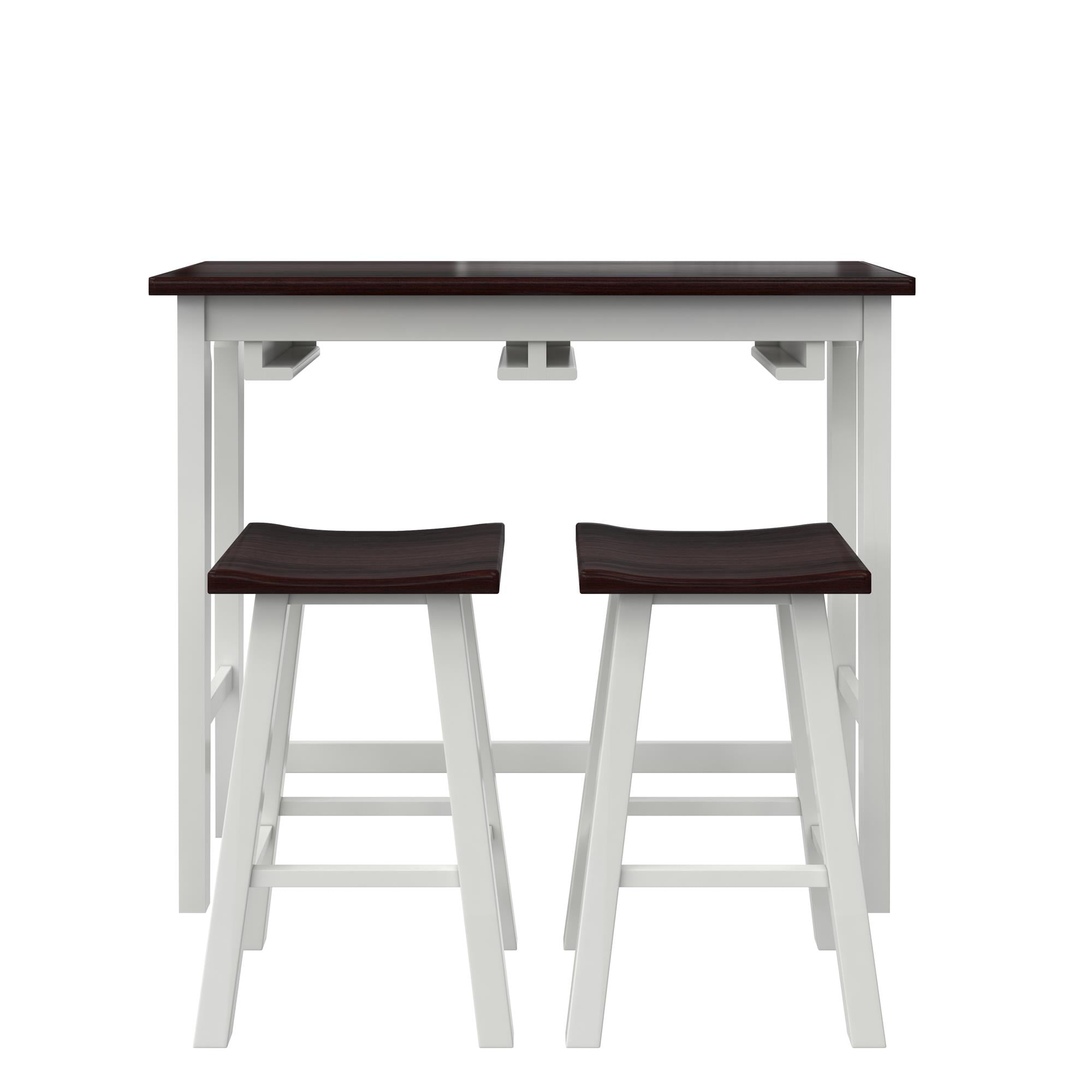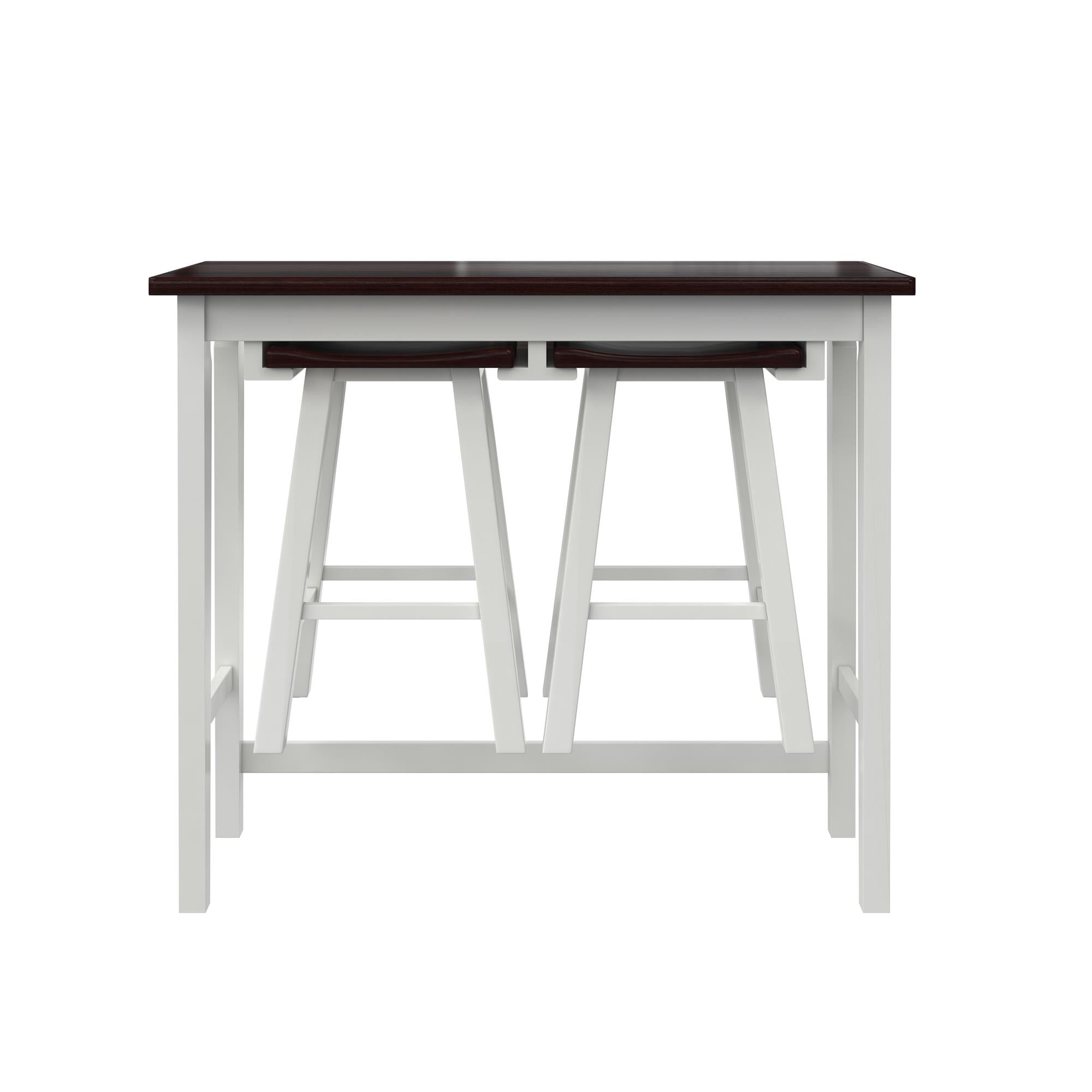 DHP Bryna 3 Piece Counter Height Table Pub Set with 2 Hanging Stools, White/Brown