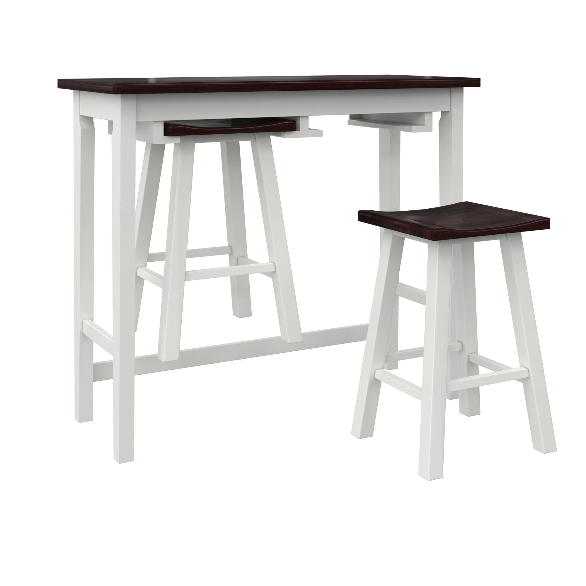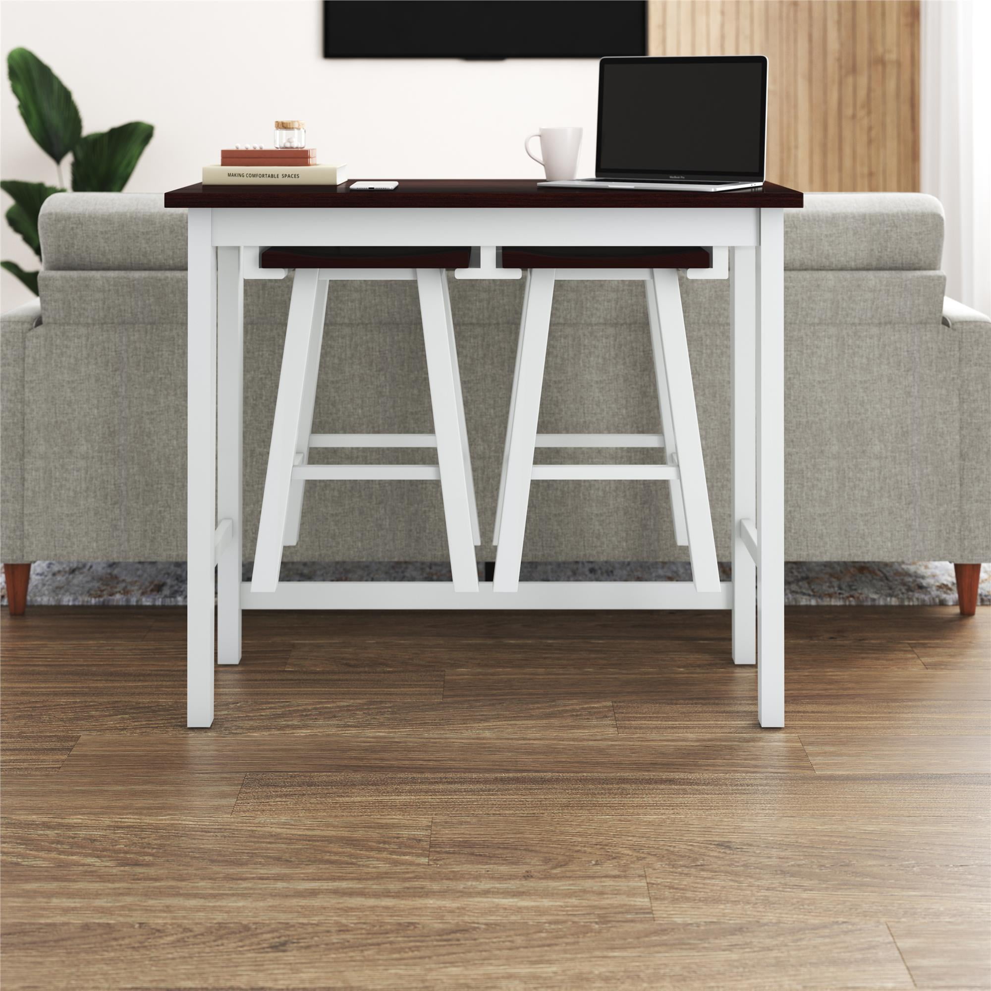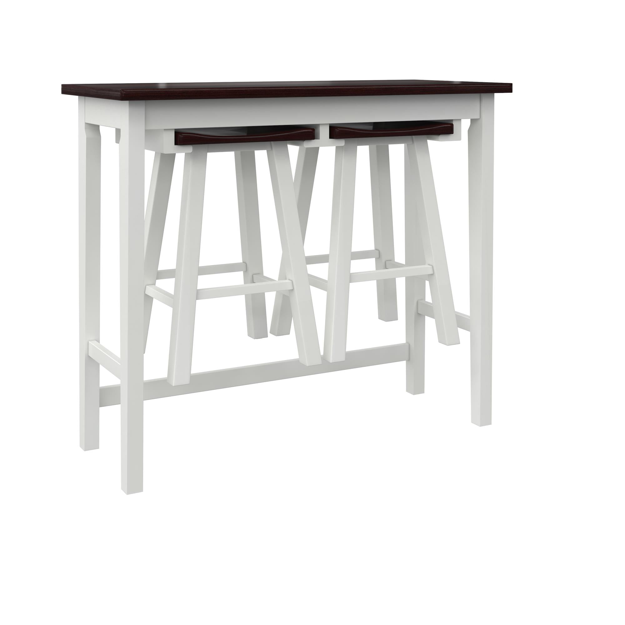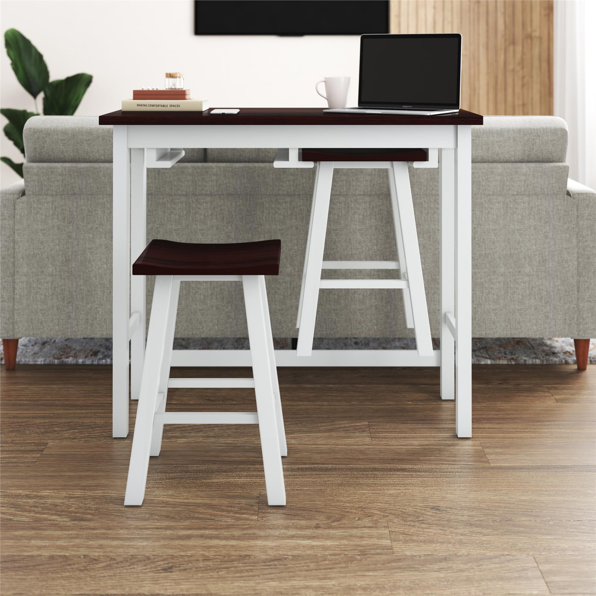 DHP Bryna 3 Piece Counter Height Table Pub Set with 2 Hanging Stools, White/Brown