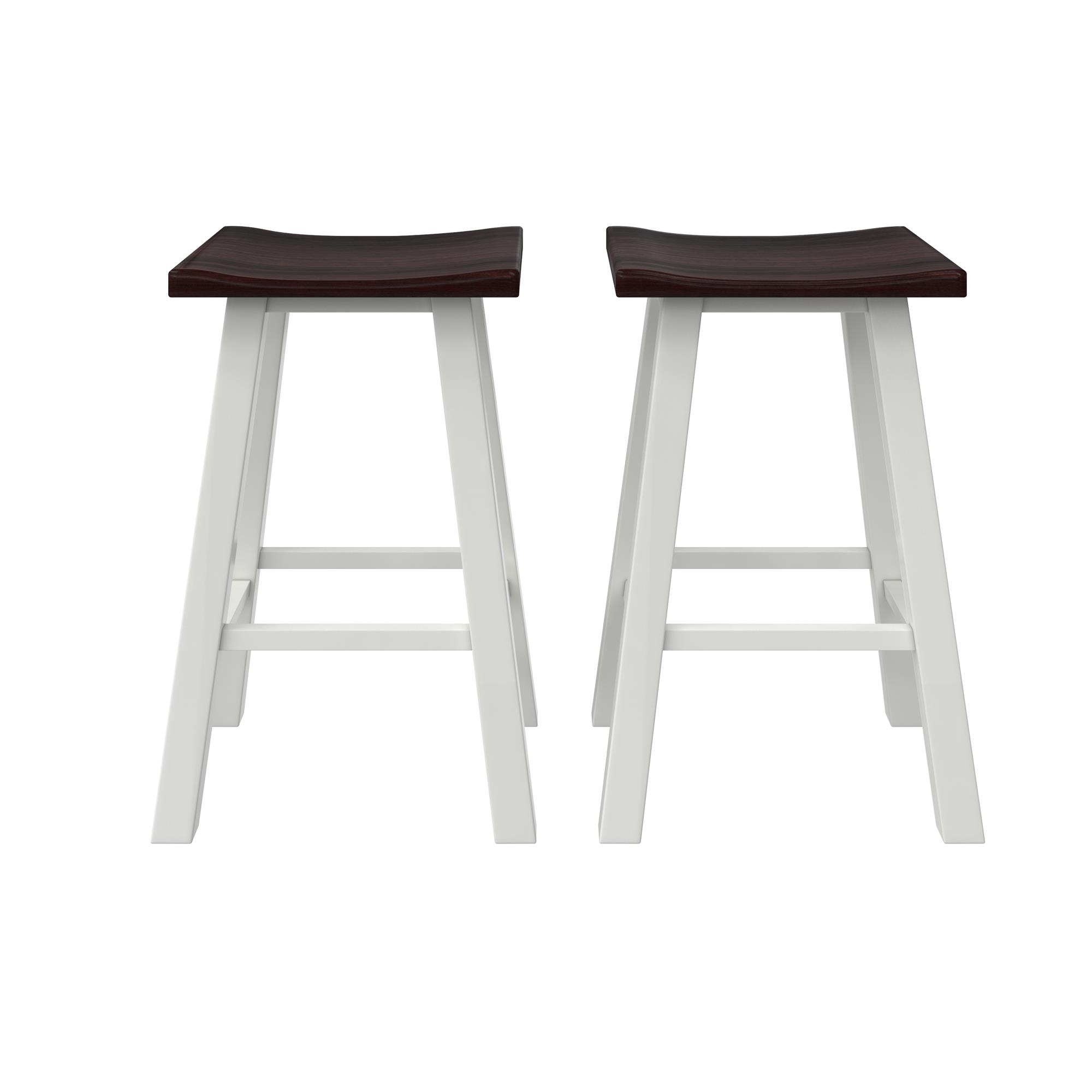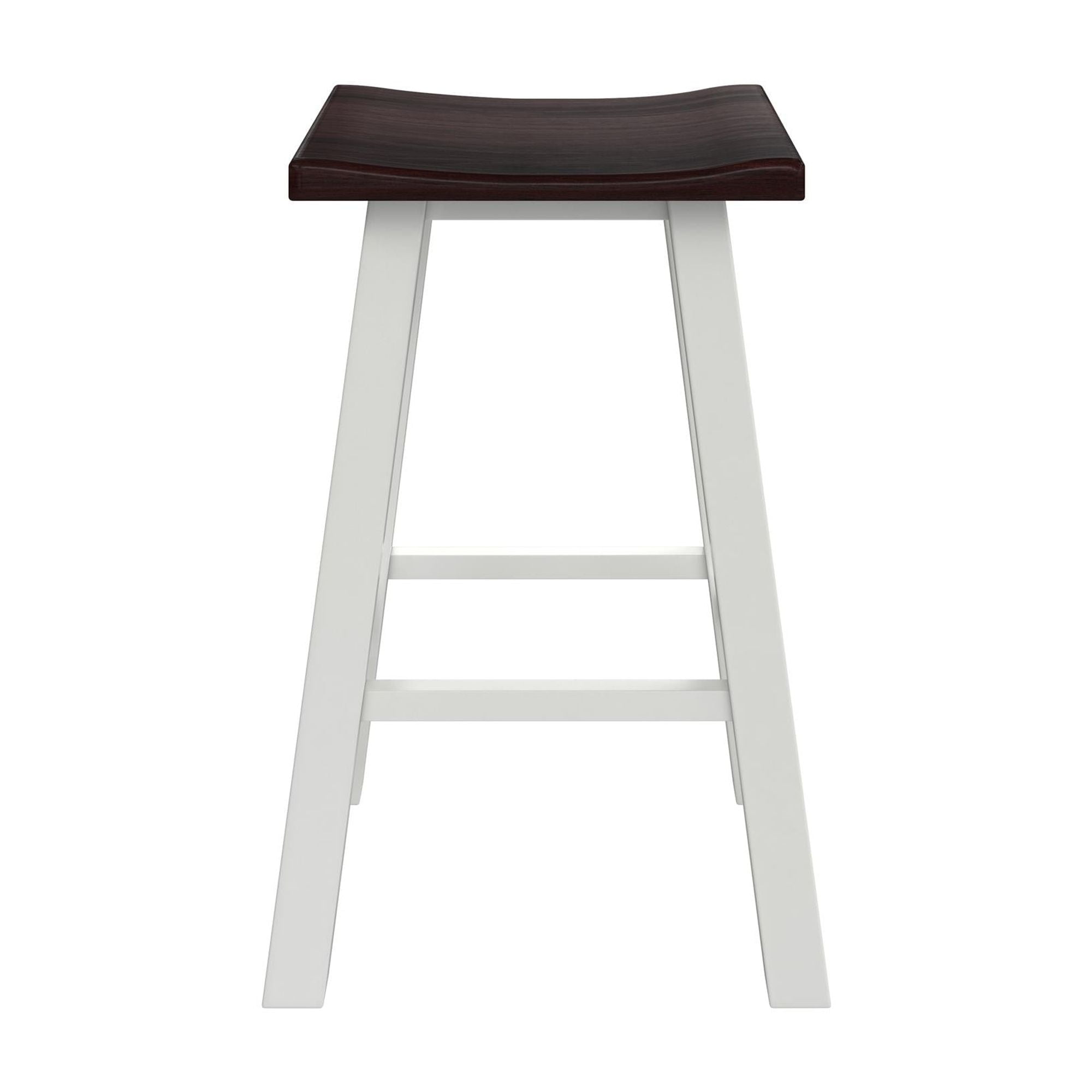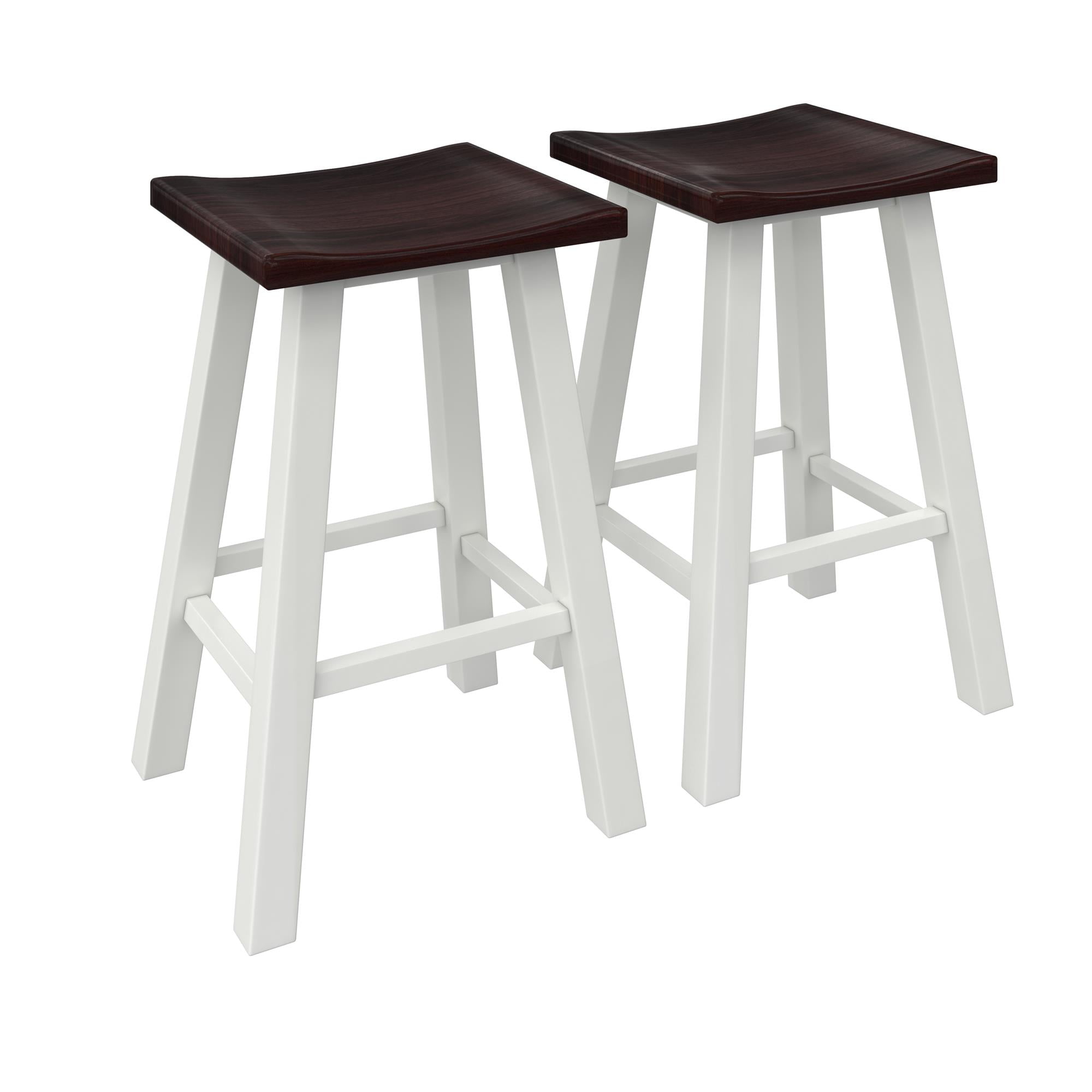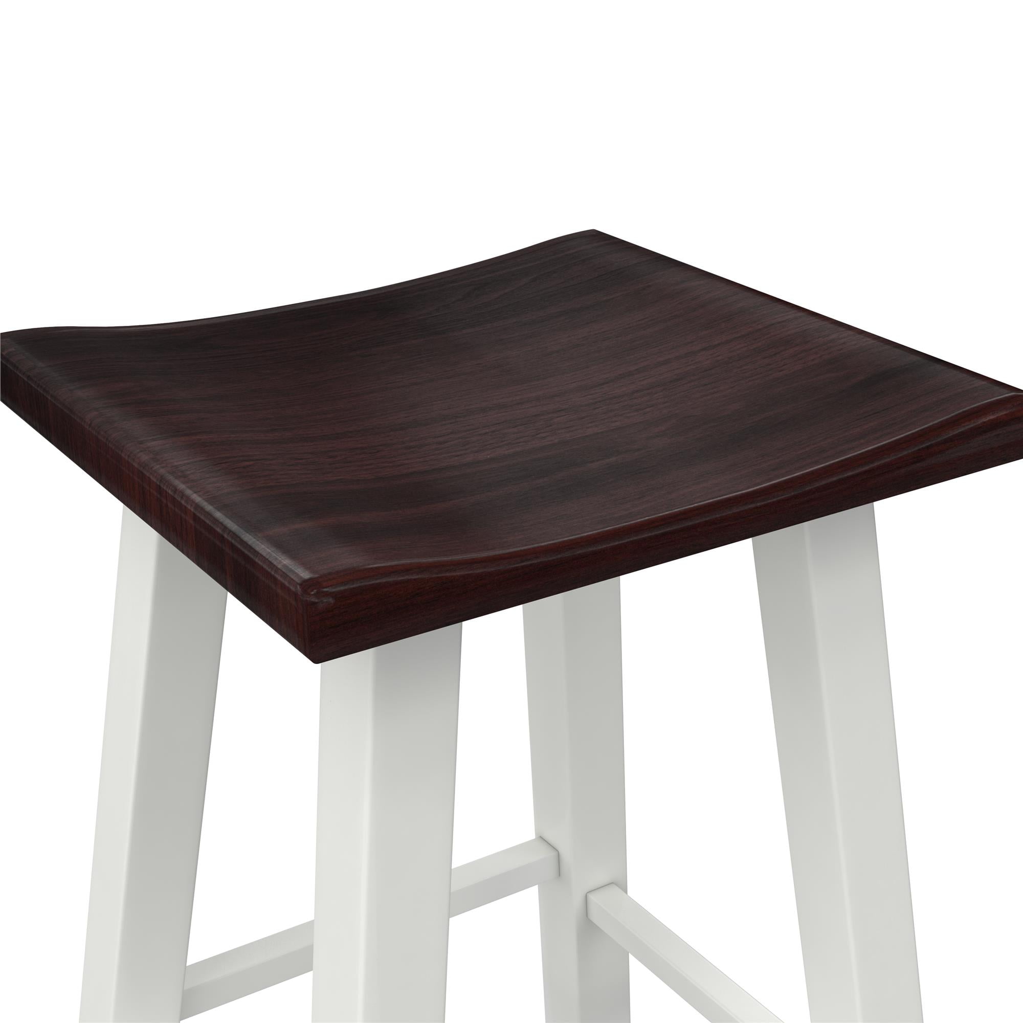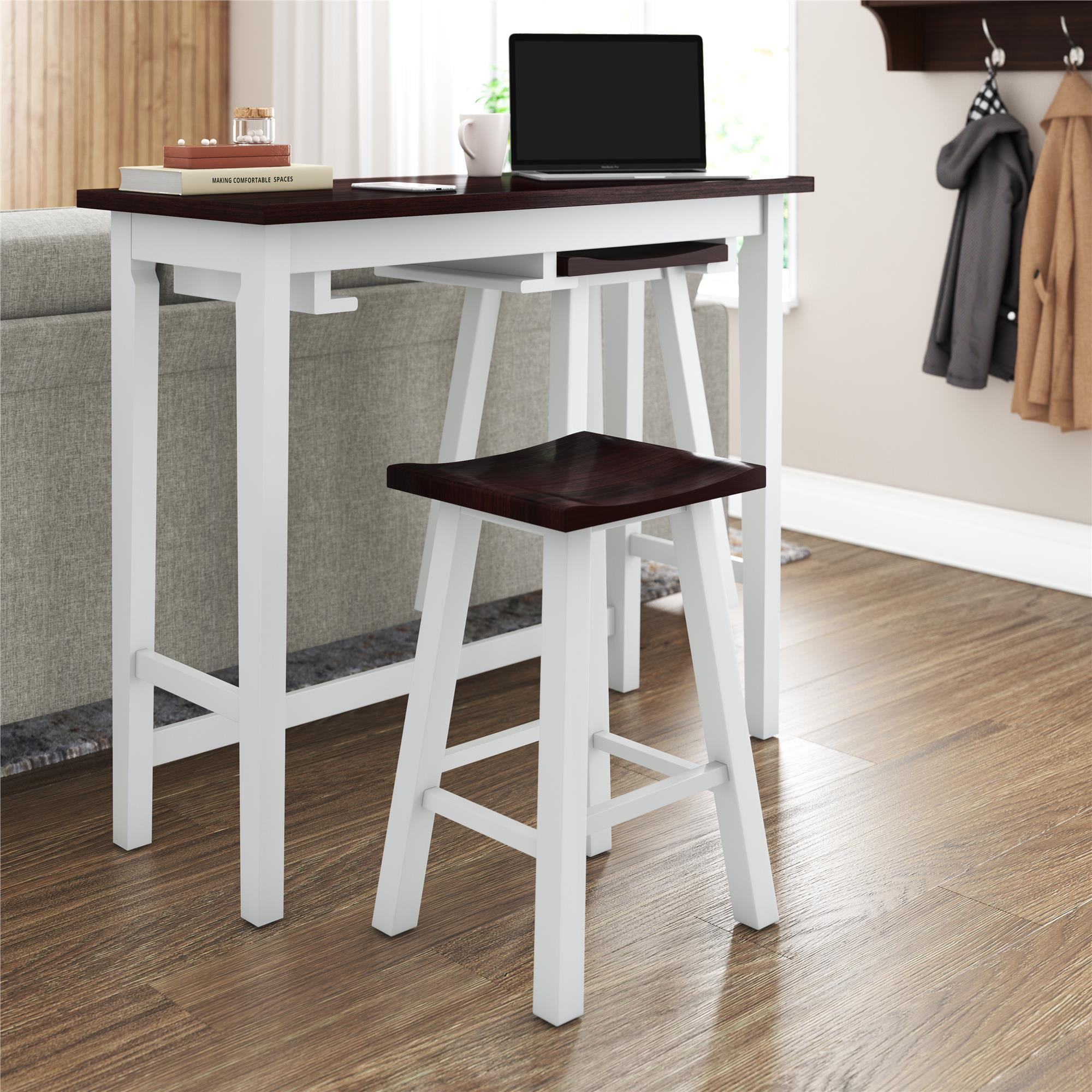 Space-Saving Layout: Our 3-piece pub dining set is perfect for small spaces, as the dining room set includes 1 contemporary counter-height pub table and a set of 2 backless style barstools that can be hung on hooks beneath the table when not in use Sturdy Wood Pub Set for 2: The Acacia wood seats and MDF tabletop have a rich walnut stain luster while the solid wood legs and table apron have a classic white contrast finish for modern appeal, ensuring overall quality, durability, and lasting use Cozy Saddle Bar Stools: The stools feature a curved design for added sitting comfort. a footrest for extra support, and floor gliders for scratch prevention and greater stability. They hold up to 250 lbs. each and can be easily stored below the table All-Around Usage: The small pub table and set of 2 chairs can be used in several settings, such as a dining room, kitchen, living room, or breakfast nook. The 3-piece bar table set is also ideal for tight basements to expand seating for entertaining