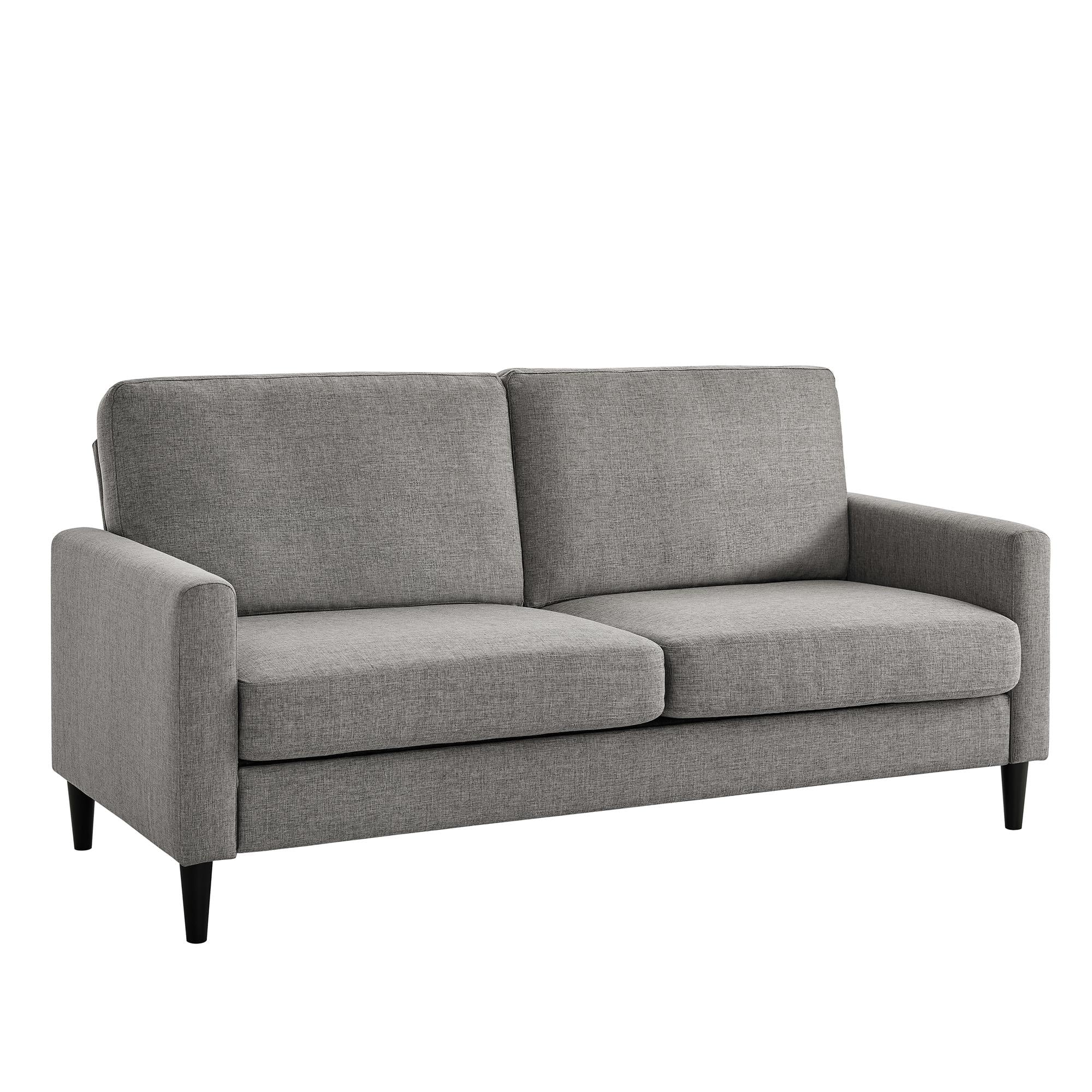Contemporary design sofa couch designed with a simple silhouette design and sturdy legs. Features a sinuous spring foundation that promises long-lasting support and durability. Includes pocket coil seat cushions that provides optimal comfort and support. Upholstered in a soft gray linen-look fabric that is easy on the eyes and easy to clean. Minimal assembly required. 1-Year limited warranty.