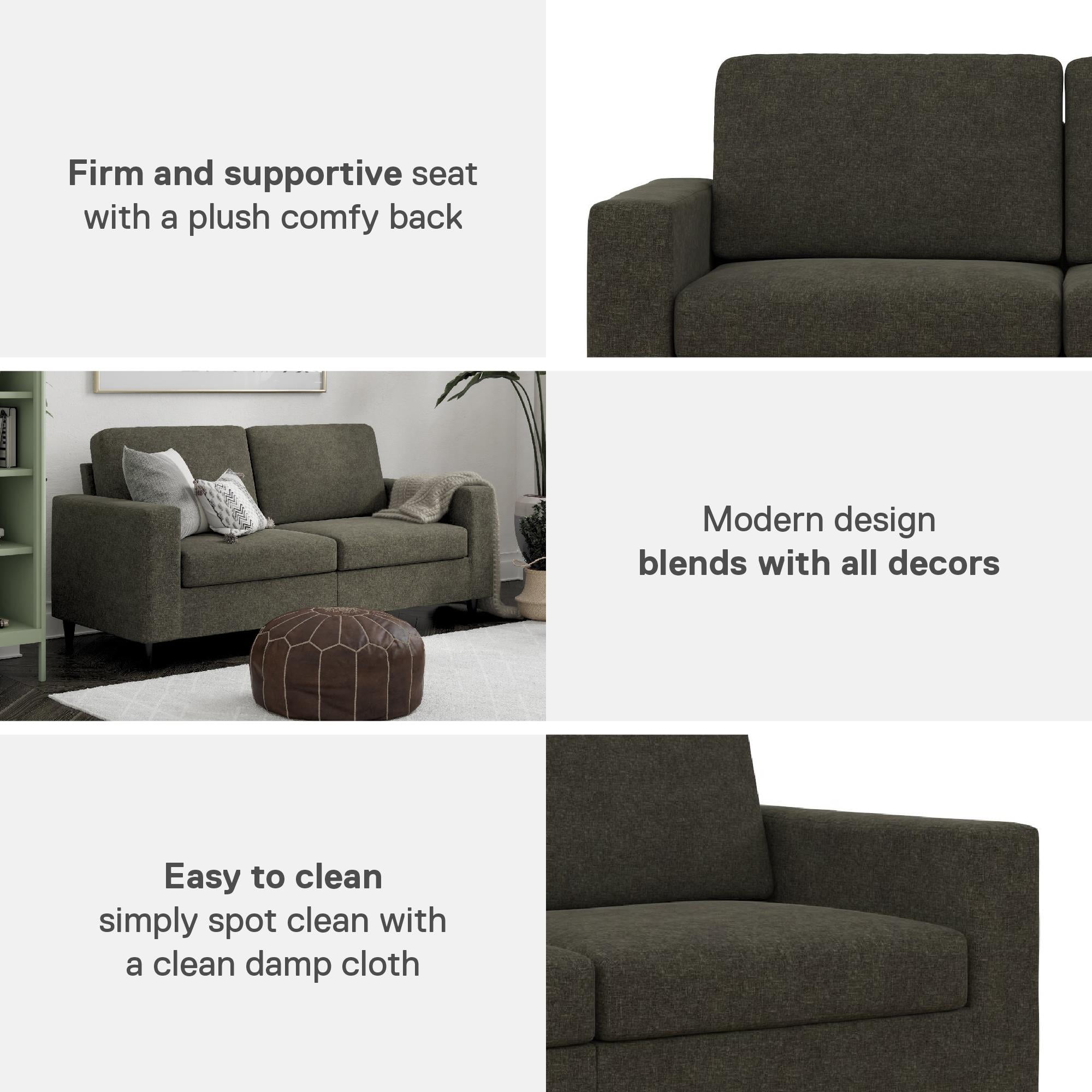 Contemporary with a touch of modern flair, the DHP Cooper Sofa is the three-seater sofa you need in your life. Why? This stylish couch is designed with a beautiful and soft upholstery, and features pocket coil seats to help provide optimal comfort for those movie nights or mid-afternoon naps. What’s more, the Cooper is built with a sturdy wood frame that sits on solid rubber wood legs with a black finish to ensure it will stay in your home for years to come. Do you enjoy hosting and need even more seating areas? All you have to do is pair with the matching DHP Cooper Loveseat which provides two more comfortable seats for your friends and family to spend the evening catching up. With a variety of color and material options, this DHP Cooper 3 Seater Sofa is the perfect piece of furniture to complete your living room decor. What are you waiting for?
