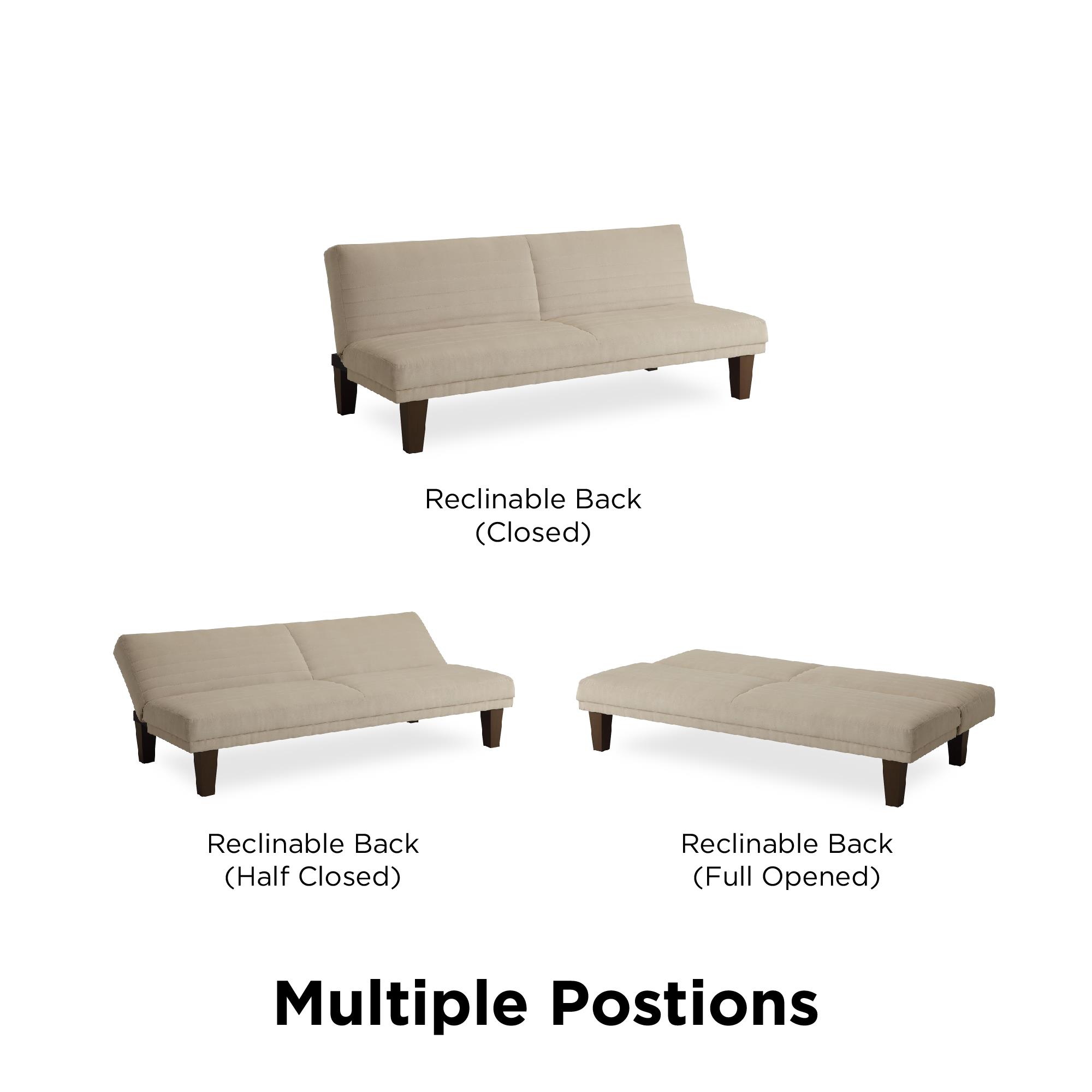 Looking for casual up-to-date style that’s totally within reach? Let us introduce you to the DHP Dillan Futon. Use this piece to create the ideal office seating area for visitors or use it to entertain family and friends at home. Whatever the case, the Dillan will accentuate any living room, home office, or professional setting with its polished profile. Inspired by mid-century modern sensibilities, the futon conveys a laid back aesthetic with stylish horizontal stitching and tapered legs. Upholstered in easy care microfiber, its soft-to-the-touch feel will induce a feeling of comfort. Made with a sturdy wood frame, its workmanship will leave a lasting impression. Even better, the Dillan is a multi-tasker. With a multi-position backrest, it easily converts from sitting to sleeping or lounging postures making it the ideal sleeper bed for that guest you weren’t expecting. Perfect for small space living, it’s available in multiple colors to fit your decor.