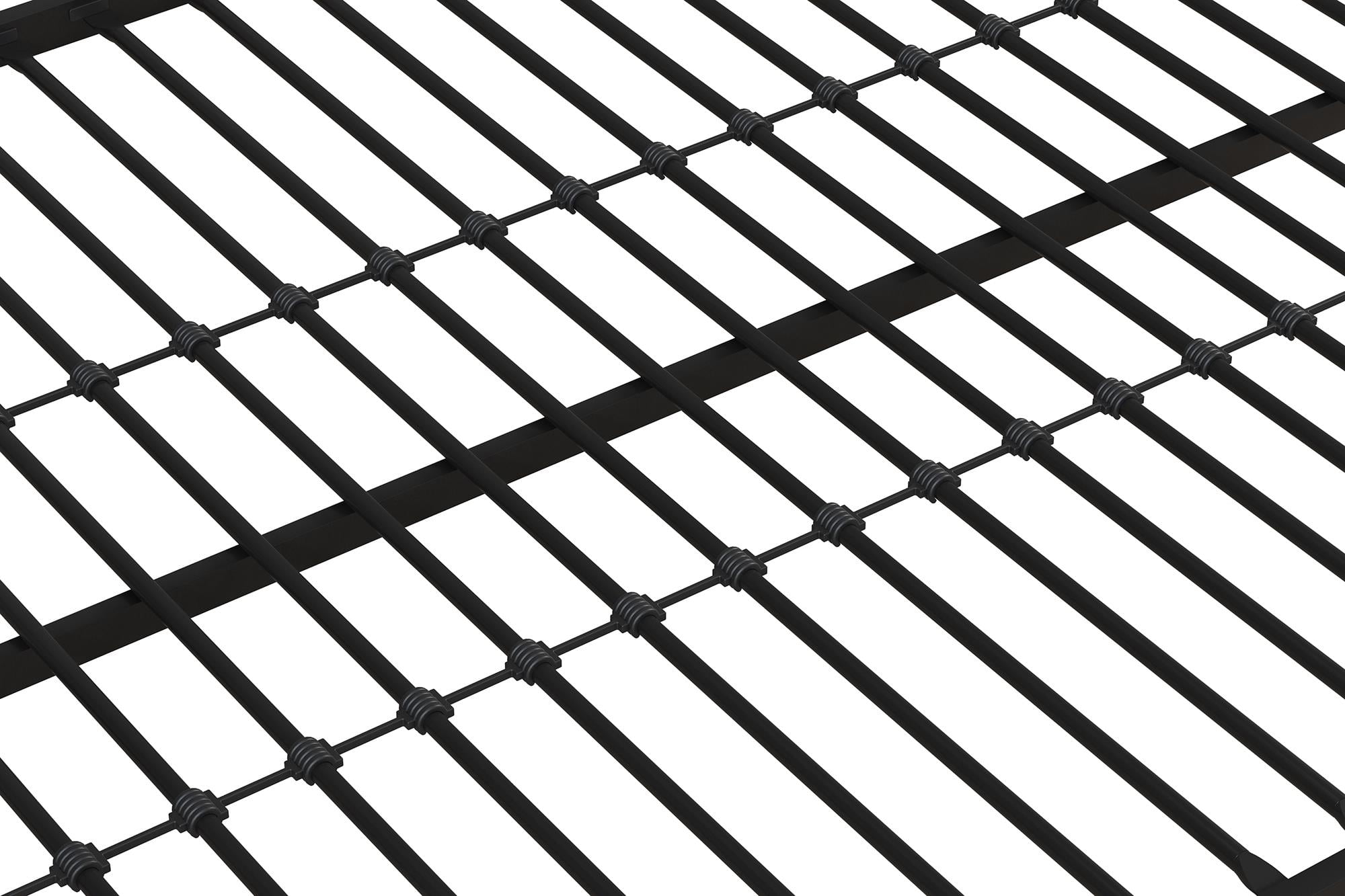 This popping twin over full bunk bed gives any teen or child extra space saving square footage in shared bedroom areas. Sleepover approved, stylish smooth curved lines offer a forever modern appeal for both boys and girls Its durable steel metal frame construction includes sturdy secured metal slats spaced 2.5″ apart for complete mattress support, full-length 13″ height safety rails on the top bunk, and 2 safe integrated ladders for easy up and down access from either side Never trip on misplaced sports equipment, games, or toys ever again thanks to the bed’s wide 11 inch underbed clearance that gives your kids bottom storage space while teaching the importance of organization Ships in one easy to handle box with everything included for worry-free assembly. Assembly video available. Contact customer support via email or live chat. Box spring not required. Kids must be aged 6+ for top bunk use and 3+ for bottom bunk use