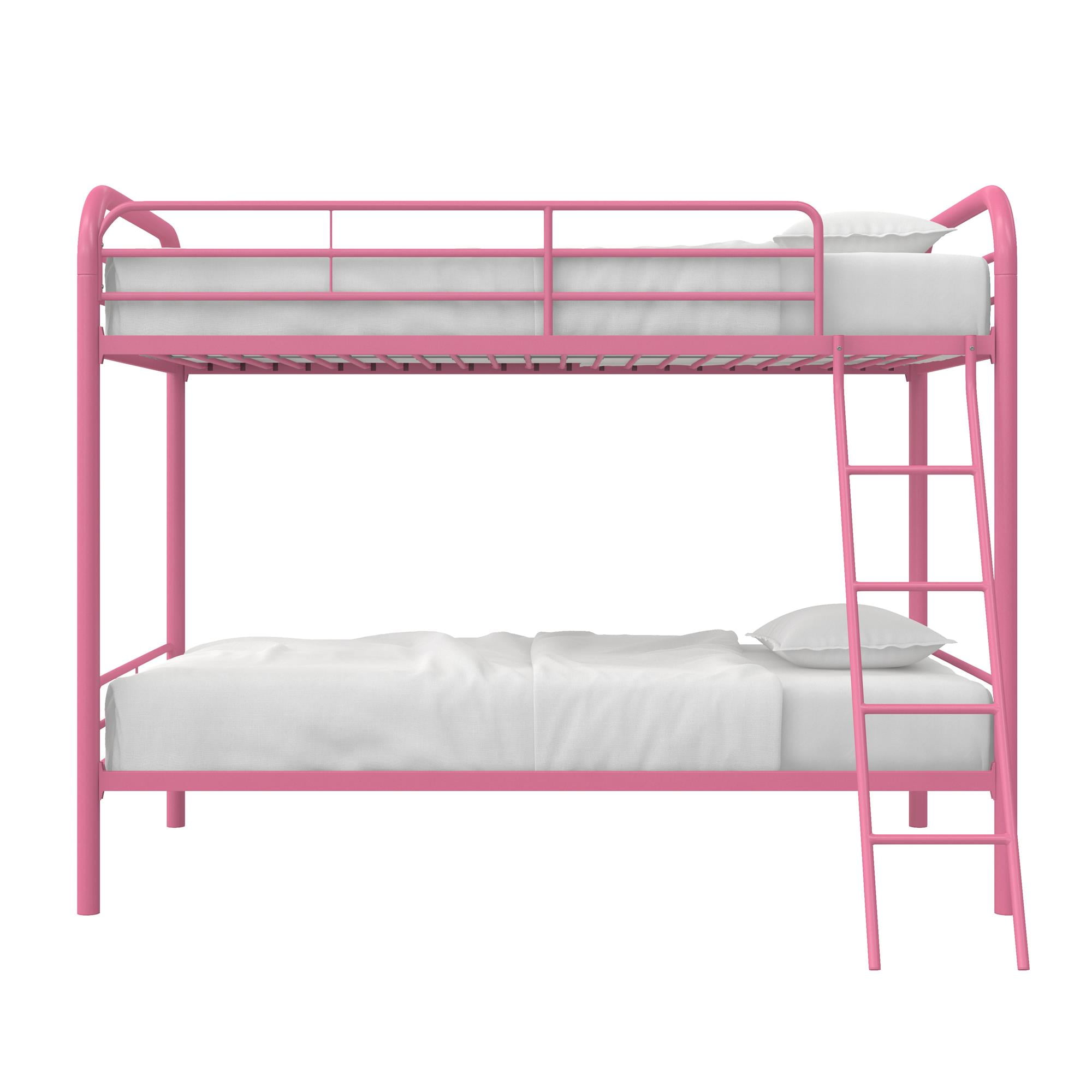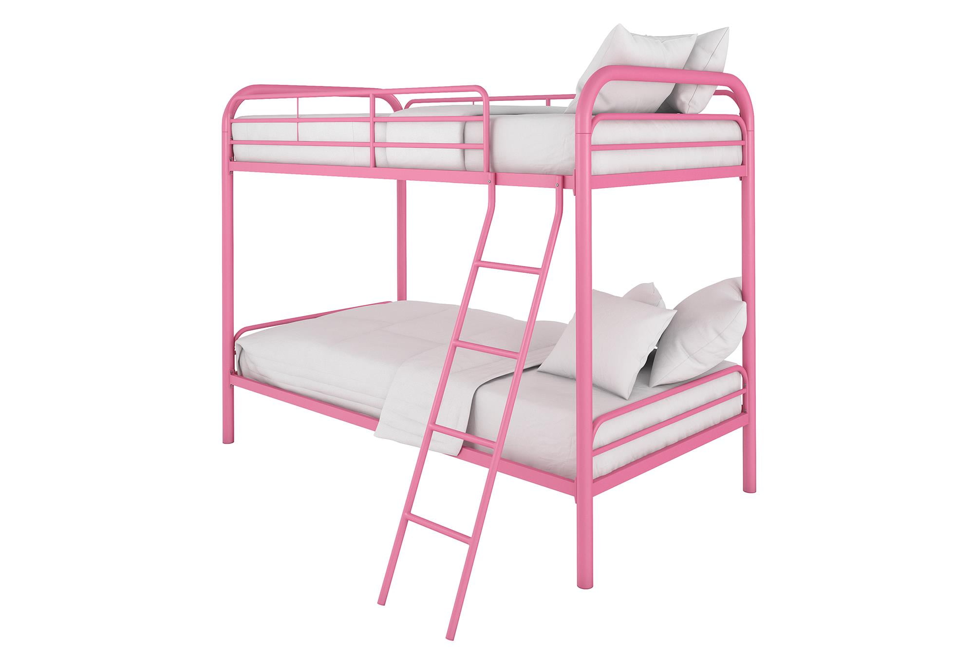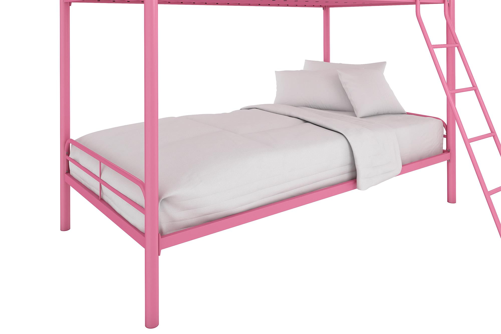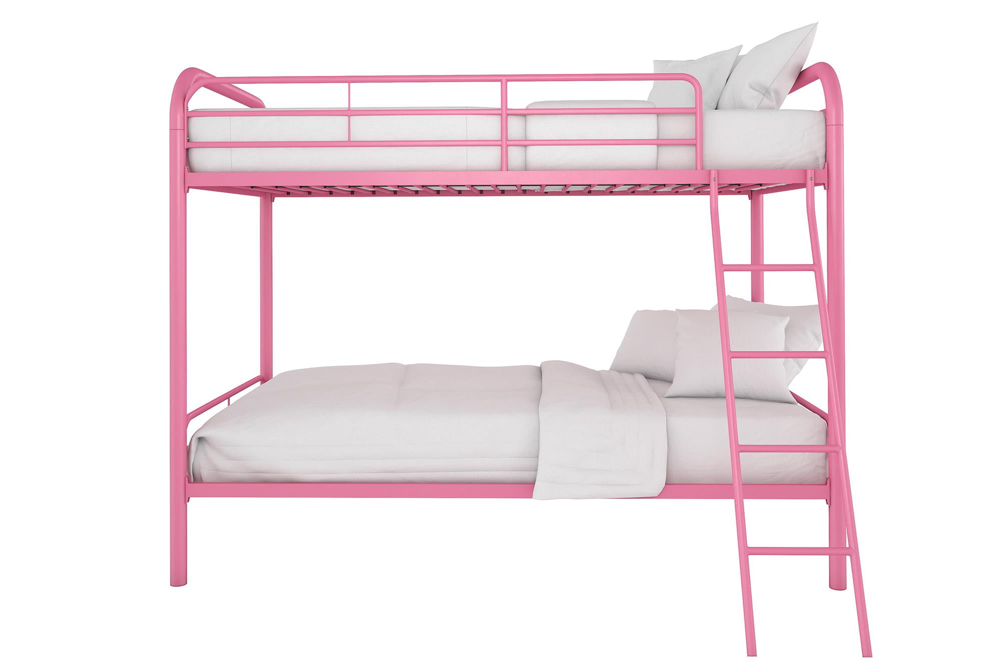 DHP Dusty Twin over Twin Metal Bunk Bed with Secured Ladder, Pink