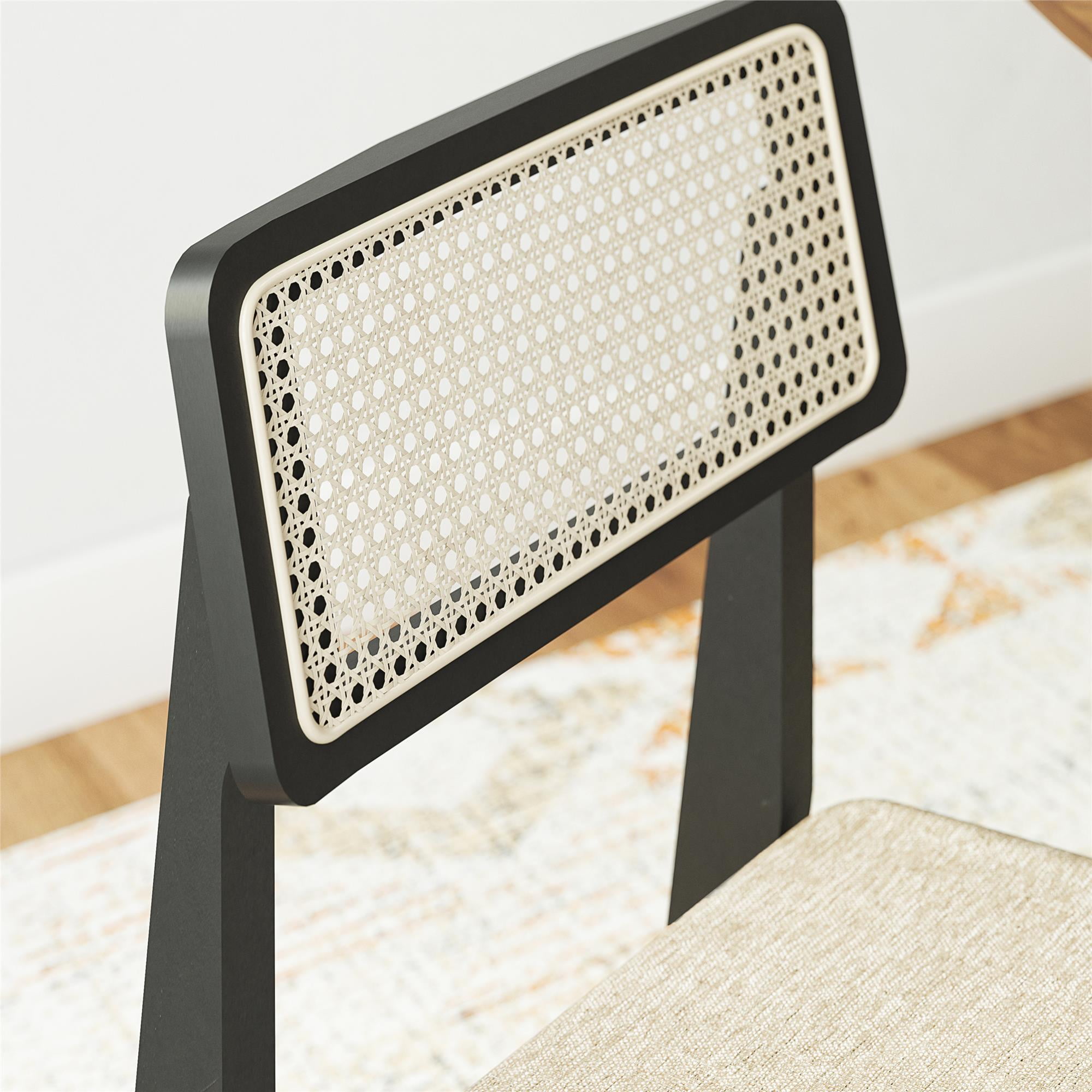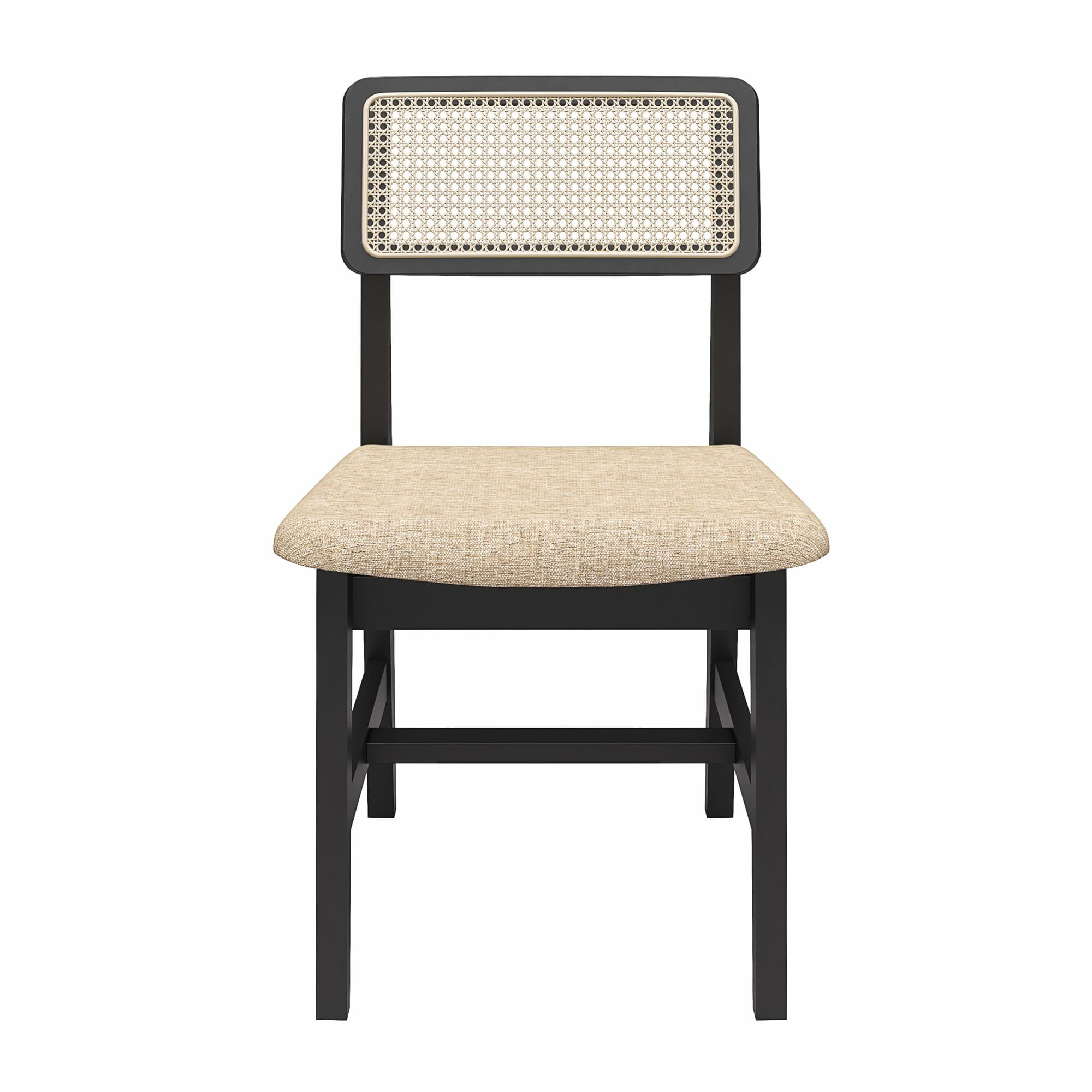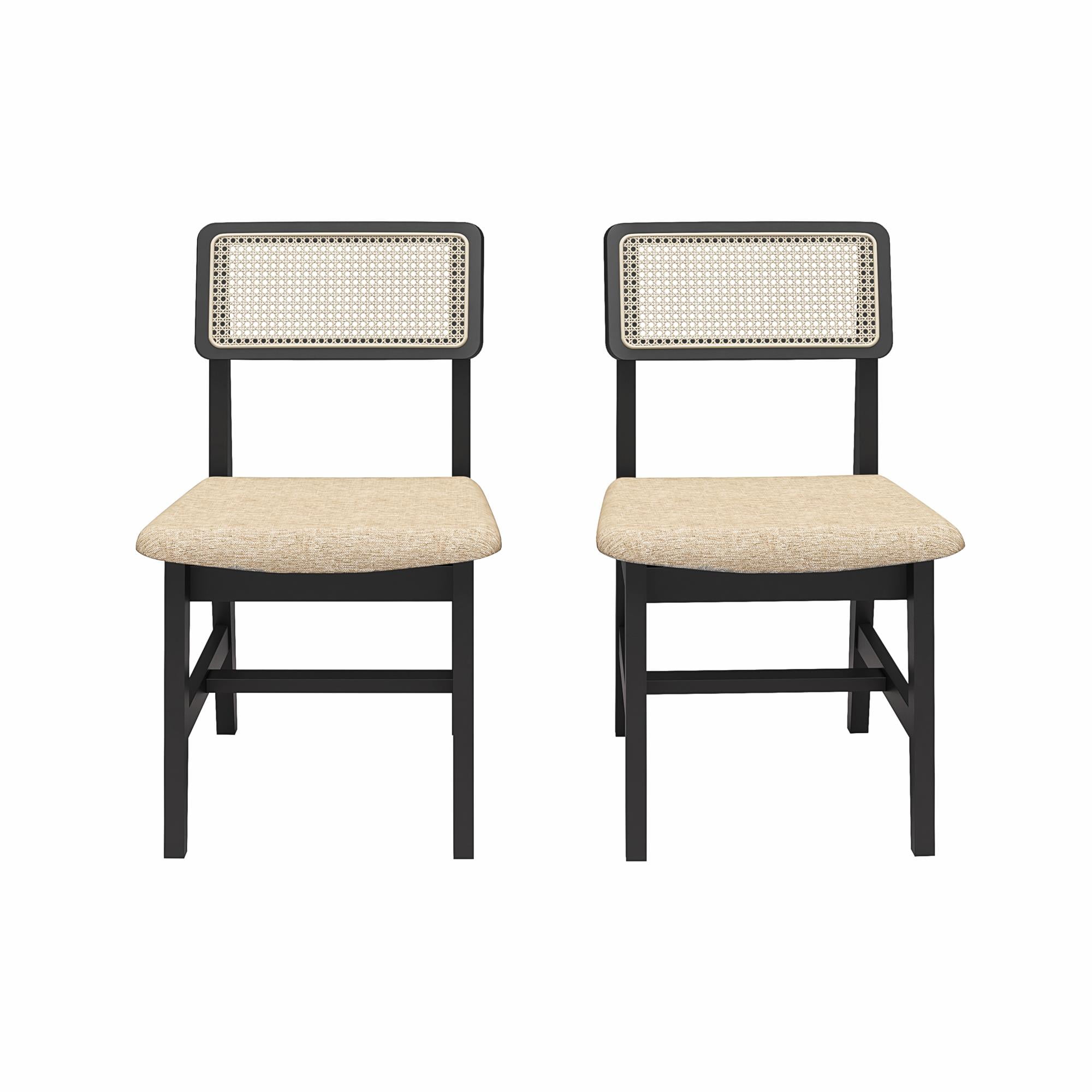 DHP Eleni Mid-Century Modern Cane Dining Chairs, Set of 2, Cream/Black