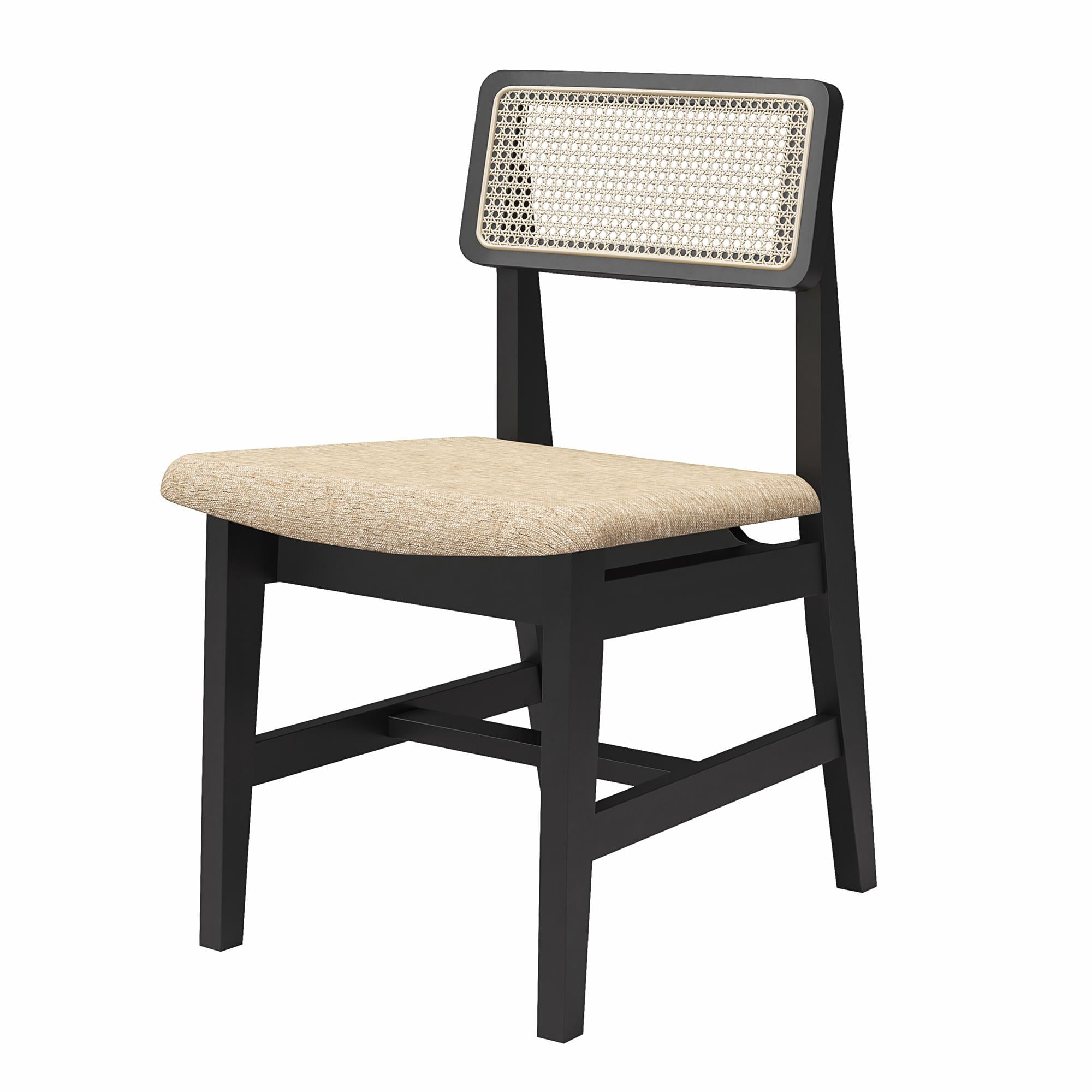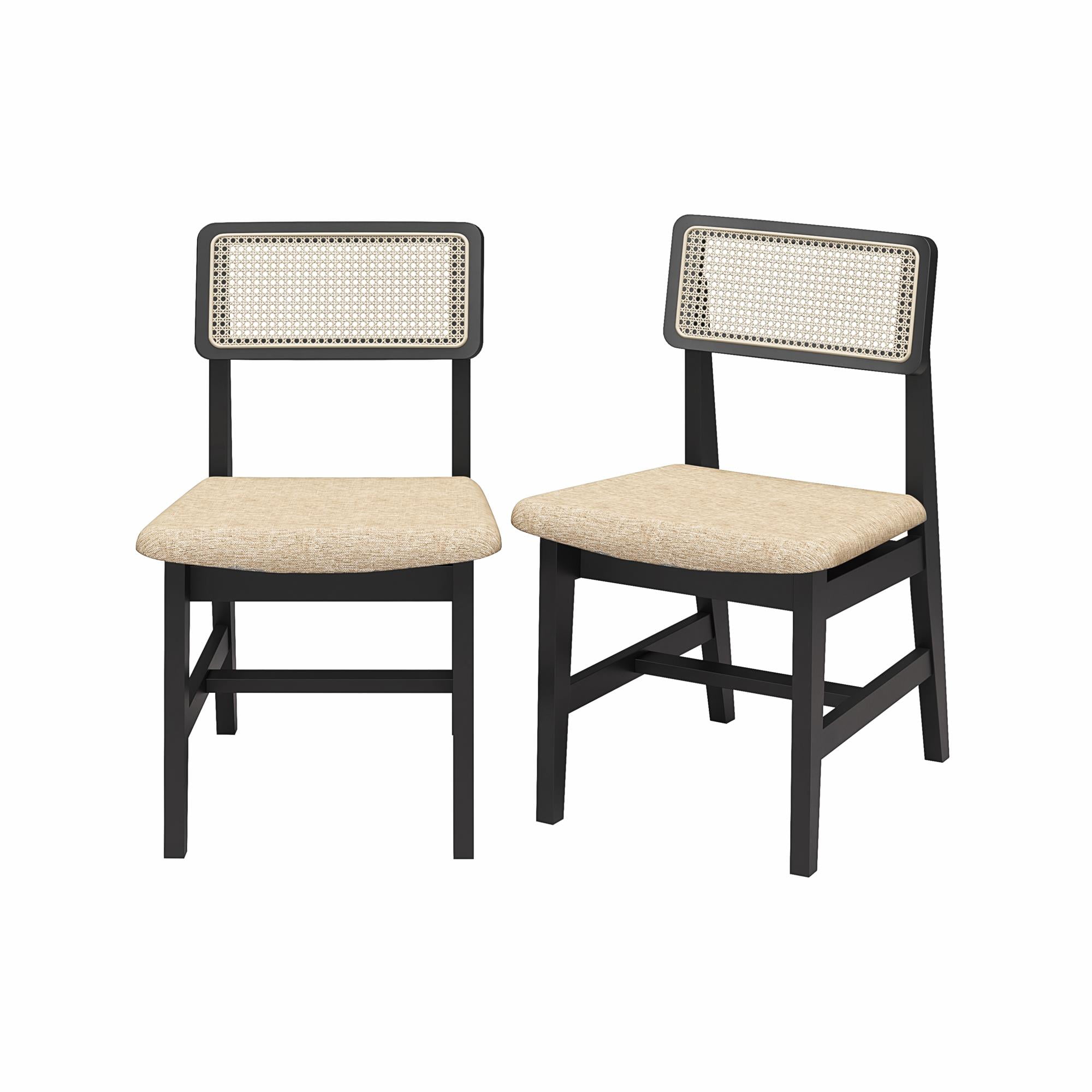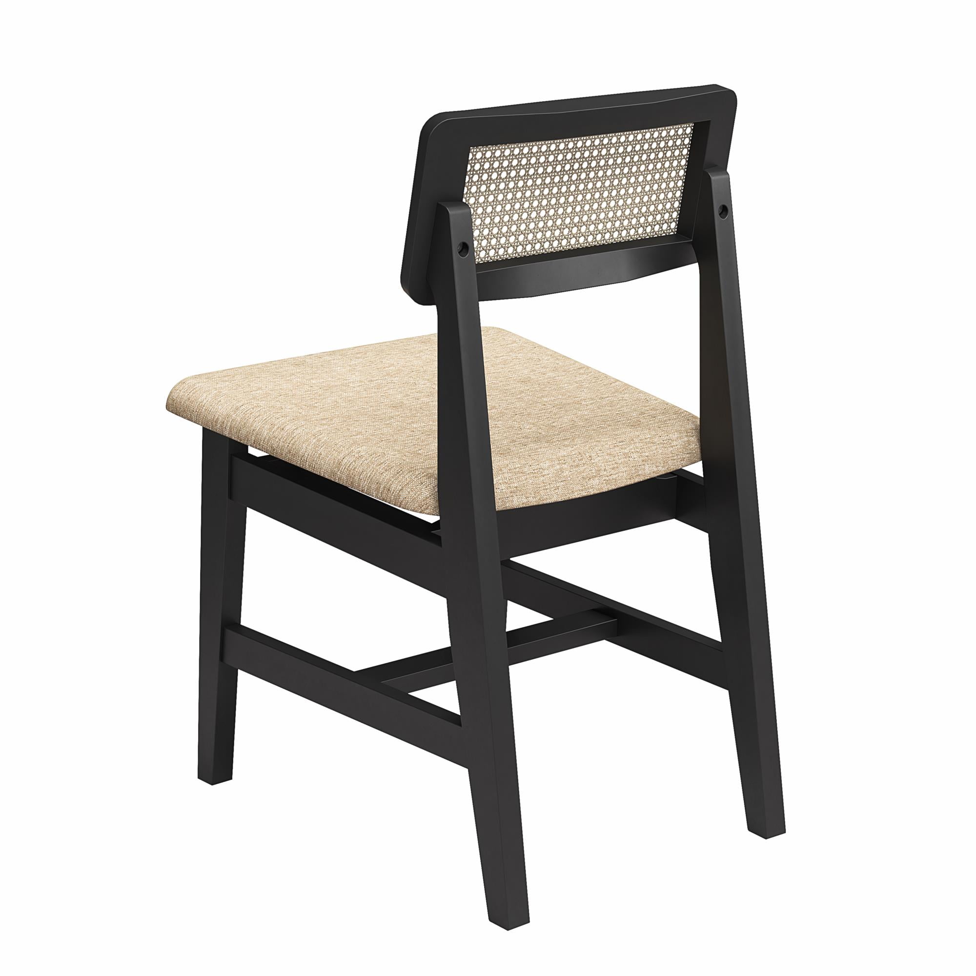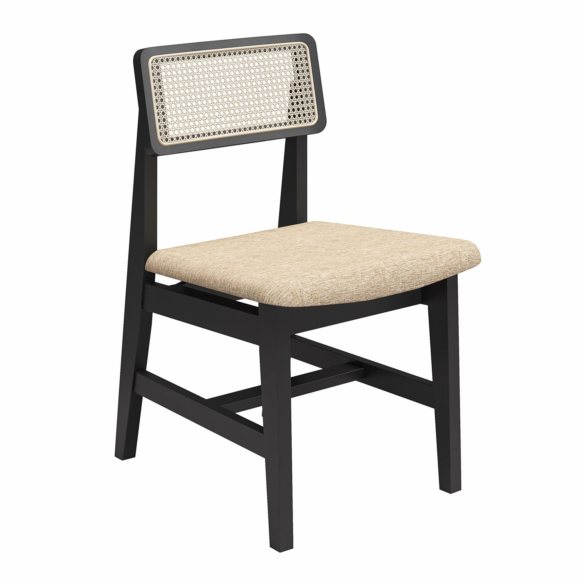DHP Eleni Mid-Century Modern Cane Dining Chairs, Set of 2, Cream/Black