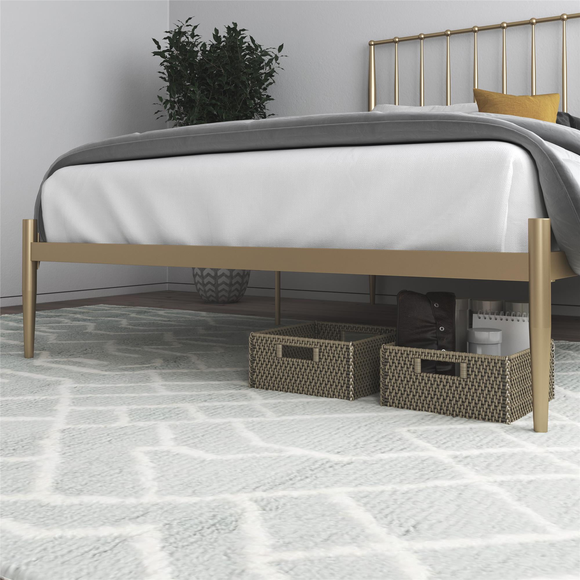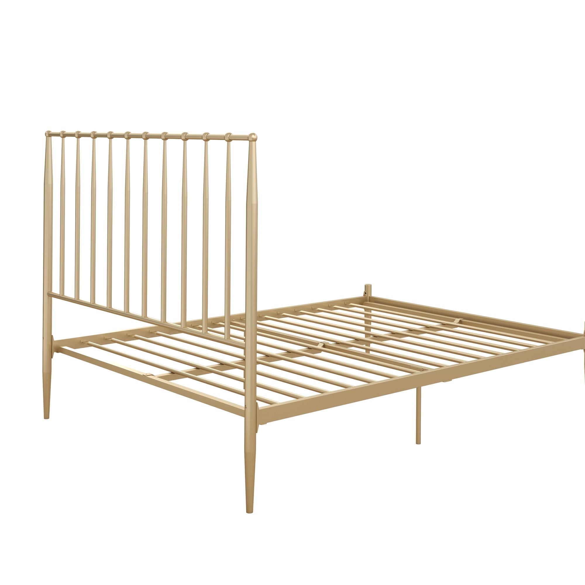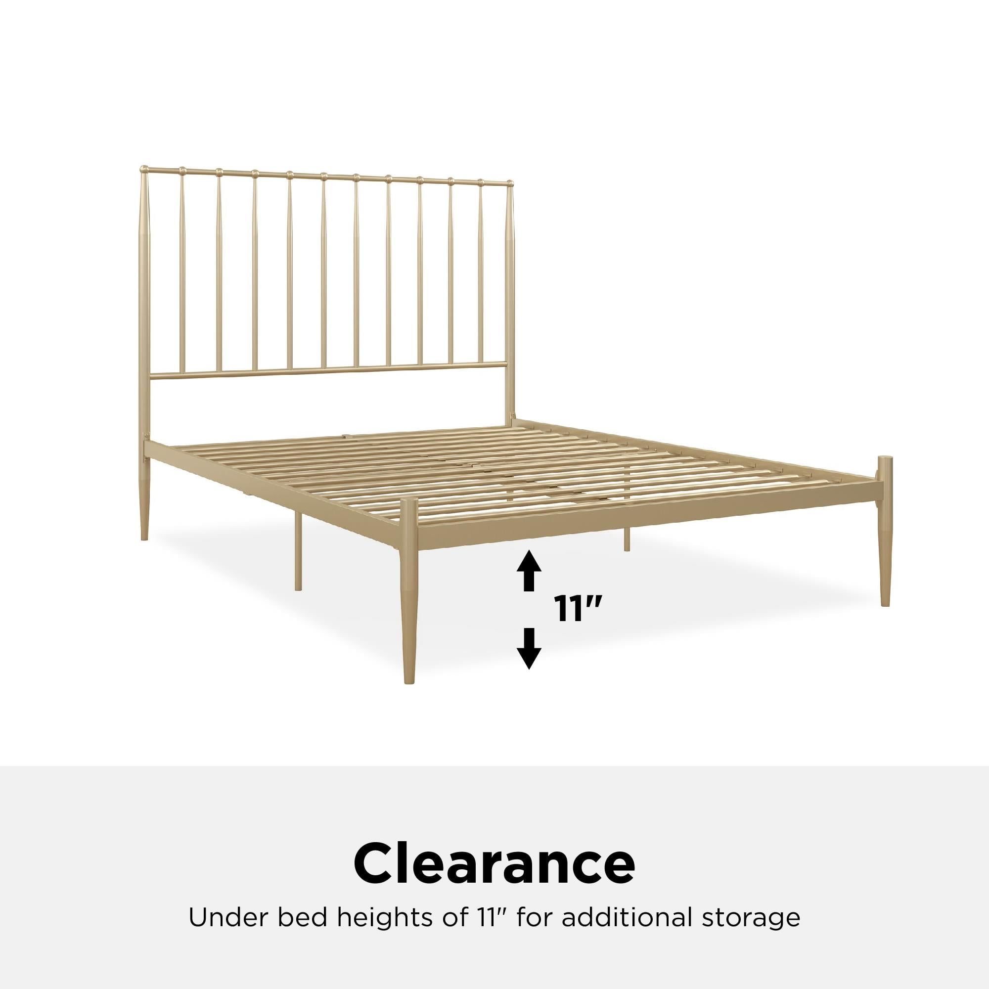 DHP Giulia Metal Platform Bed with Headboard and Underbed Storage Space, Queen, Gold