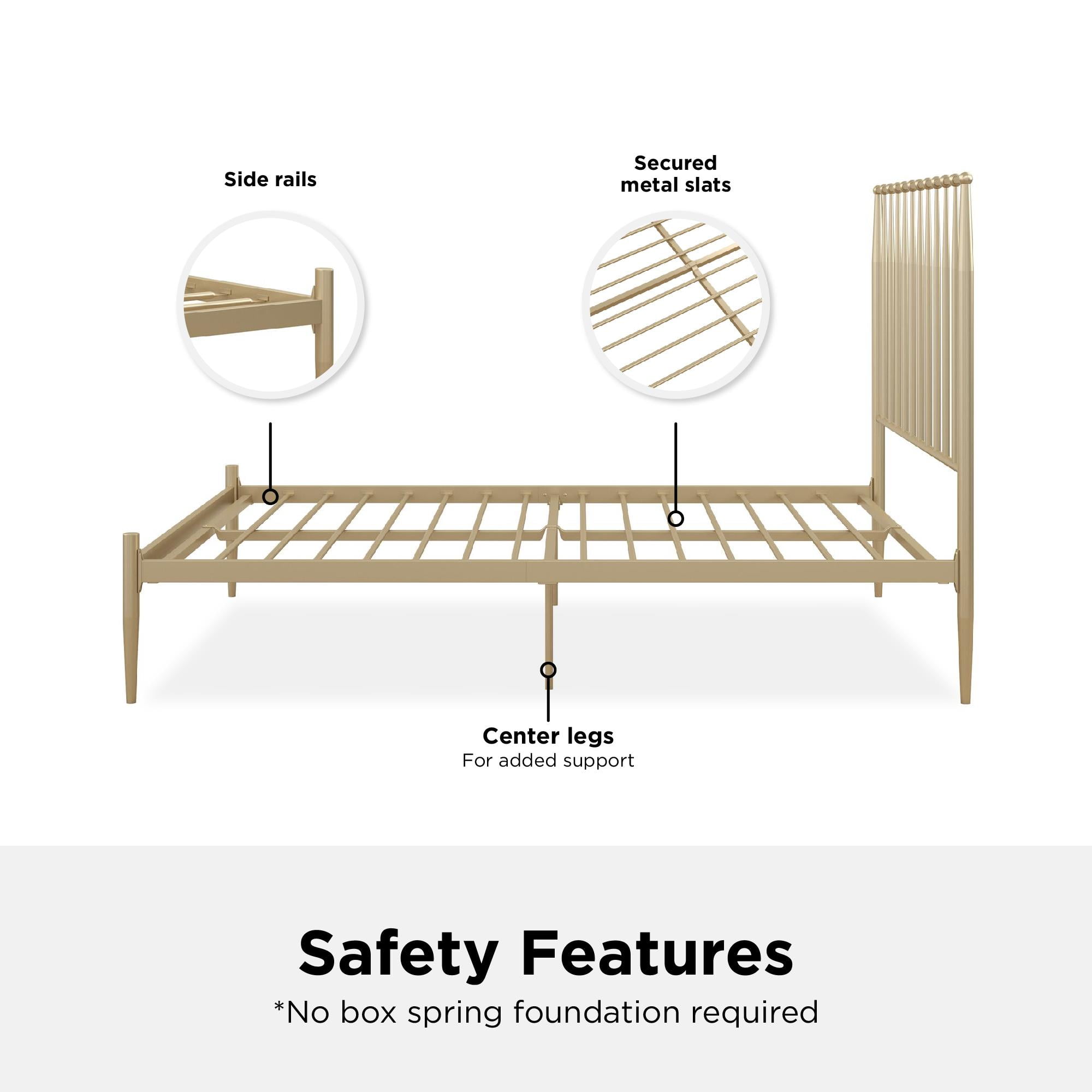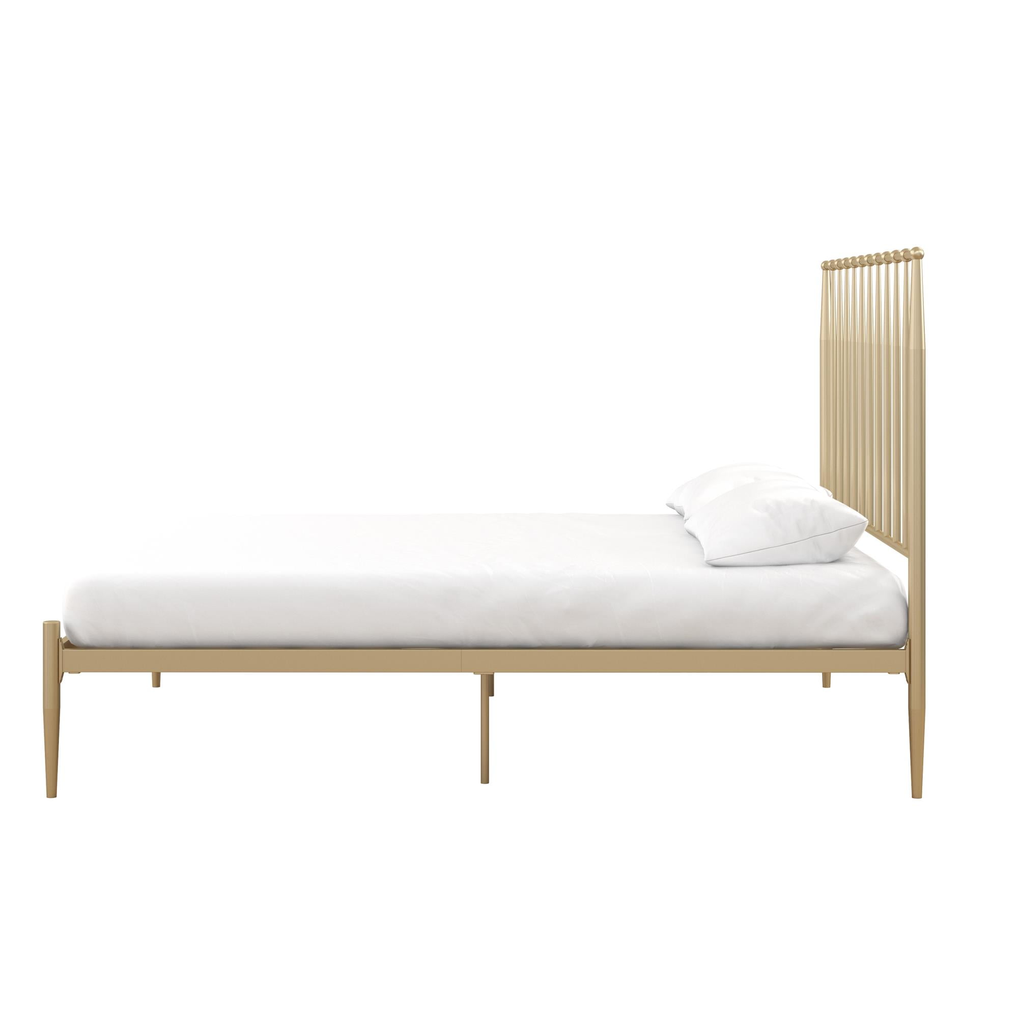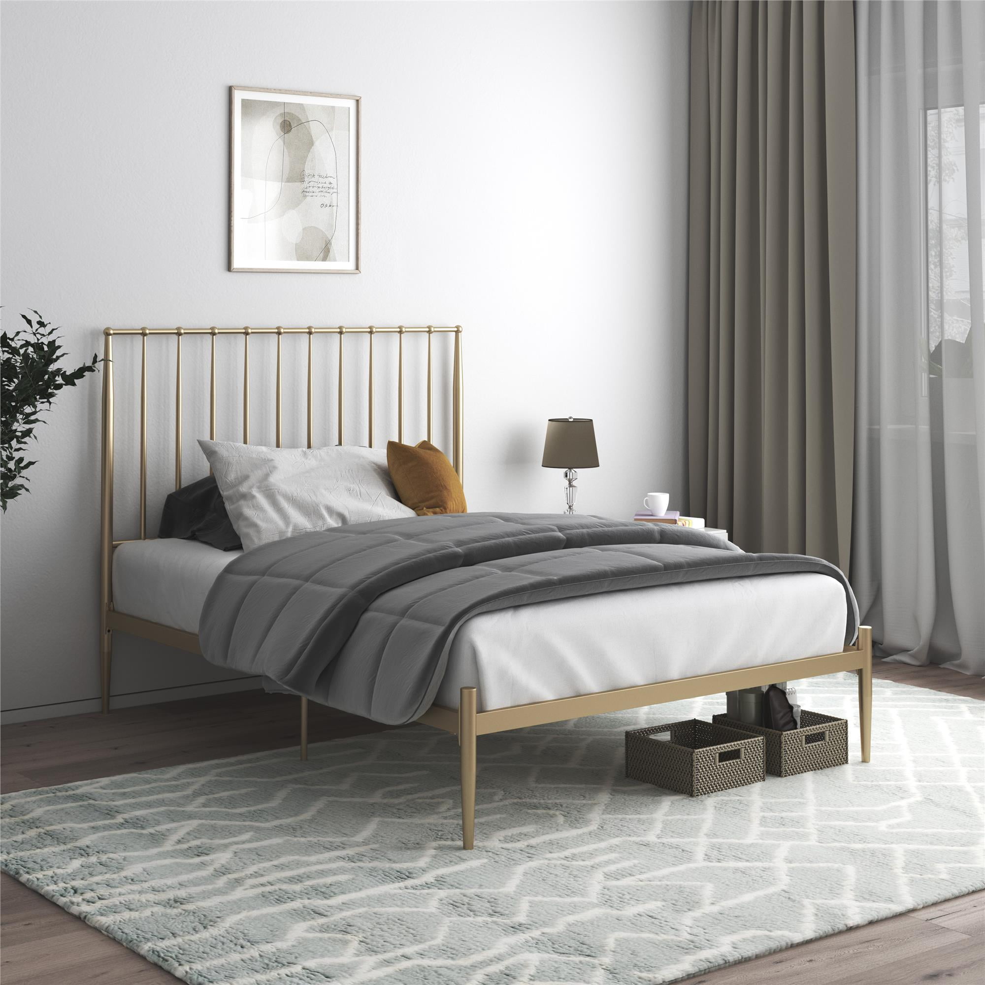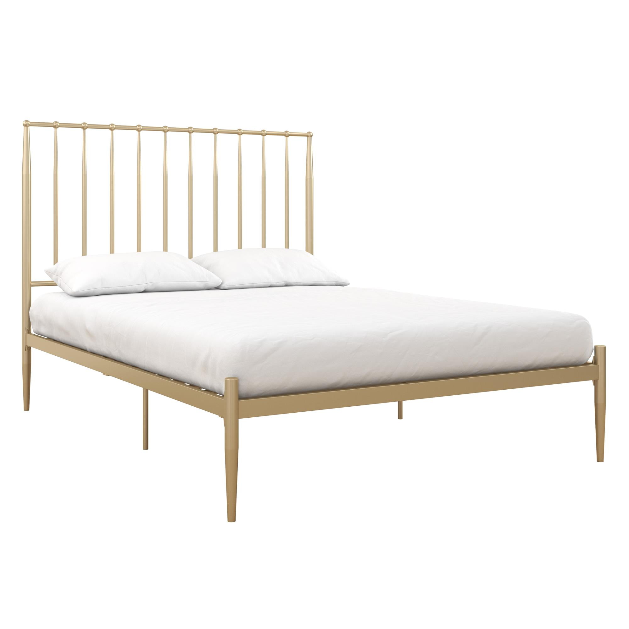 DHP Giulia Metal Platform Bed with Headboard and Underbed Storage Space, Queen, Gold