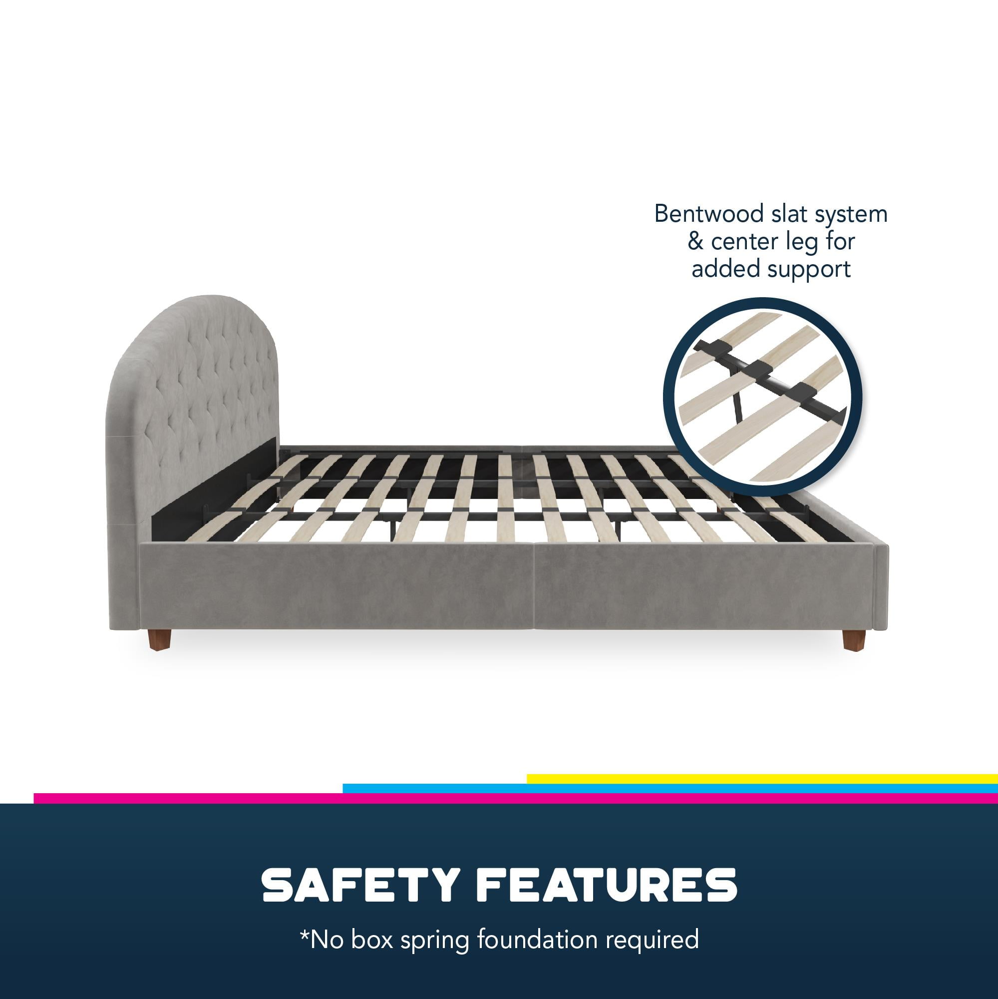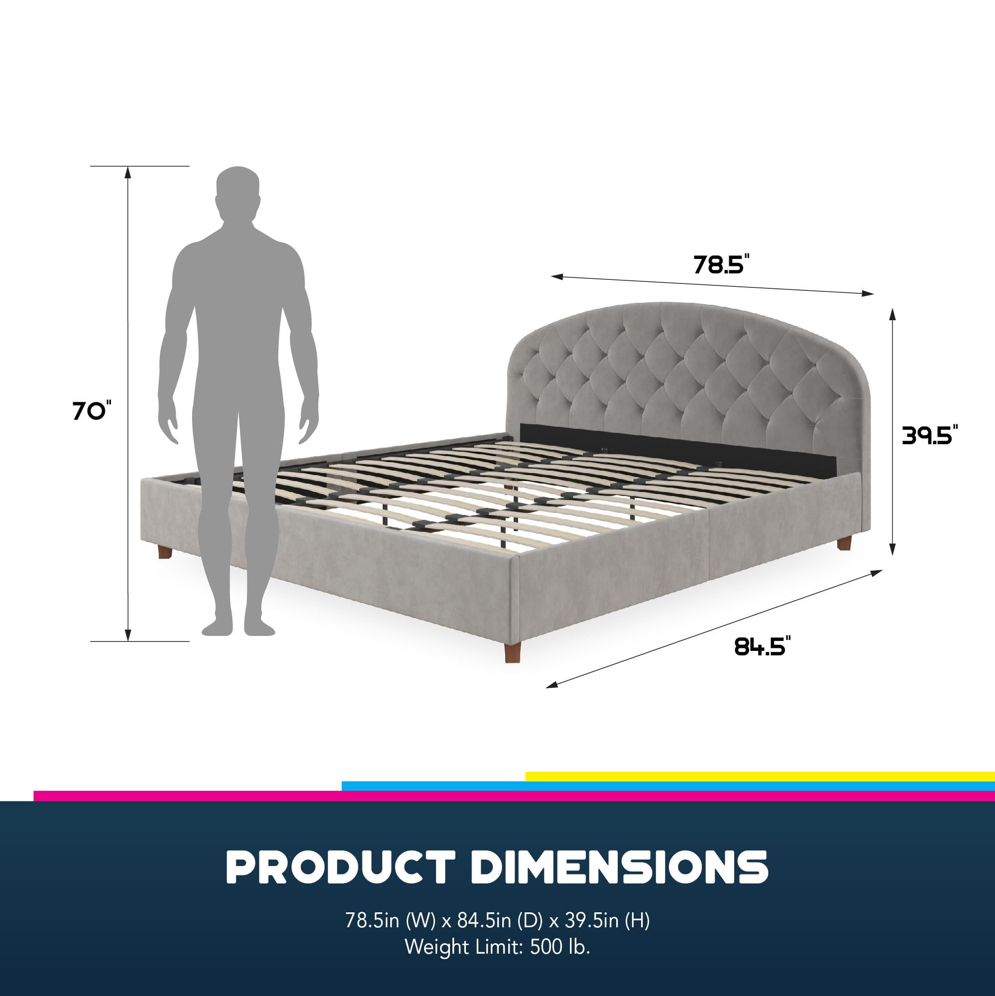 DHP Ilena Upholstered Bed, King Size Frame, Light Gray Velvet