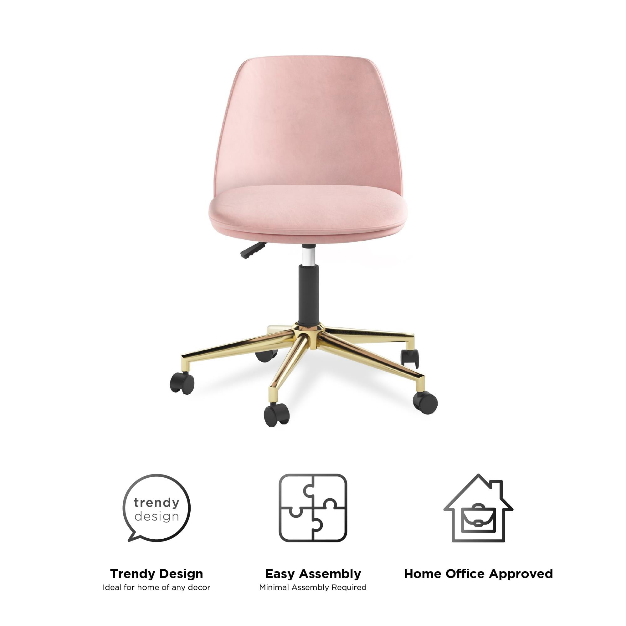 DHP Ivy Pillowtop Office Task Chair, Light Pink Velvet/Gold Base