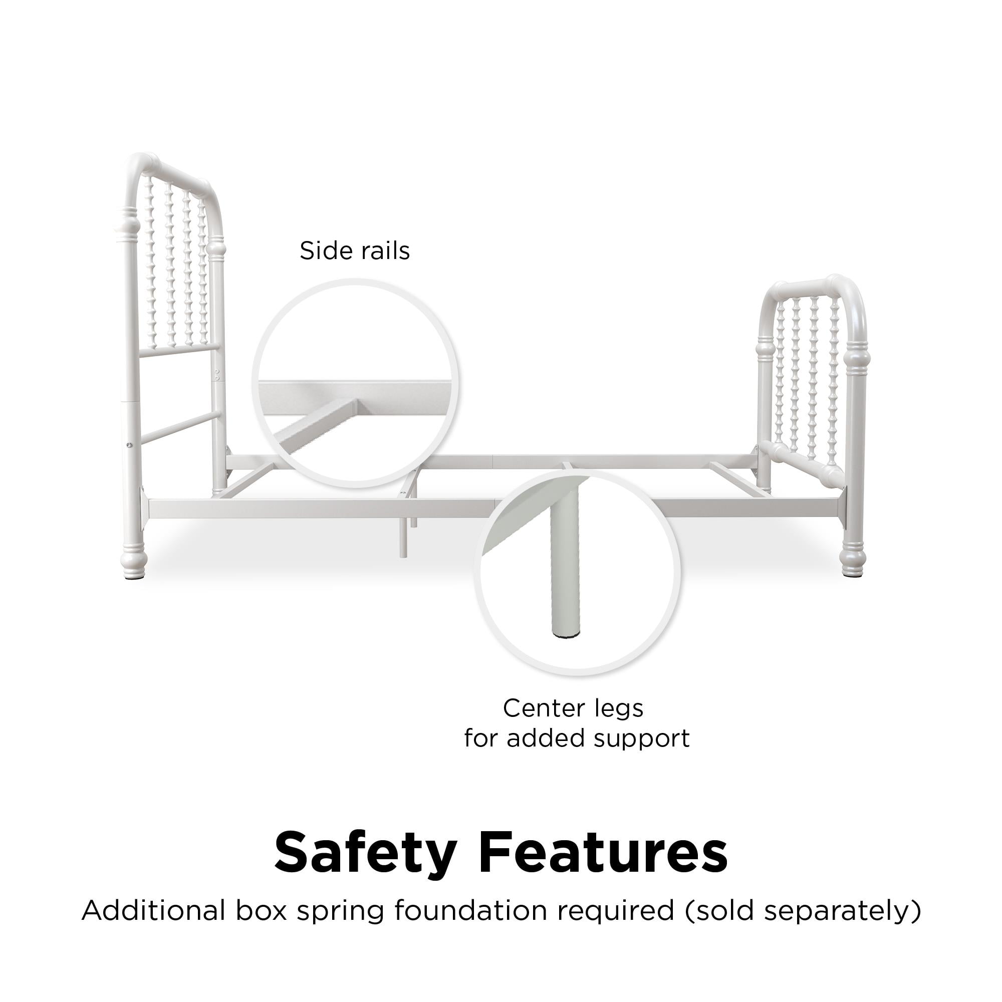Curved scroll work design Sturdy metal frame Accommodates one standard size twin mattress, sold separately Mattress foundation required