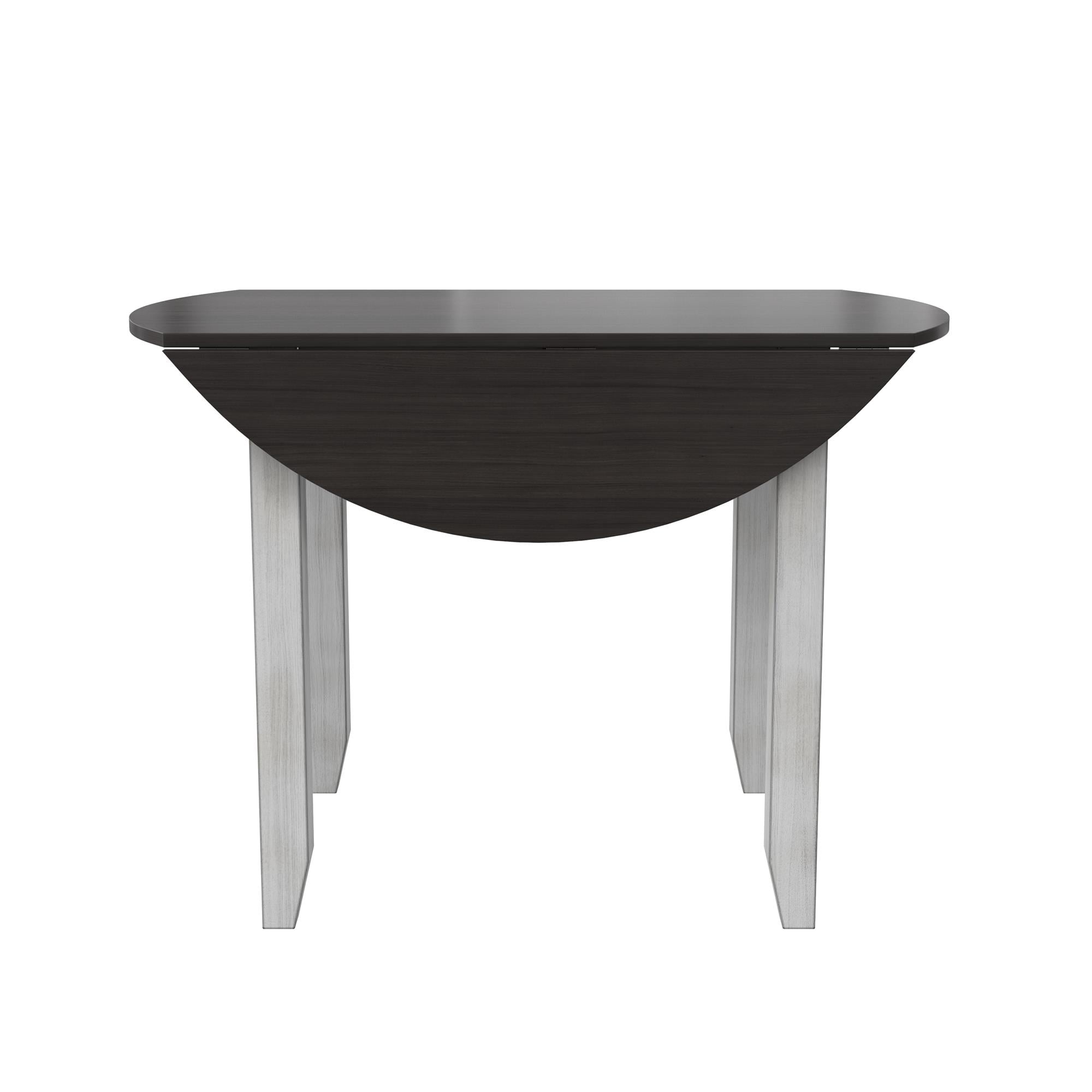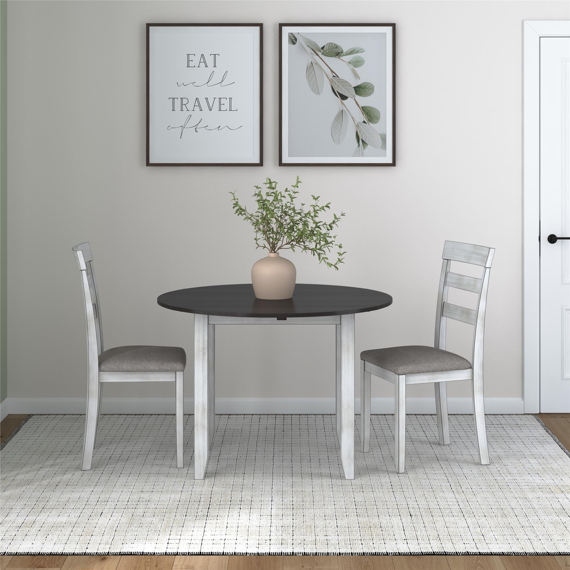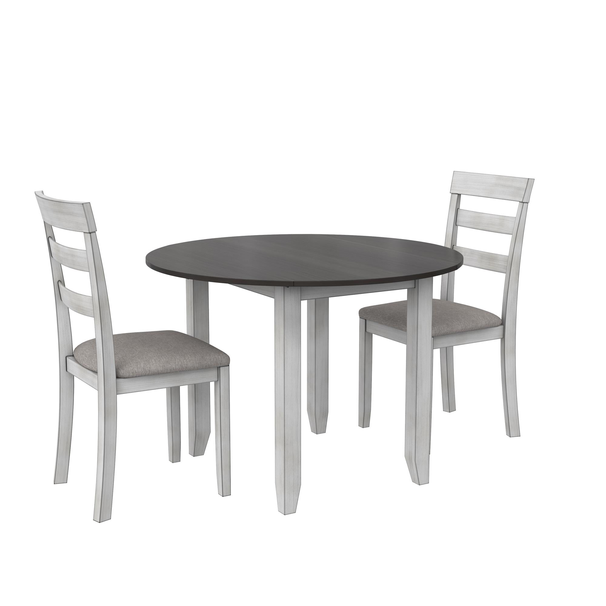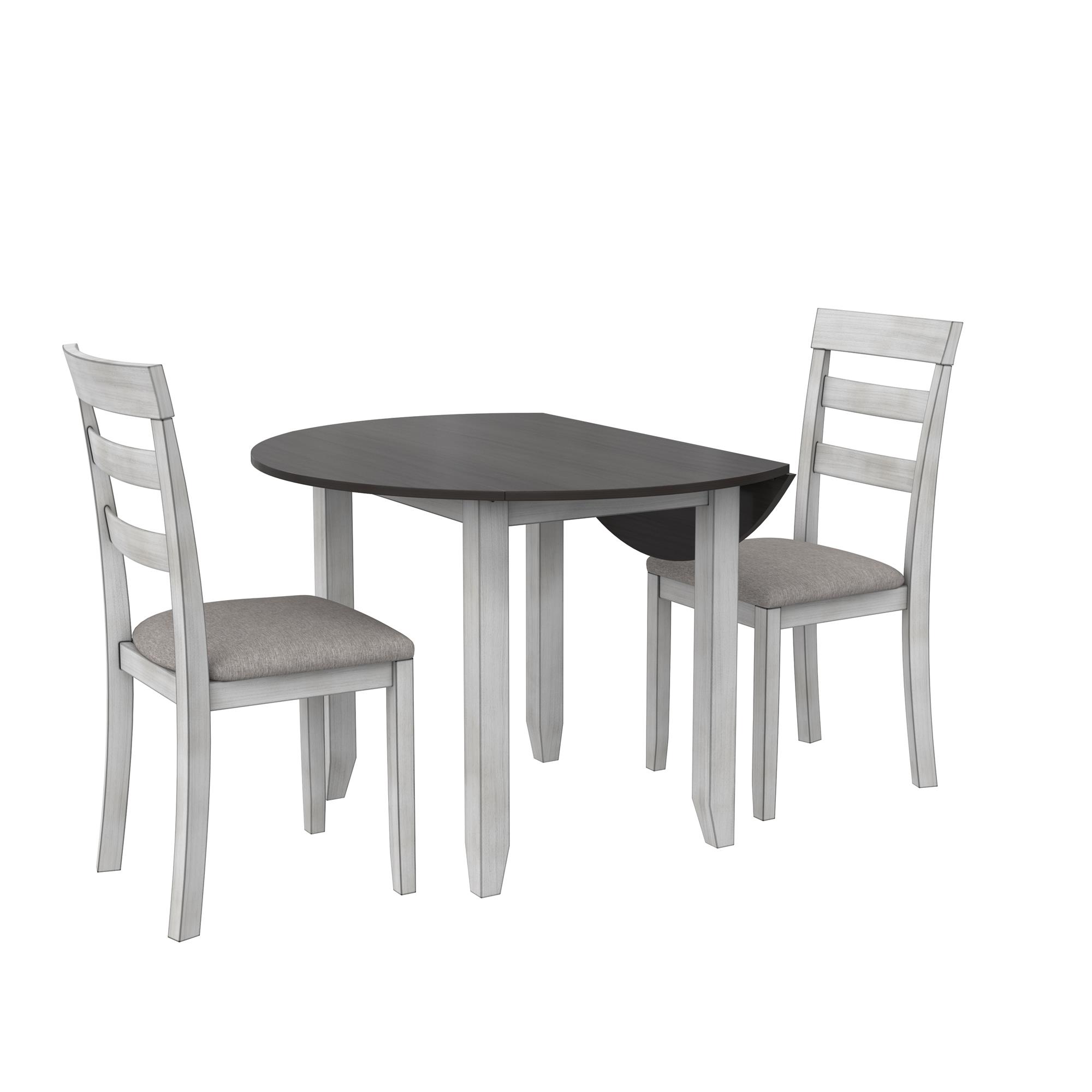 DHP Jersey 3-Piece Drop Leaf Wood Dining Set with Round Table and 2 Chairs, Brown/Oyster White Shell